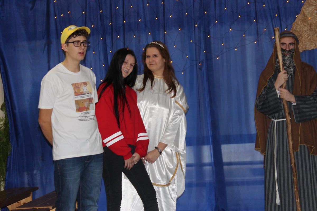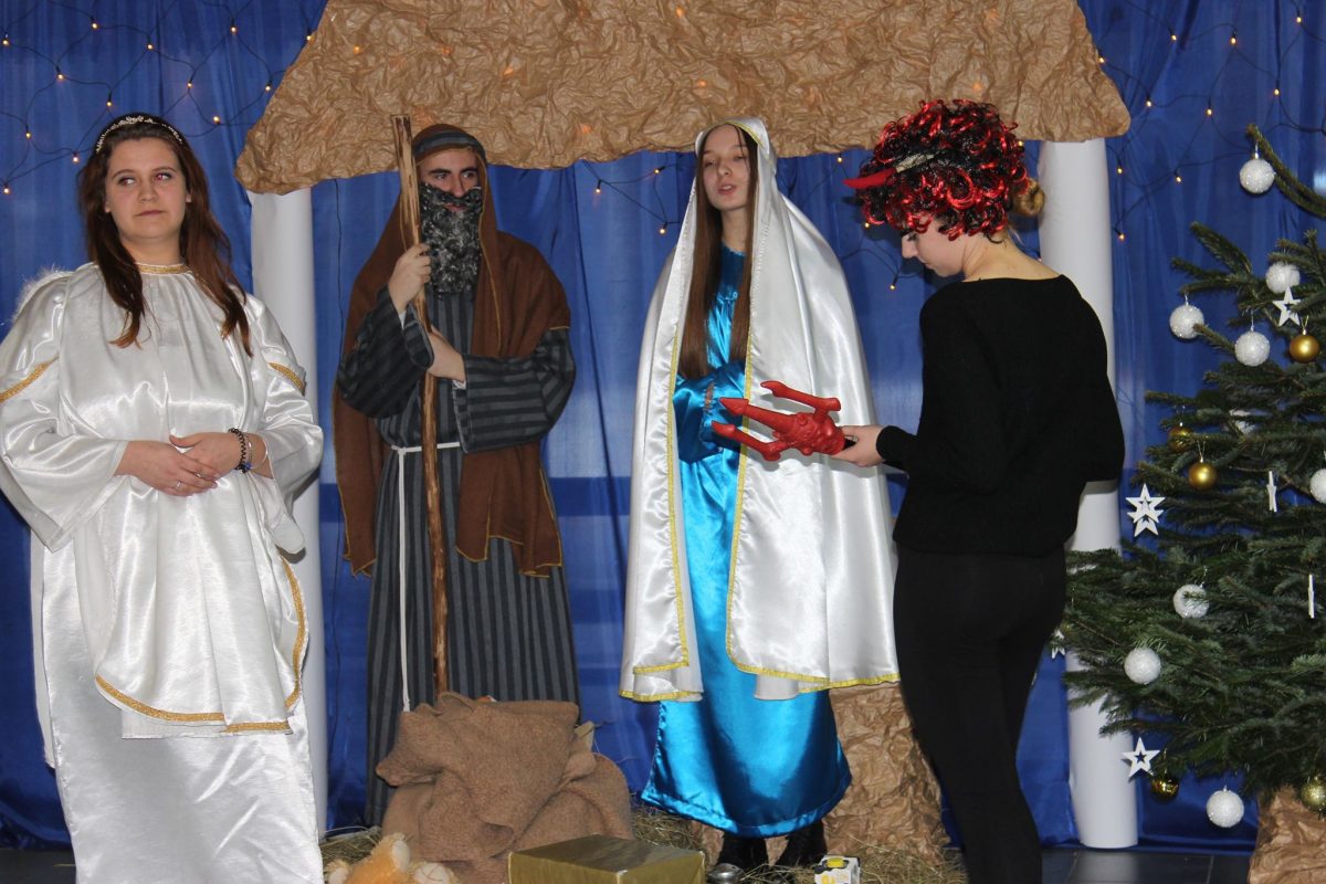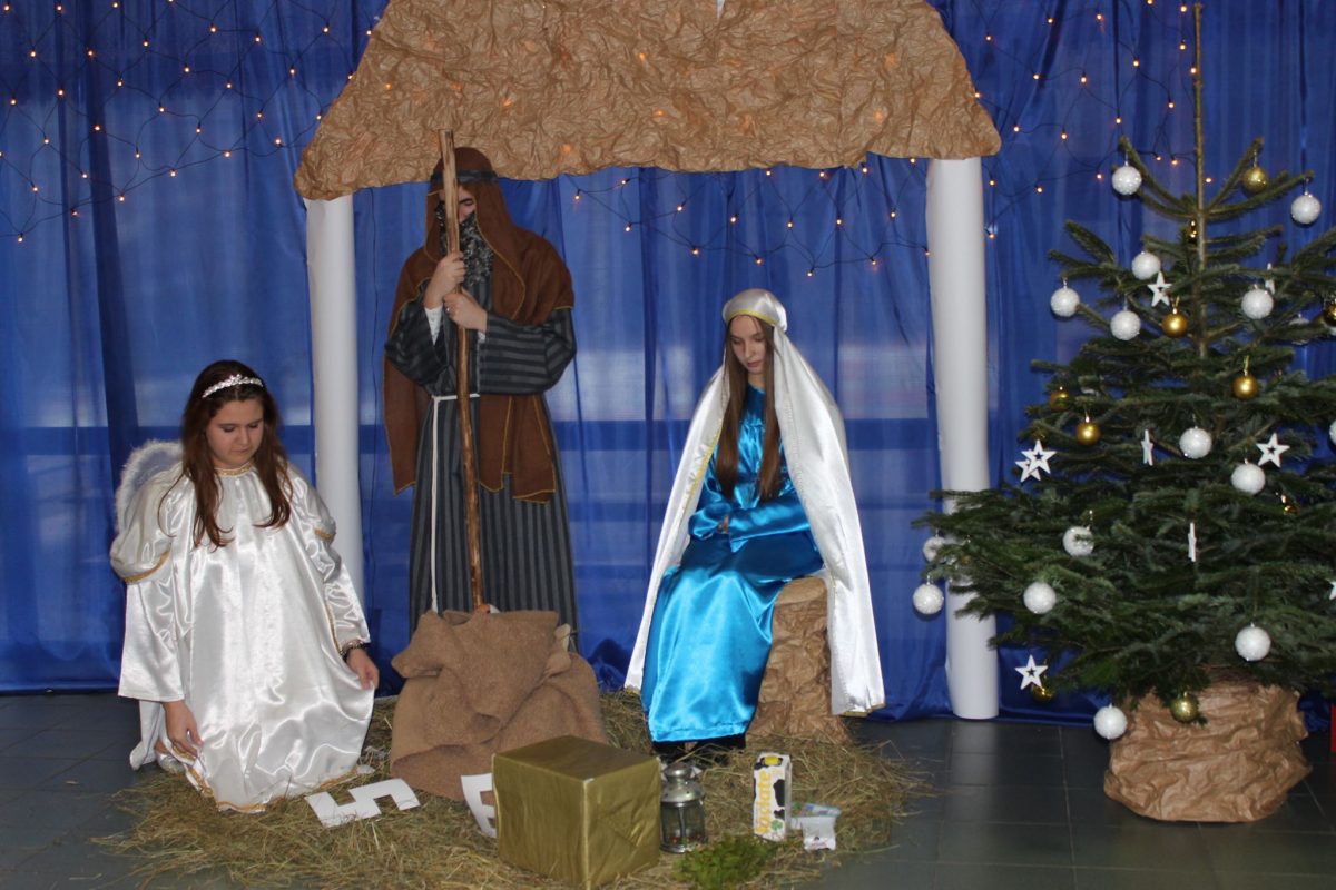 Zatem do szopki przybyli również uczniowie, babcia z wnuczkiem, a także rodzic i nauczyciel, aby powierzyć swoje problemy nowonarodzonemu Jezusowi. Po wspólnym kolędowaniu seniorzy mieli okazję połamać się opłatkiem oraz zjeść świąteczny posiłek. Wolontariusze starali się, aby ten czas upłynął w atmosferze miłości i wzajemnej życzliwości. Dzięki obecności zespołu muzycznego z Zespołu Szkół Ponadgimnazjalnych , który uświetnił ten wigilijny wieczór, kolędowaniu nie było końca.