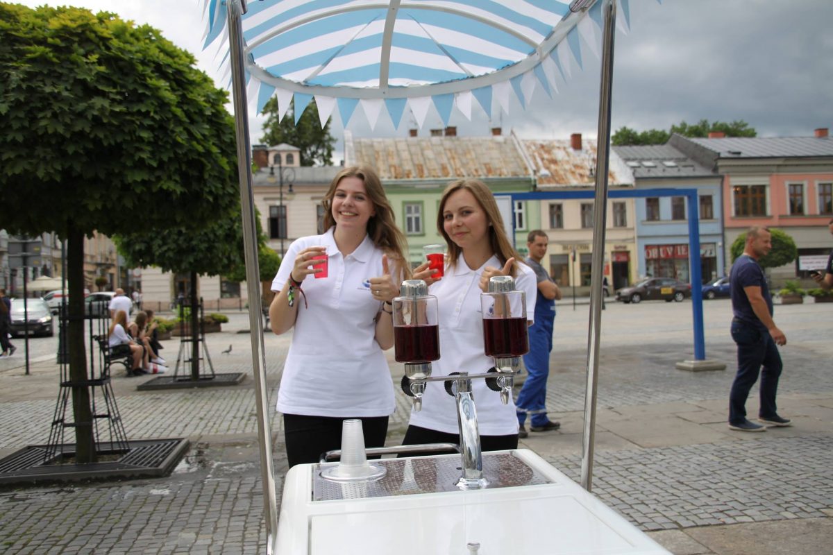 1.08.2017 r. Natalia i Patrycja częstowały wodą na ulicy Jagiellońskiej. „Jubileuszowy” kubek wody z sokiem malinowym wypił Pan Kazimierz ze Starego Sącza. Z tej okazji trafiły do niego także drobne upominki od Sądeckich Wodociągów.