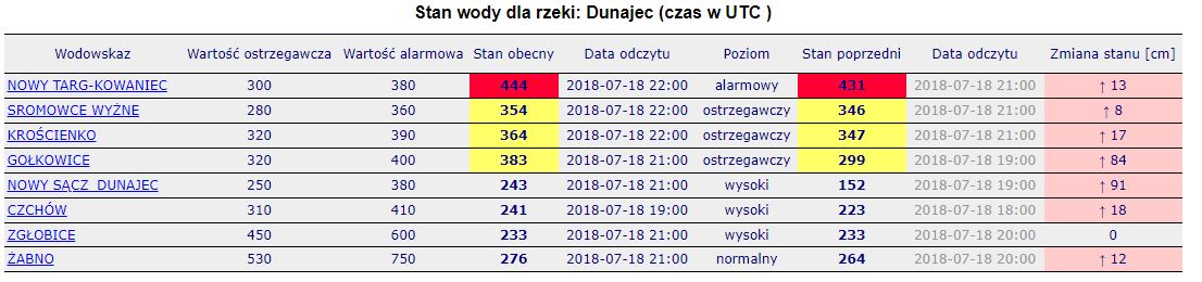Sytuacja jest coraz poważniejsza. W związku z sytuacja hydrologiczną Zespołu Zbiorników Wodnych Czorsztyn – Niedzica – Sromowice Wyżne, prognozą dalszych opadów i wezbraniach w zalewie Dunajca wprowadzono stan alarmowy i ogłoszono akcję ,,Żywioł”.