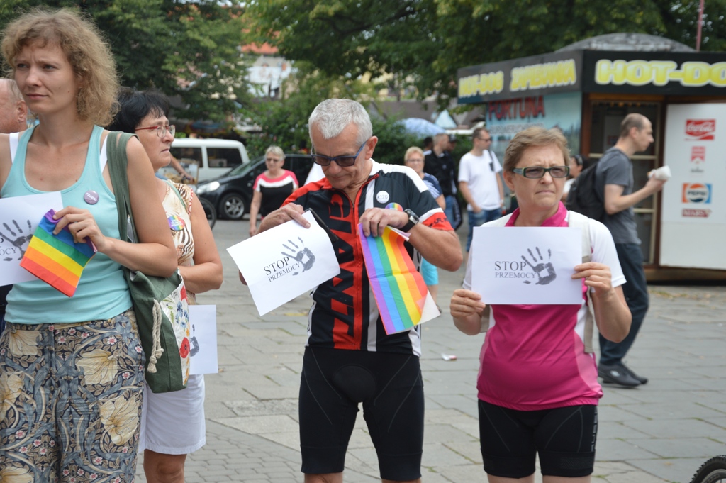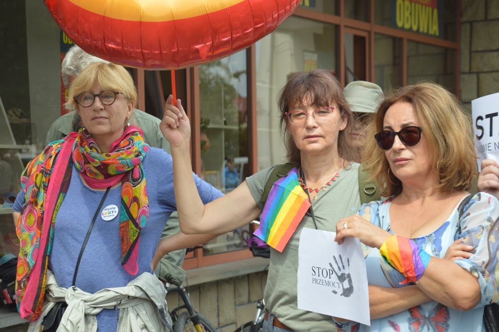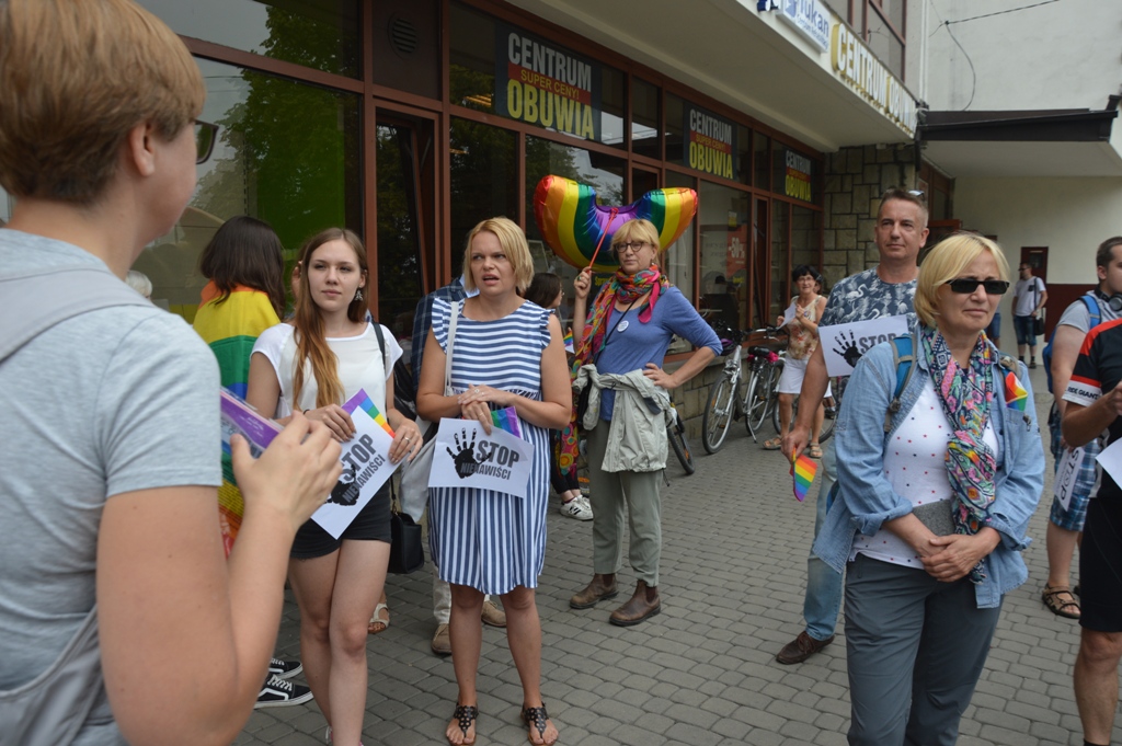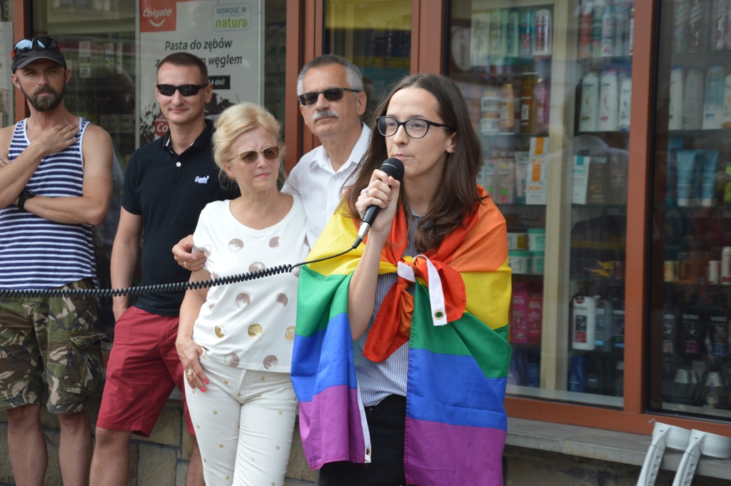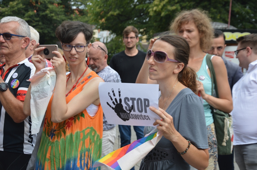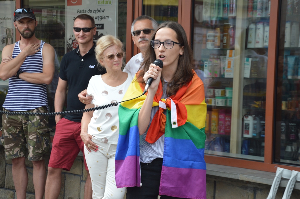 –Dzisiaj wszyscy jesteśmy gejami i lesbijkami -mówiła jedna z przemawiających kobiet. Inna dodała – Jeśli wierzycie, że Bóg stworzył człowieka, to każdego, LGBT też. Nie po to żeby go wykluczać i stosować wobec niego przemoc– mówiła.