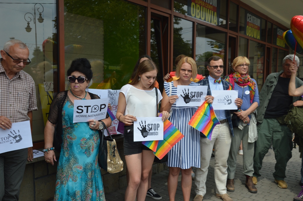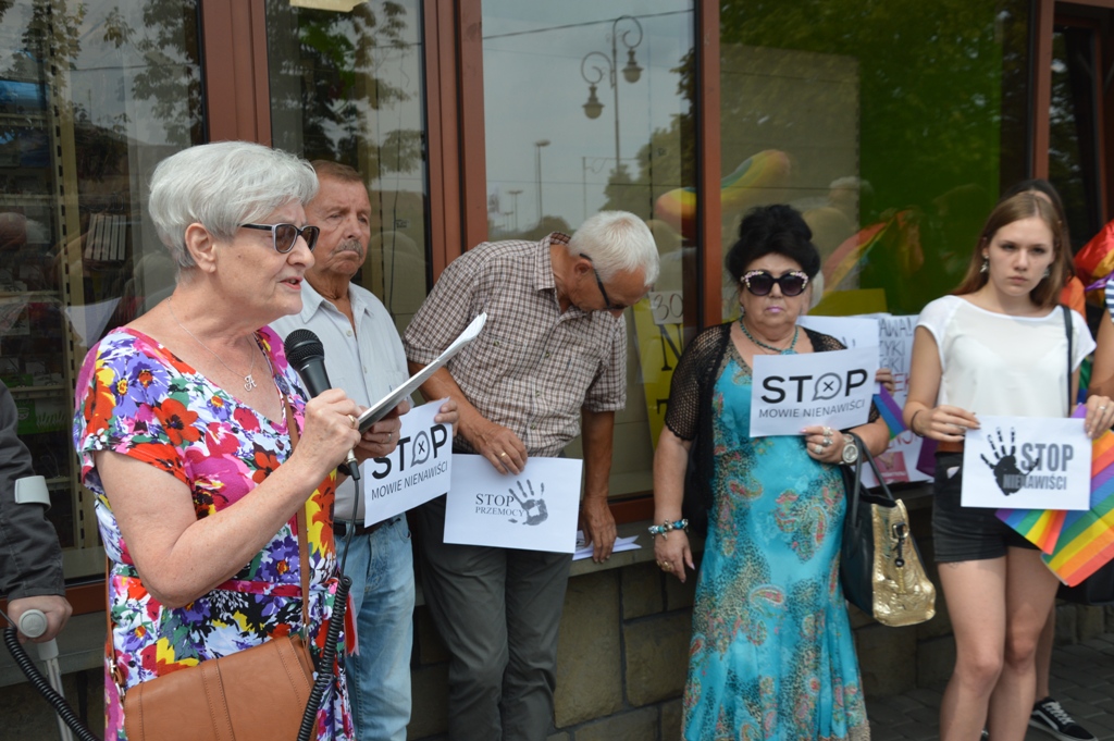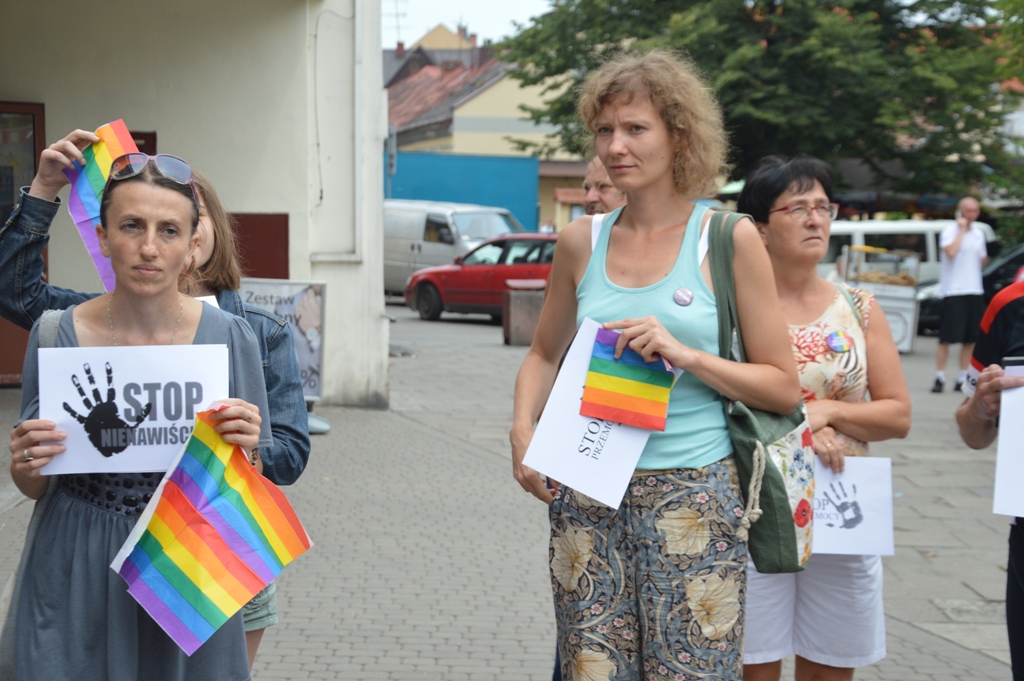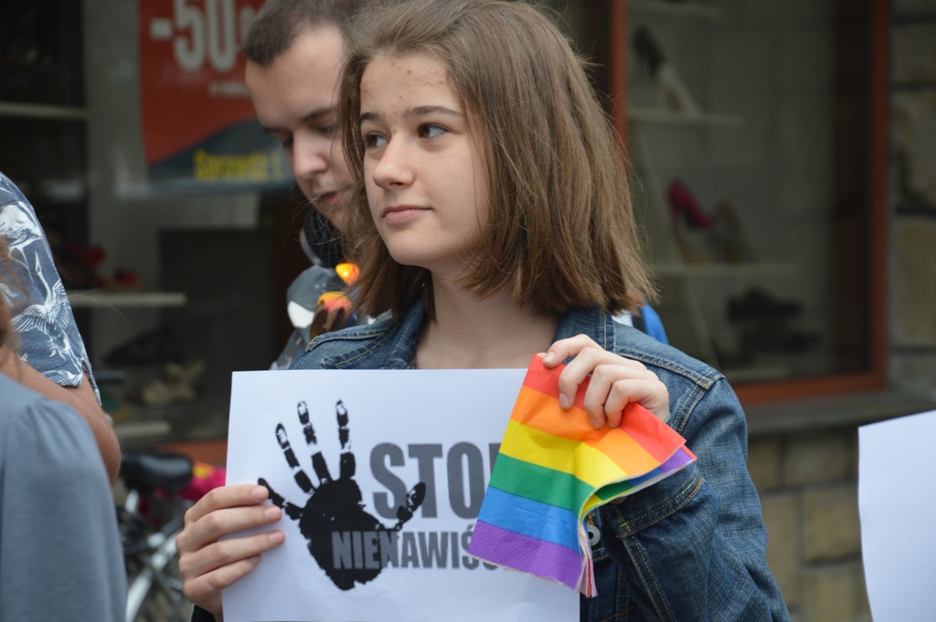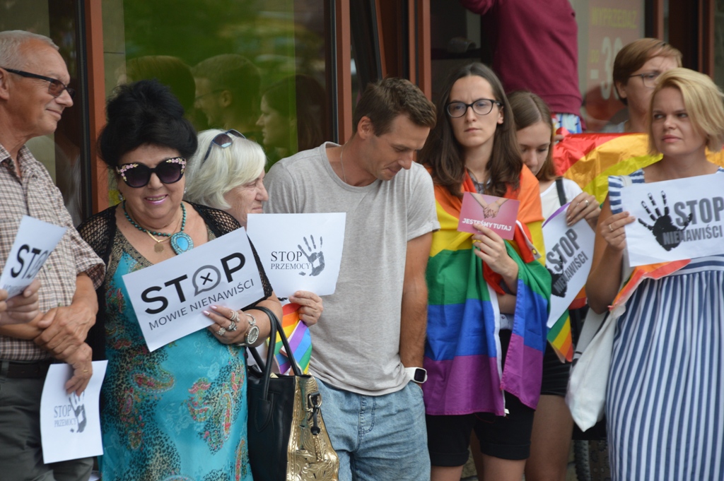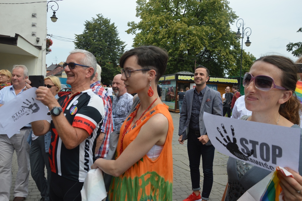 –Dzisiaj wszyscy jesteśmy gejami i lesbijkami -mówiła jedna z przemawiających kobiet. Inna dodała – Jeśli wierzycie, że Bóg stworzył człowieka, to każdego, LGBT też. Nie po to żeby go wykluczać i stosować wobec niego przemoc– mówiła.
