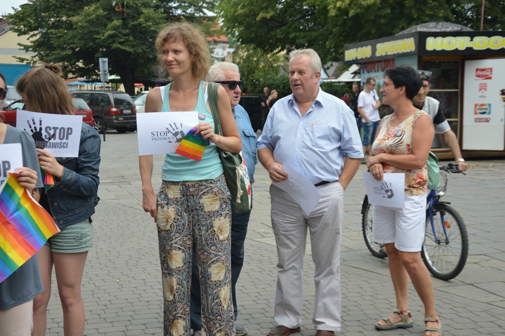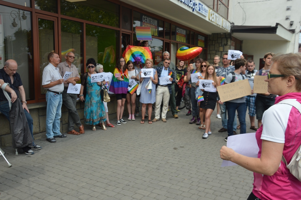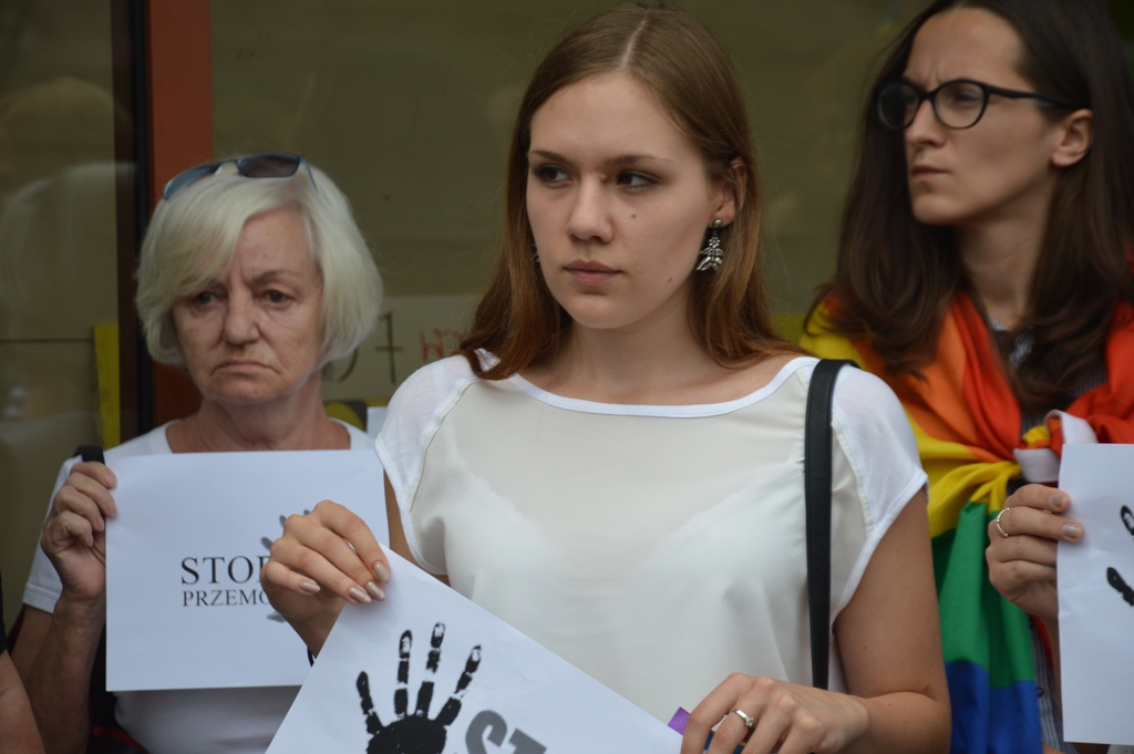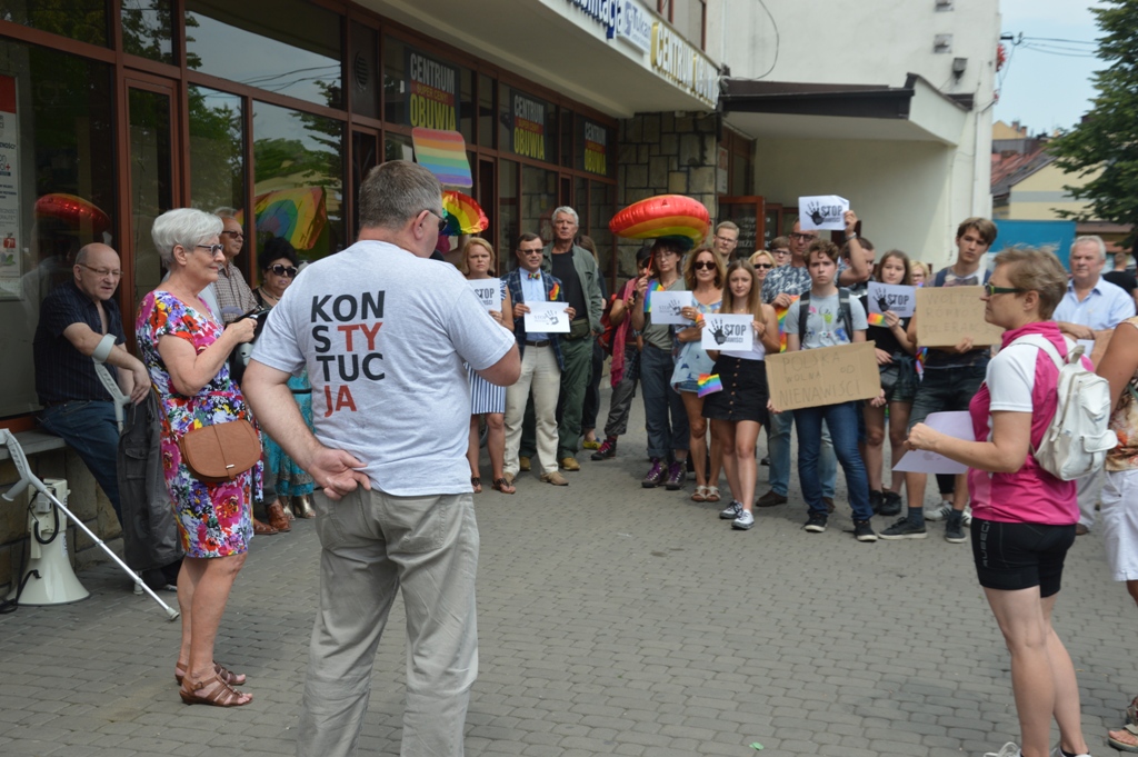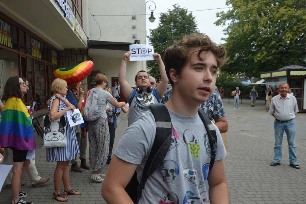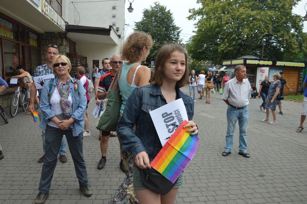 –Dzisiaj wszyscy jesteśmy gejami i lesbijkami -mówiła jedna z przemawiających kobiet. Inna dodała – Jeśli wierzycie, że Bóg stworzył człowieka, to każdego, LGBT też. Nie po to żeby go wykluczać i stosować wobec niego przemoc– mówiła.