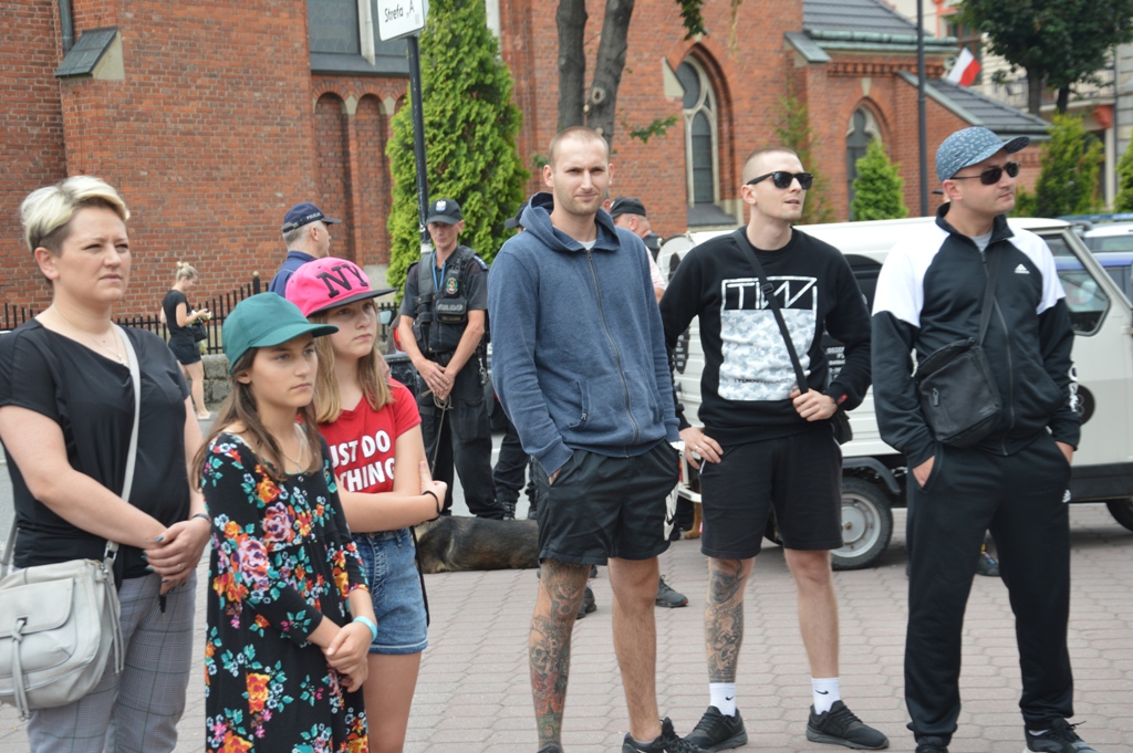 Po drugiej strony ulicy Młodzież Wszechpolska skandowała” Wielka Polska katolicka, nie tęczowa,nie laicka „, „Chłopak dziewczyna normalna rodzina” oraz „Bóg, Honor, Ojczyzna”.