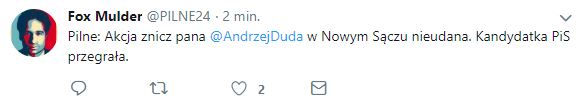 Nieoficjalne wyniki z 16 komisji: Ludomir Handzel (KN) 4700 głosów, Iwona Mularczyk (PIS) 3700 głosów
