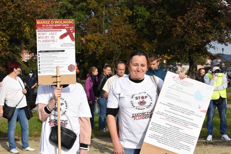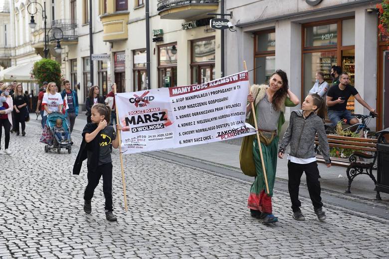Marsz przeciwników obostrzeń sanitarnych związanych z pandemią Covid-19 przeszedł wczoraj (10 października) ulicami Nowego Sącza. Protestujący Sądeczanie przeszli od Starej Sandecji, alejami Wolności na płytę Rynku. „Marsz równości”, „Stop fałszywej PLANdemii” i „Zakończyć PLANdemię” to najczęstsze hasła powtarzane przez protestujących,