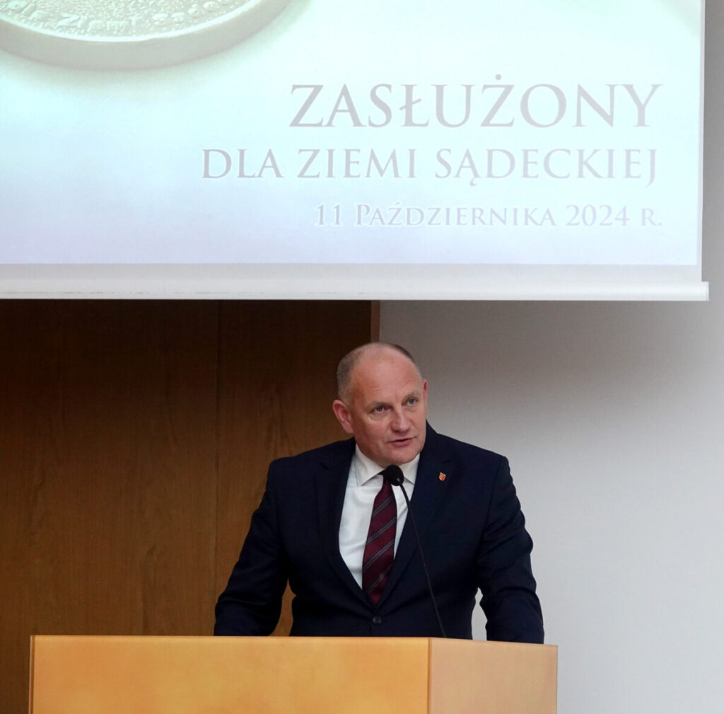 Jestem wzruszony i zaszczycony, że mogę wręczyć Państwu medale „Zasłużony dla Ziemi Sądeckiej” mówił starosta Tadeusz Zaremba. Zapisaliście się Państwo w historii Sądecczyzny swoją działalnością, dbaniem o wartości patriotyczne, naszą kulturę i tradycję, działaniami na rzecz rozwoju edukacji i opieki zdrowotnej. Gratuluję osiągnięć i dziękuję za serce, które wkładacie w swoją działalność!