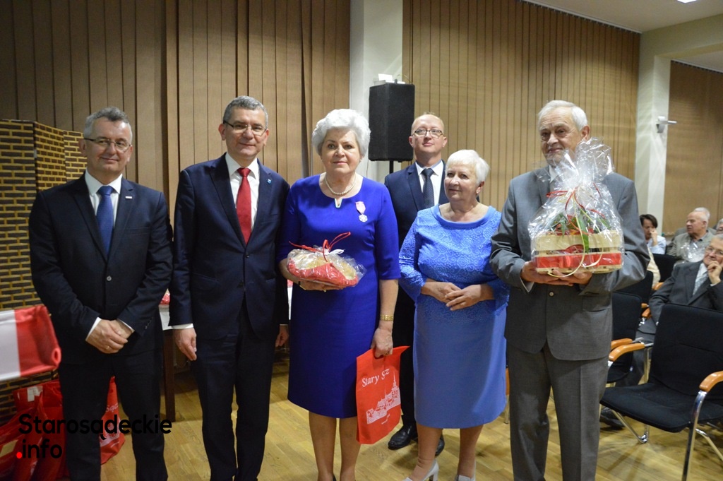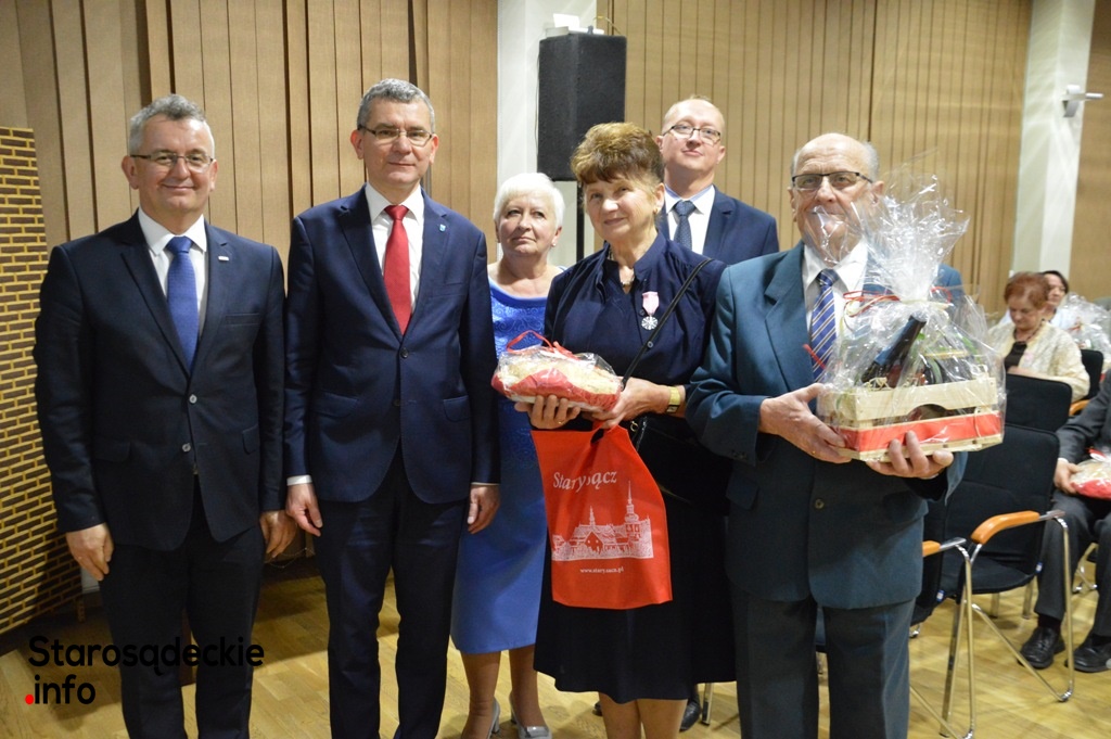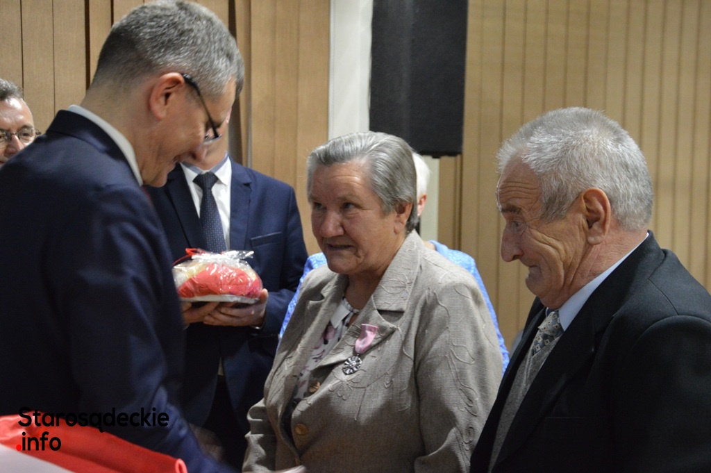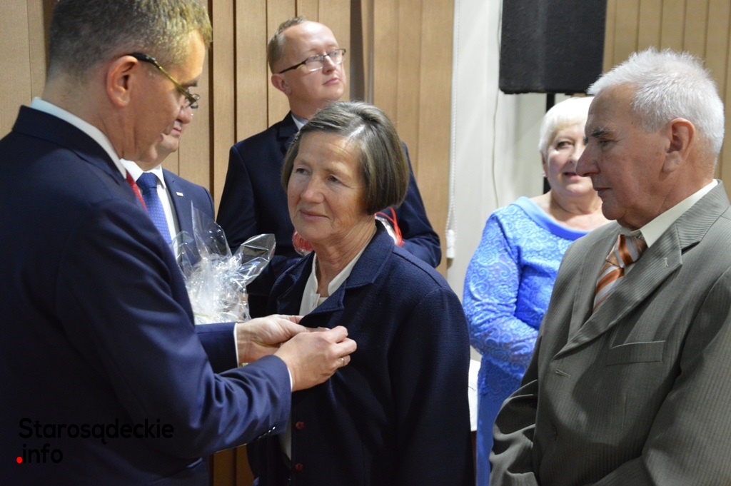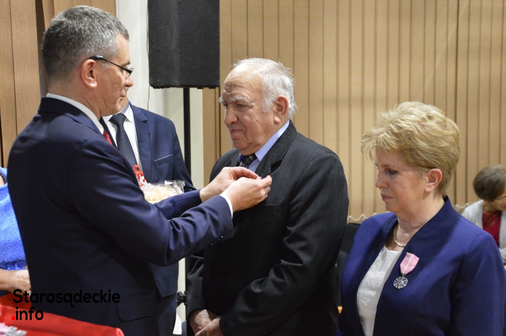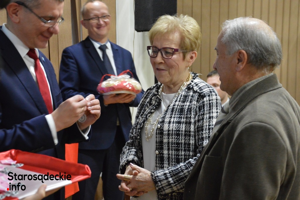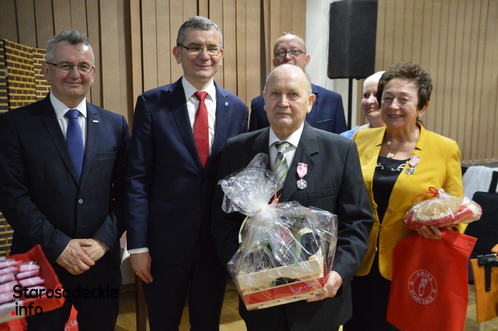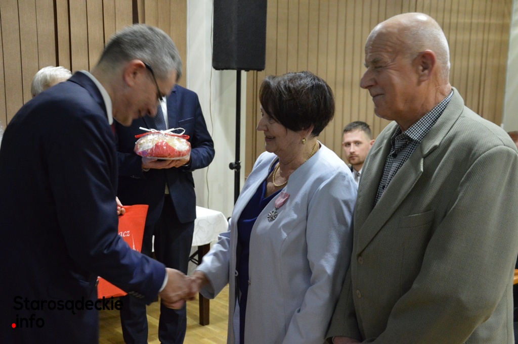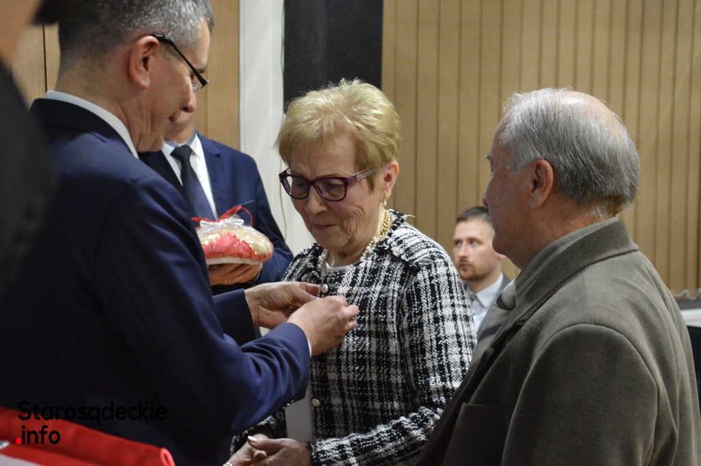 Medale Prezydenta Rzeczypospolitej Polskiej oraz kosze z upominkami wręczył burmistrz Jacek Lelek razem z przewodniczącą Rady Miejskiej Ewą Zielińską, wiceburmistrzem Kazimierzem Gizickim i sekretarzem Gminy Danielem Śmierciakiem.