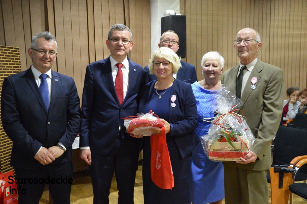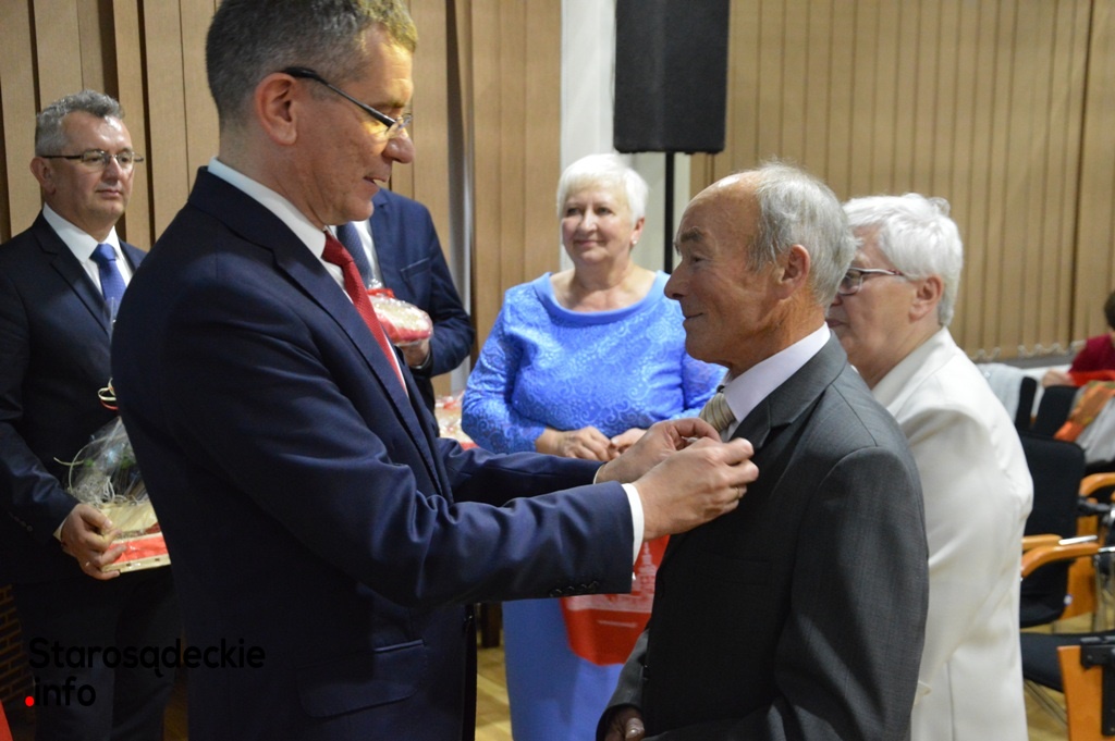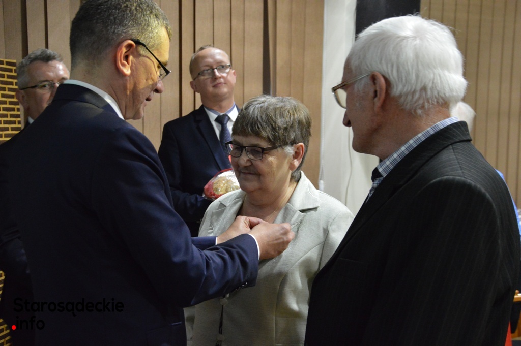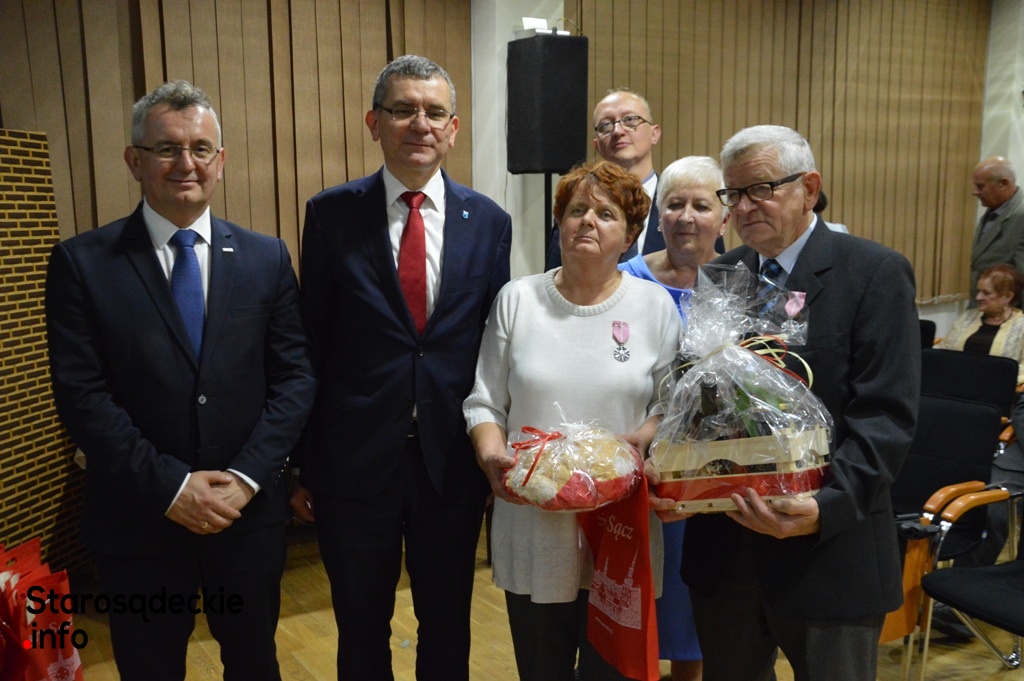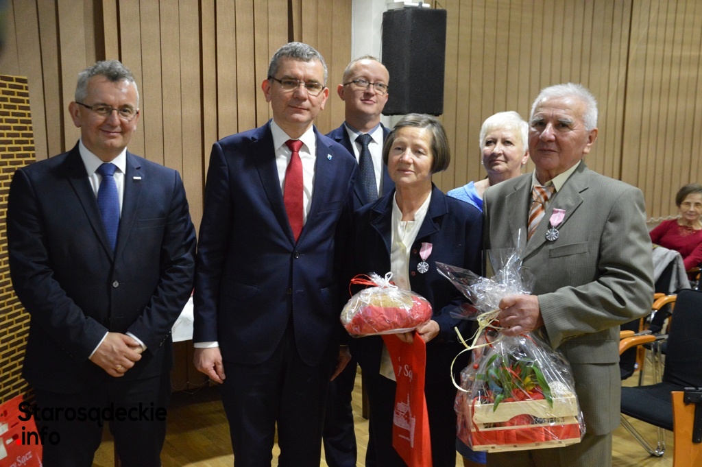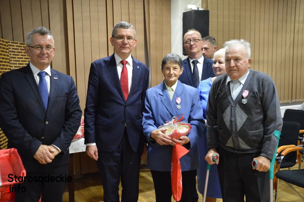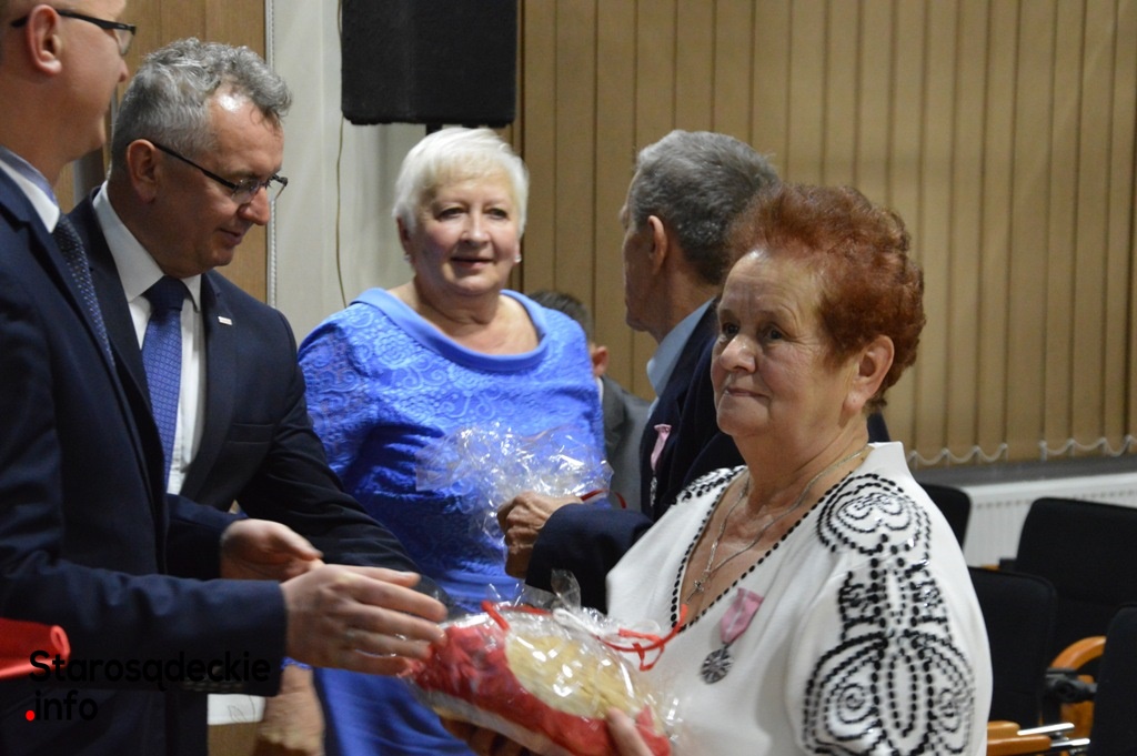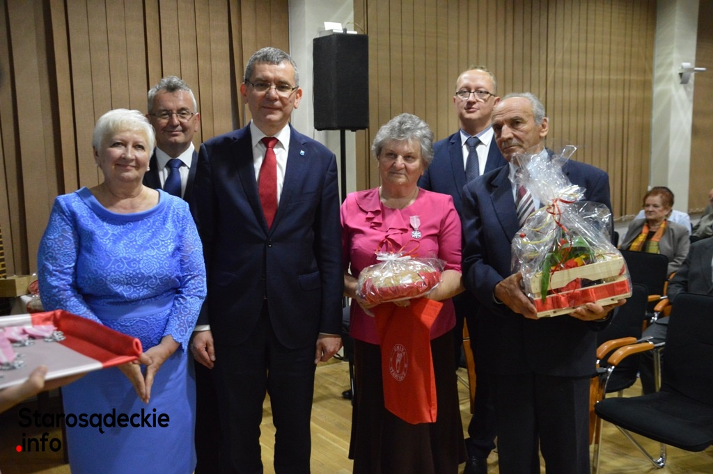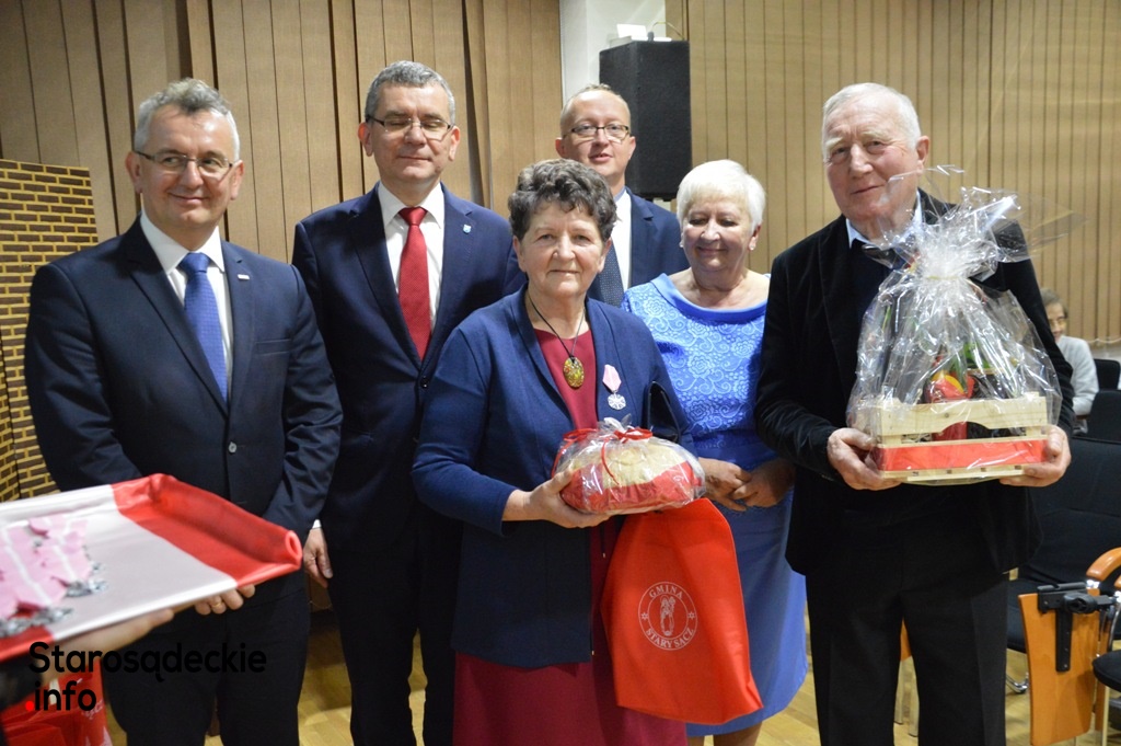 Medale Prezydenta Rzeczypospolitej Polskiej oraz kosze z upominkami wręczył burmistrz Jacek Lelek razem z przewodniczącą Rady Miejskiej Ewą Zielińską, wiceburmistrzem Kazimierzem Gizickim i sekretarzem Gminy Danielem Śmierciakiem.