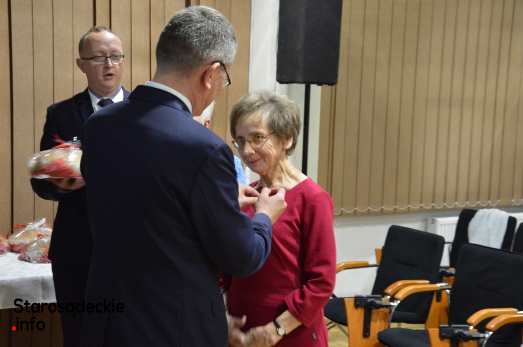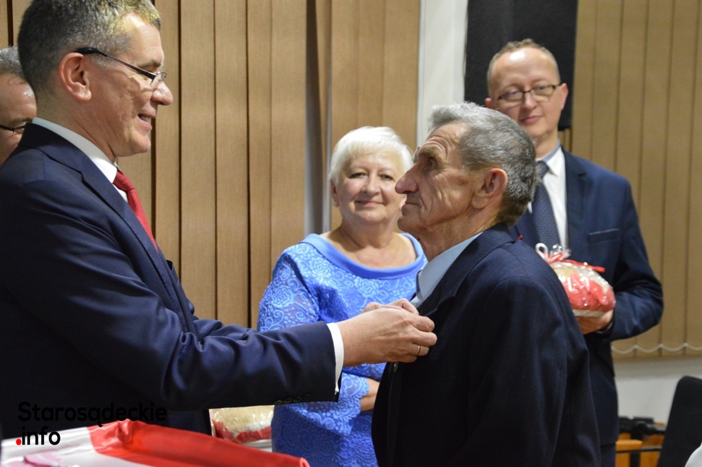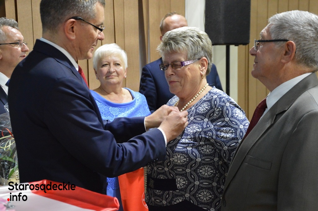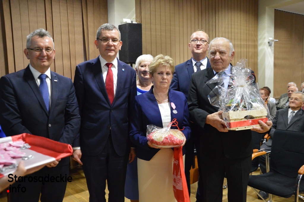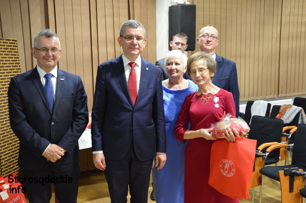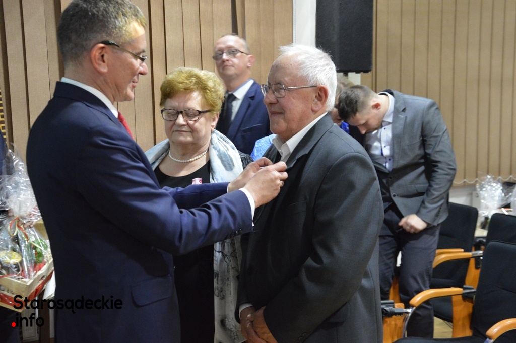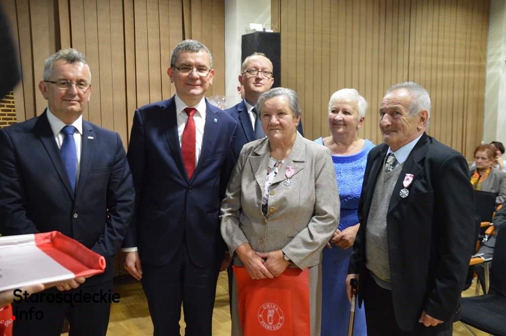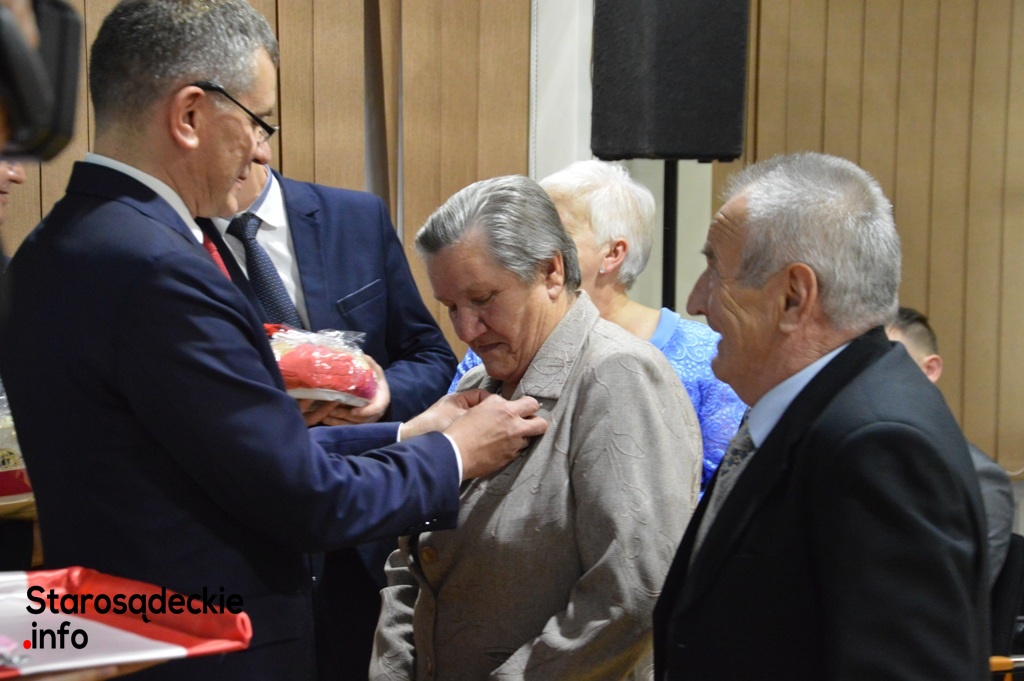 Medale Prezydenta Rzeczypospolitej Polskiej oraz kosze z upominkami wręczył burmistrz Jacek Lelek razem z przewodniczącą Rady Miejskiej Ewą Zielińską, wiceburmistrzem Kazimierzem Gizickim i sekretarzem Gminy Danielem Śmierciakiem.