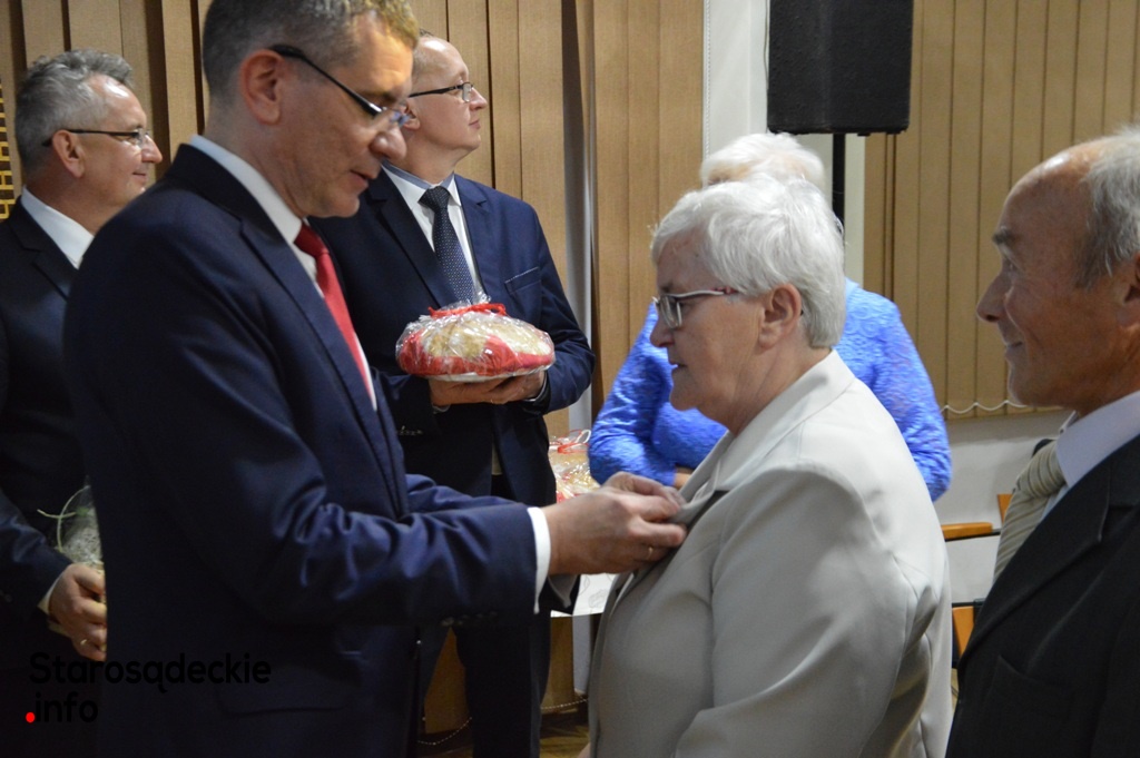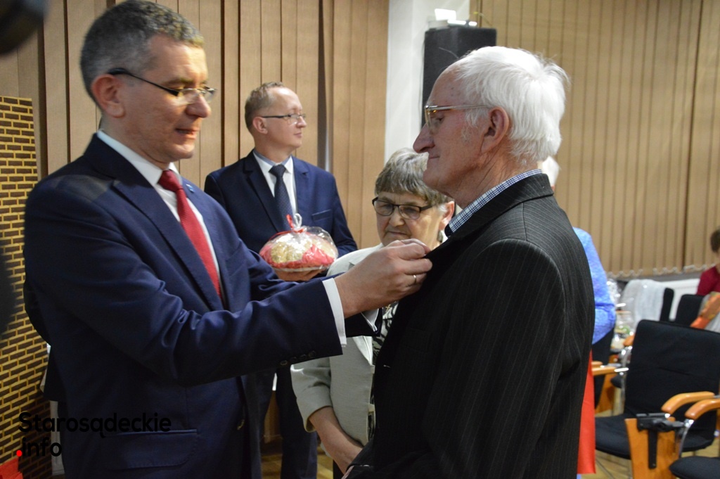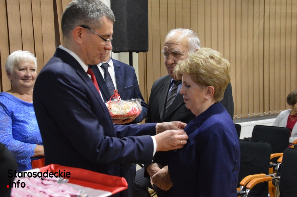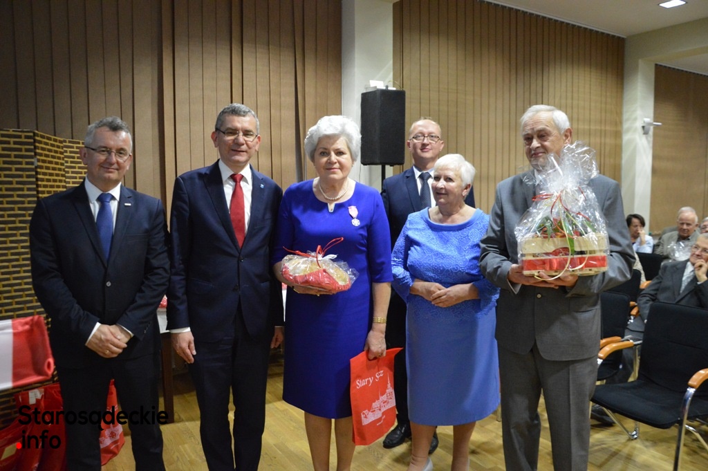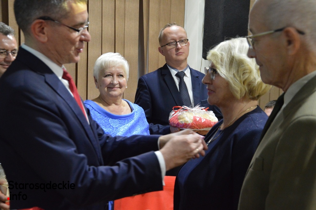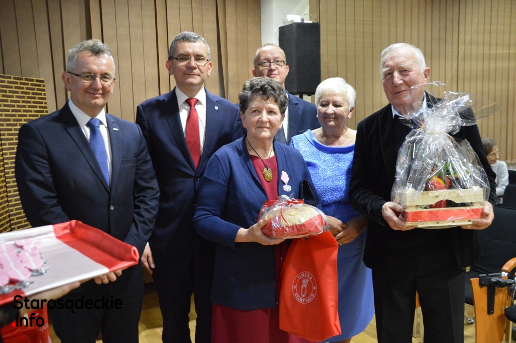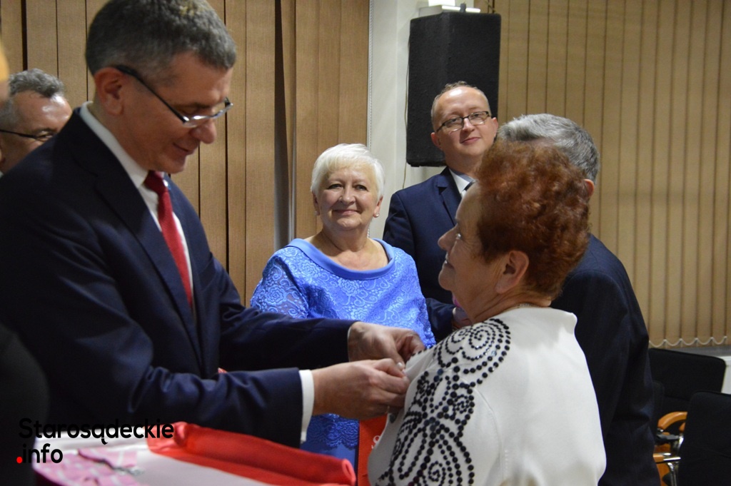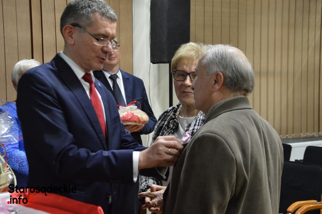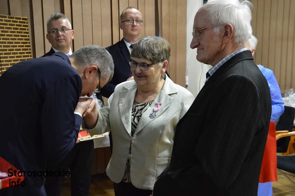 Medale Prezydenta Rzeczypospolitej Polskiej oraz kosze z upominkami wręczył burmistrz Jacek Lelek razem z przewodniczącą Rady Miejskiej Ewą Zielińską, wiceburmistrzem Kazimierzem Gizickim i sekretarzem Gminy Danielem Śmierciakiem.