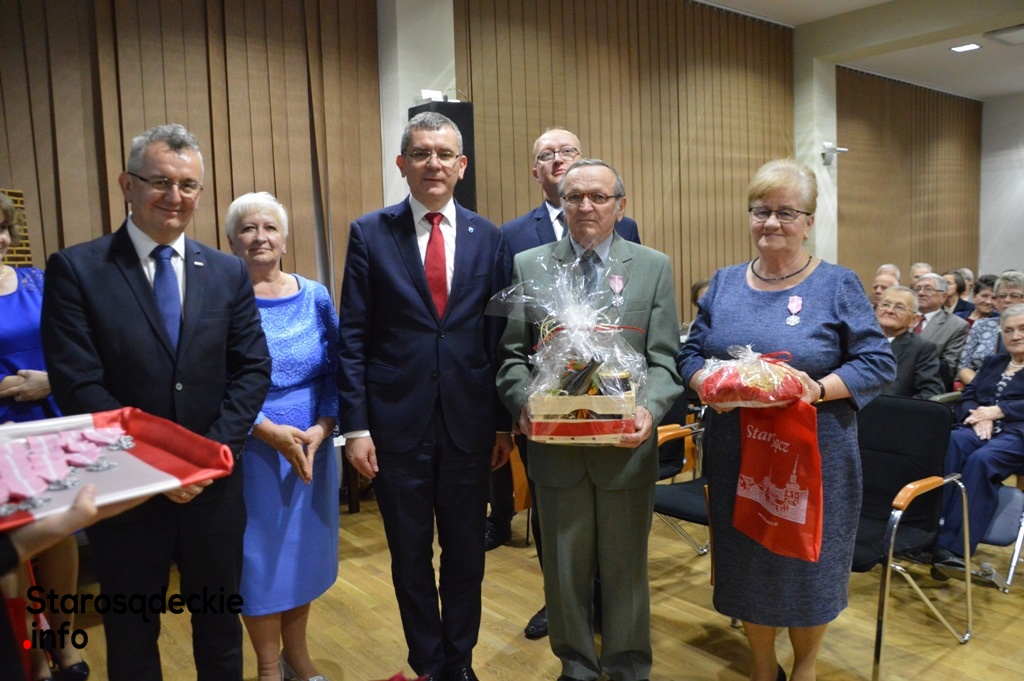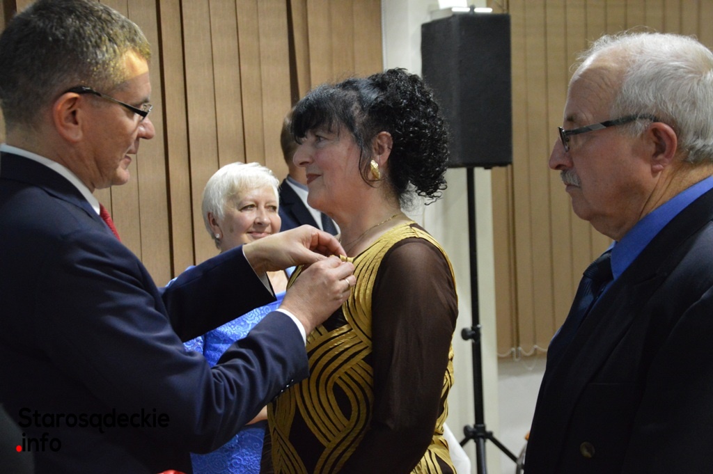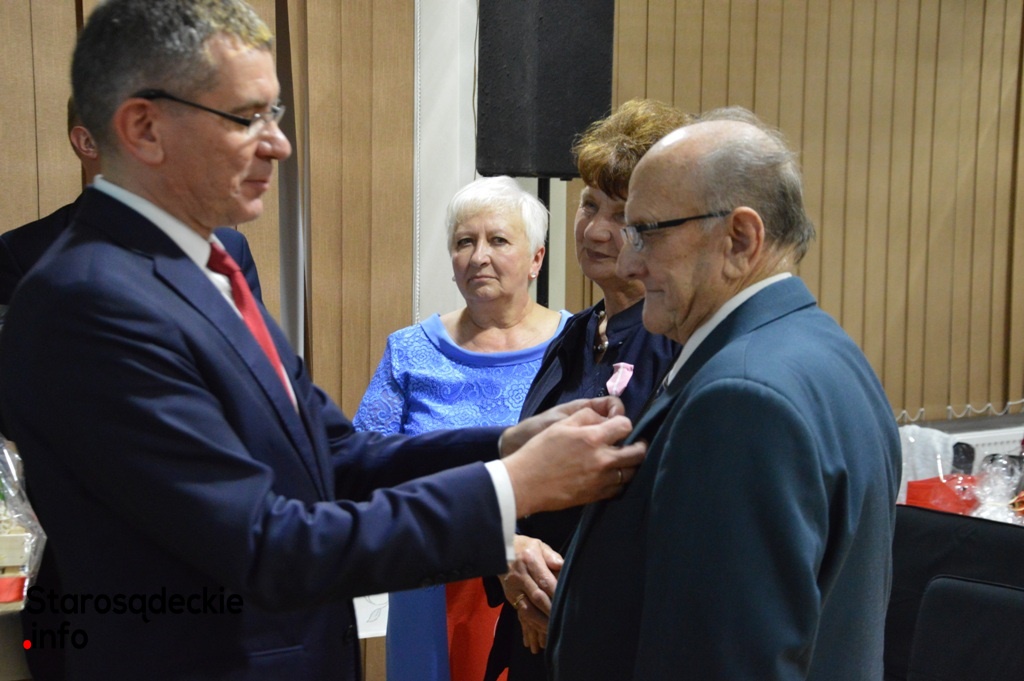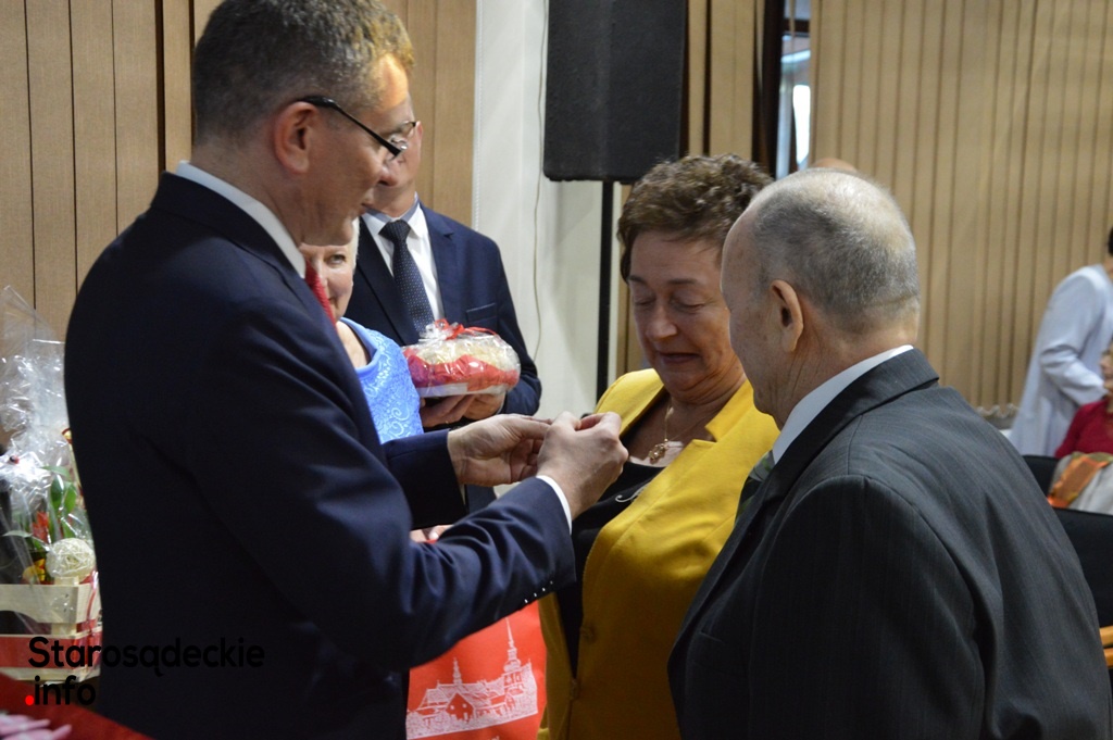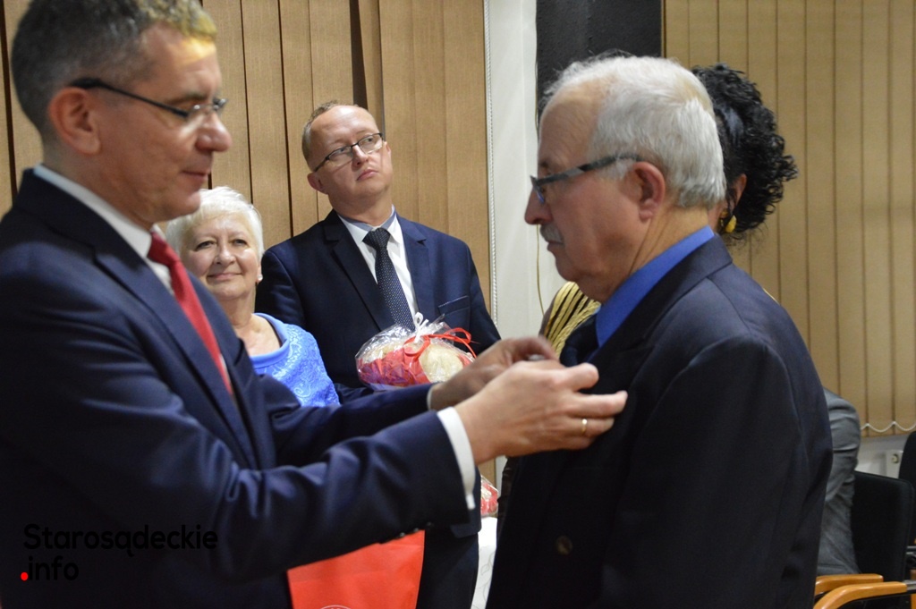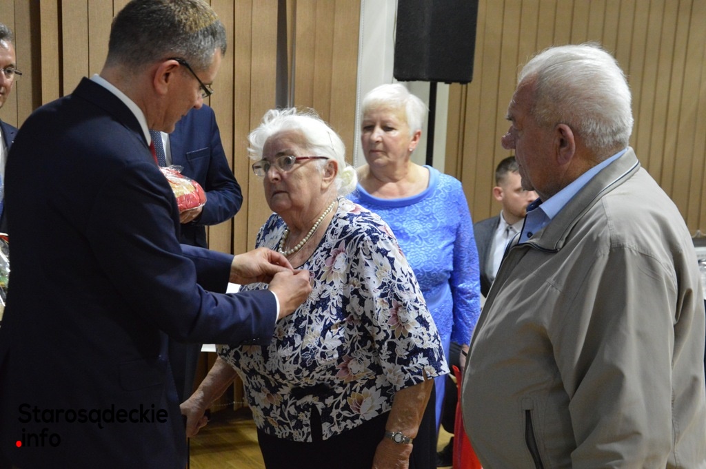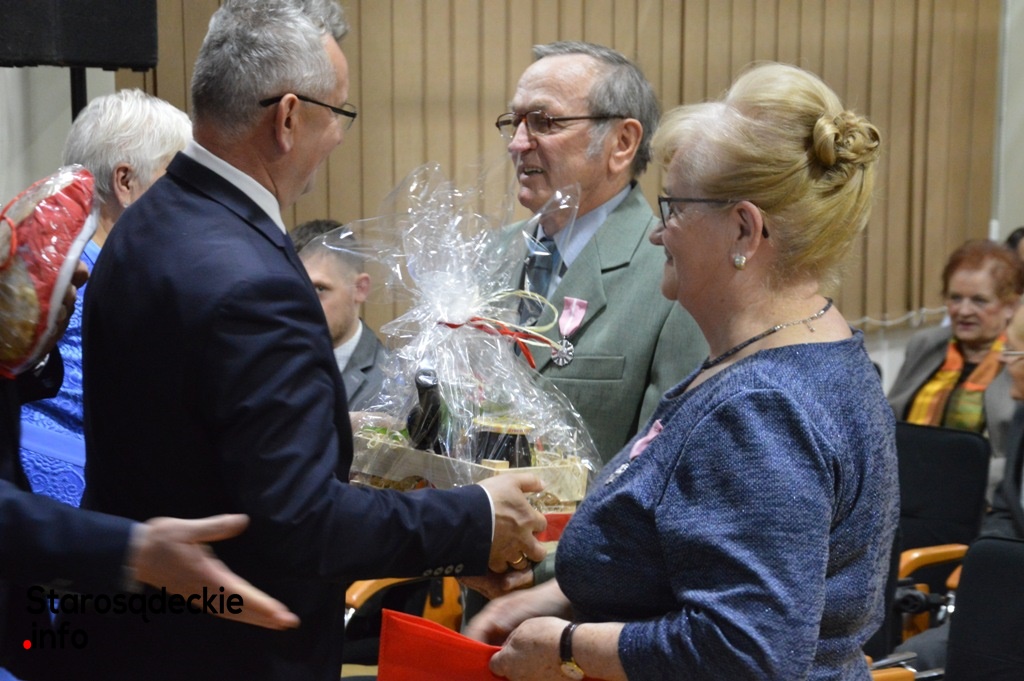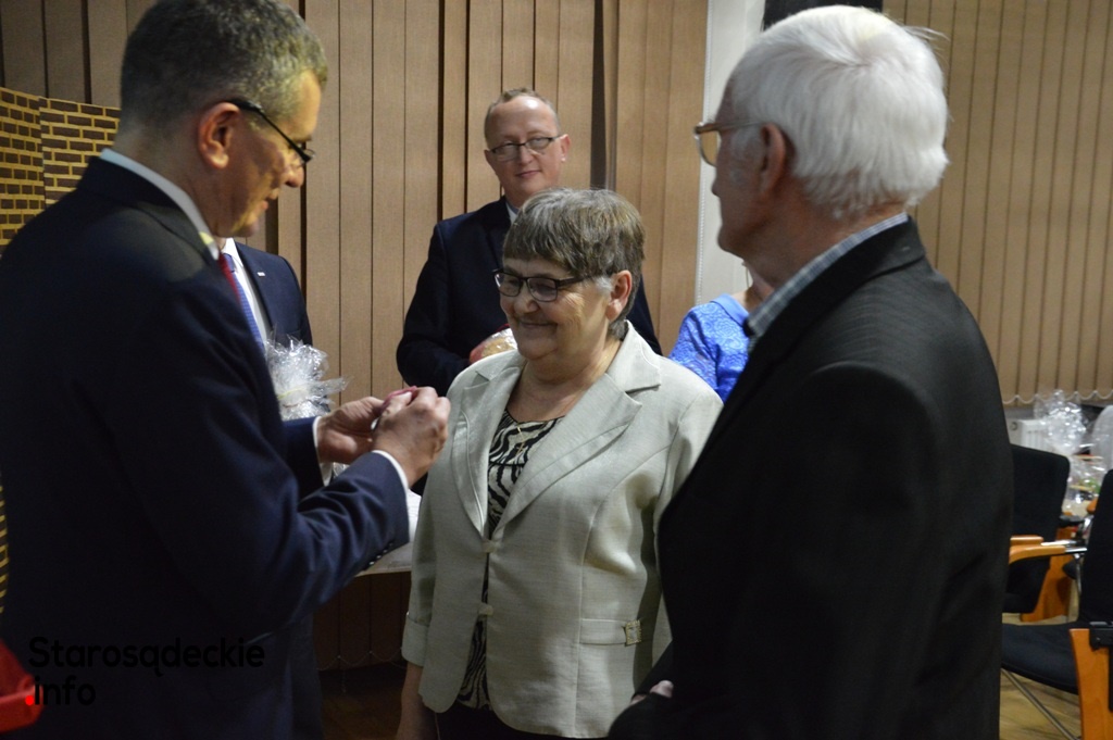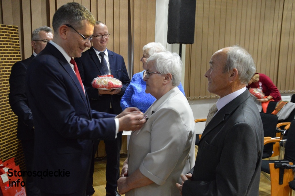 Medale Prezydenta Rzeczypospolitej Polskiej oraz kosze z upominkami wręczył burmistrz Jacek Lelek razem z przewodniczącą Rady Miejskiej Ewą Zielińską, wiceburmistrzem Kazimierzem Gizickim i sekretarzem Gminy Danielem Śmierciakiem.
