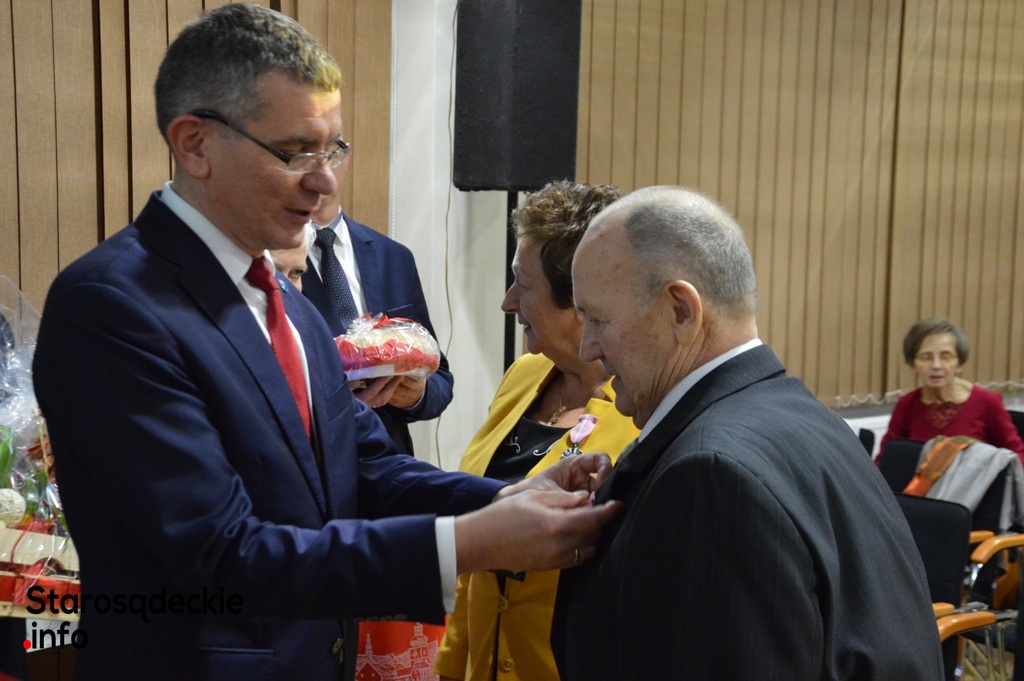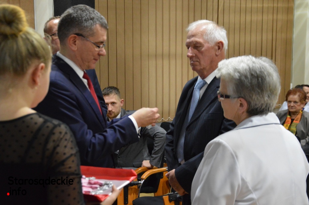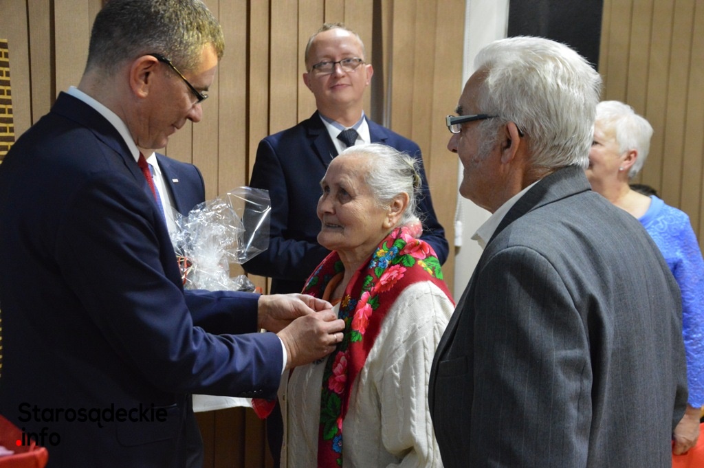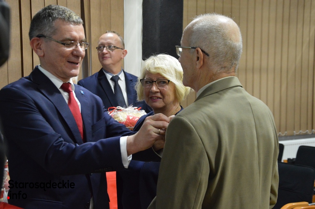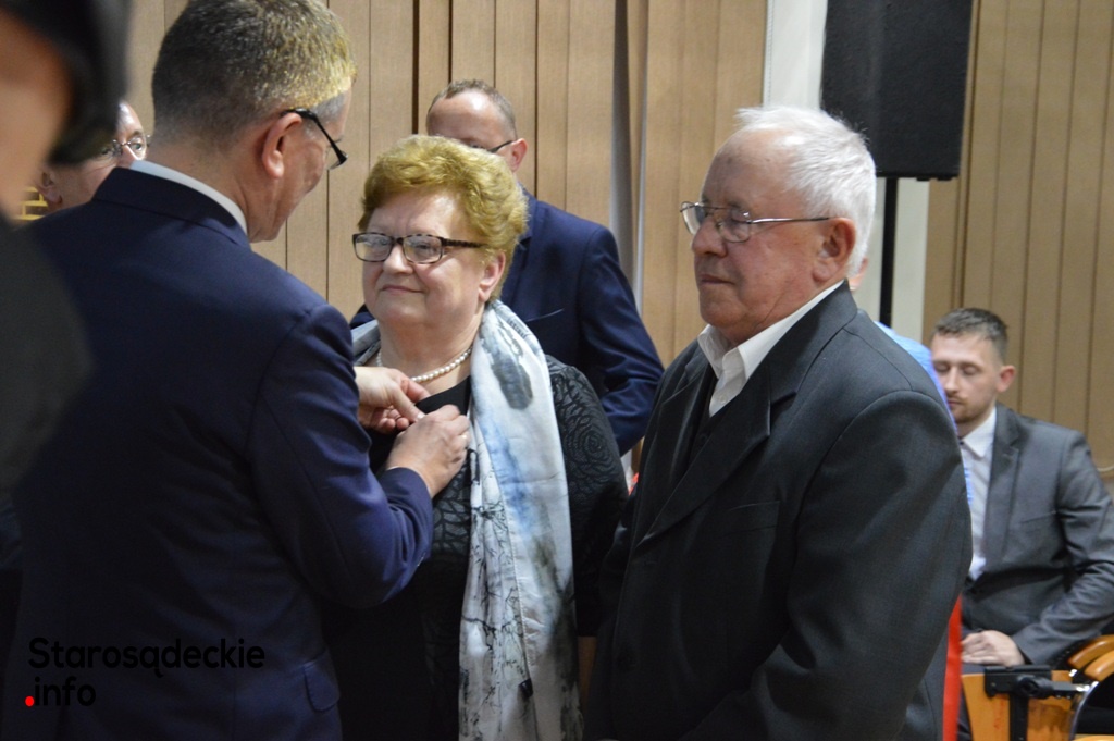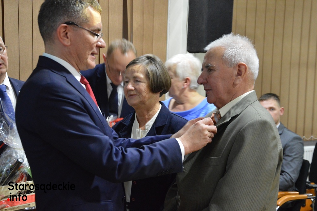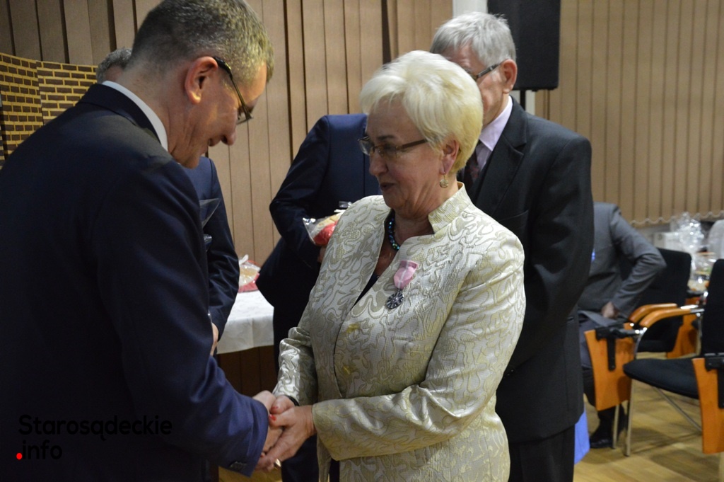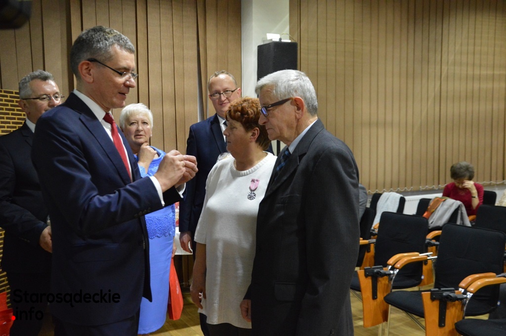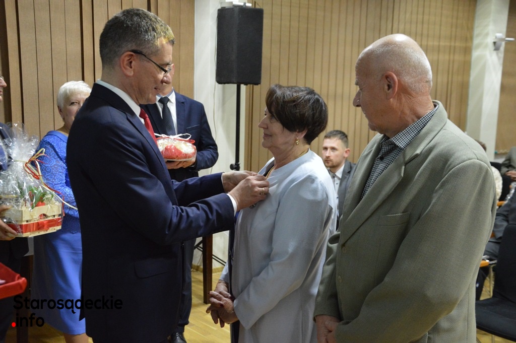 Medale Prezydenta Rzeczypospolitej Polskiej oraz kosze z upominkami wręczył burmistrz Jacek Lelek razem z przewodniczącą Rady Miejskiej Ewą Zielińską, wiceburmistrzem Kazimierzem Gizickim i sekretarzem Gminy Danielem Śmierciakiem.