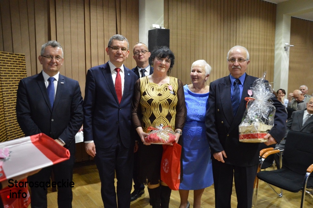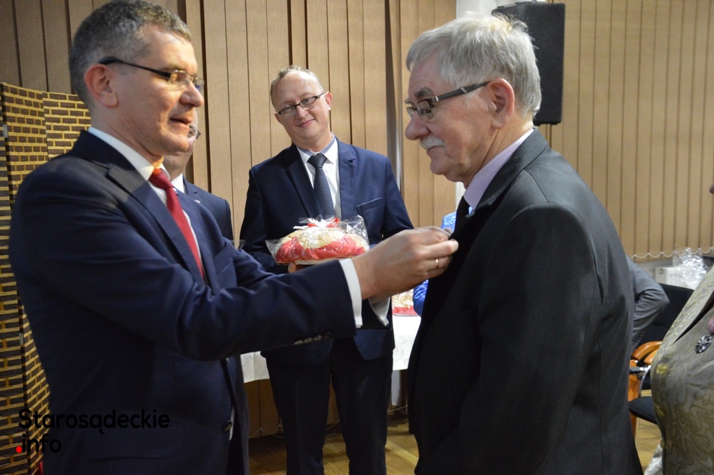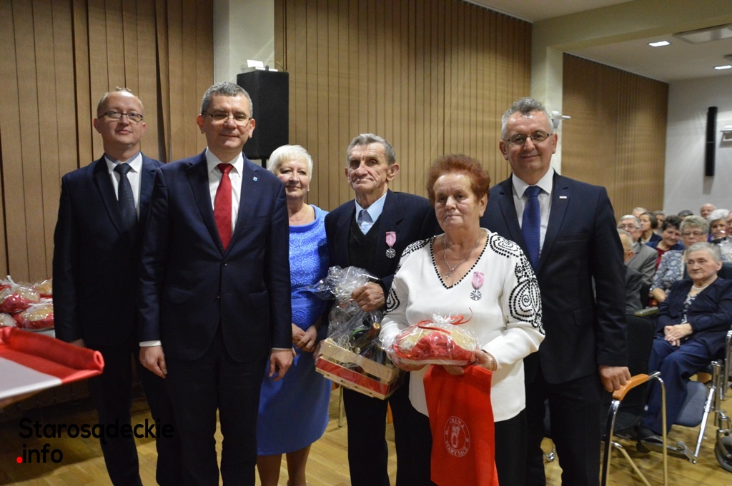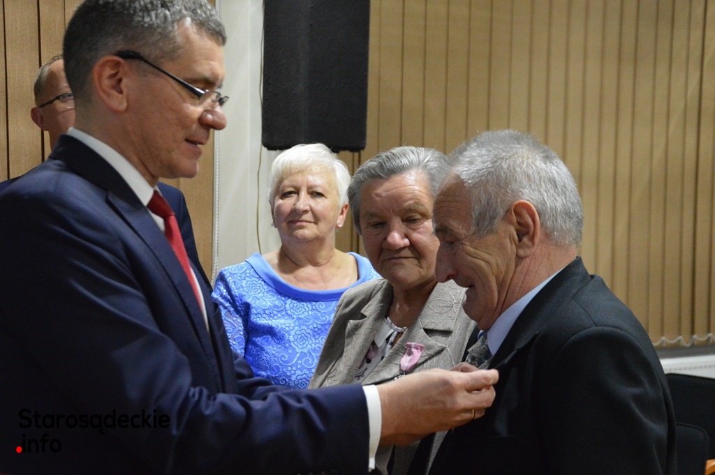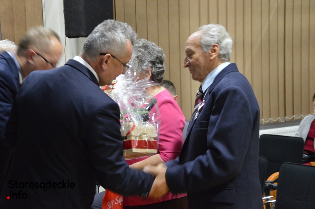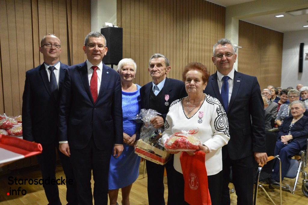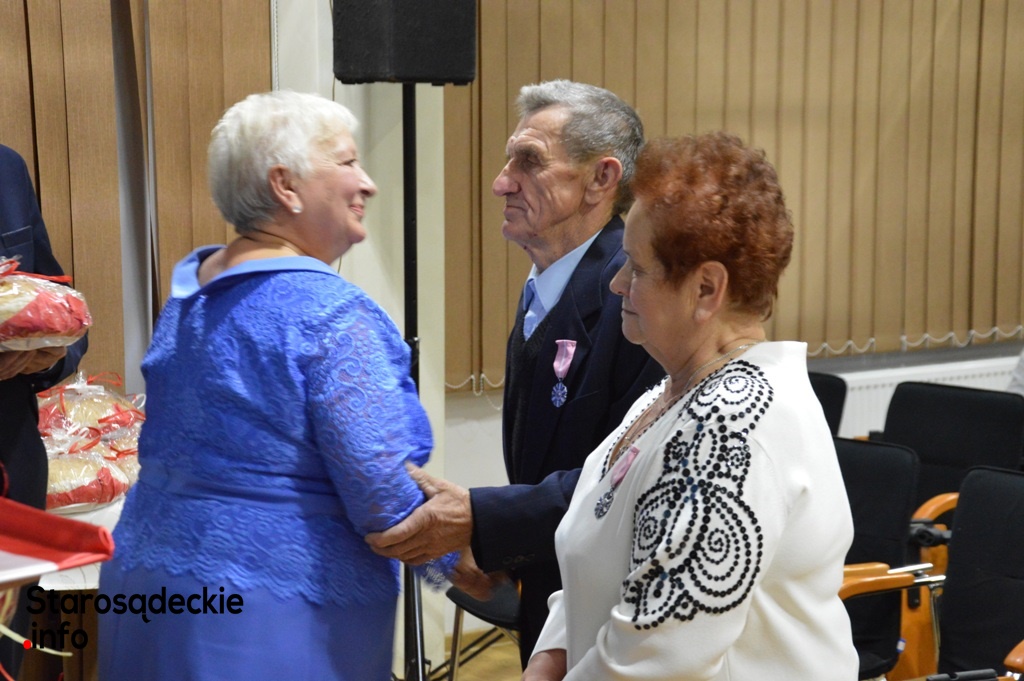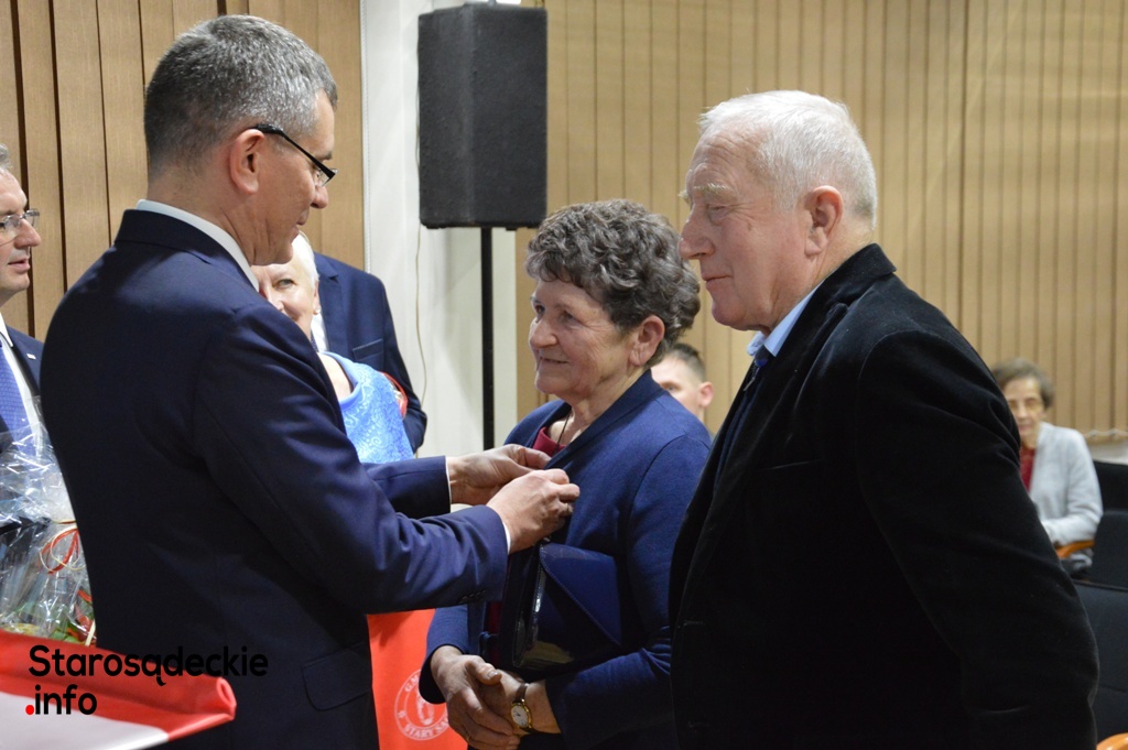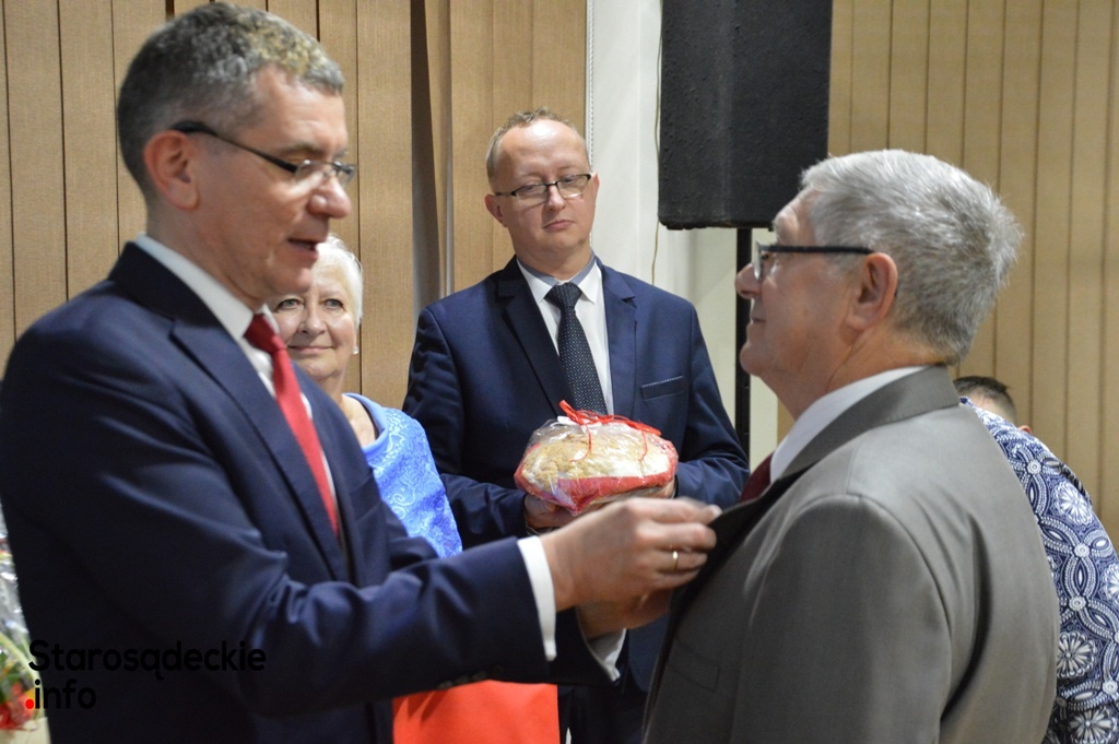 Medale Prezydenta Rzeczypospolitej Polskiej oraz kosze z upominkami wręczył burmistrz Jacek Lelek razem z przewodniczącą Rady Miejskiej Ewą Zielińską, wiceburmistrzem Kazimierzem Gizickim i sekretarzem Gminy Danielem Śmierciakiem.