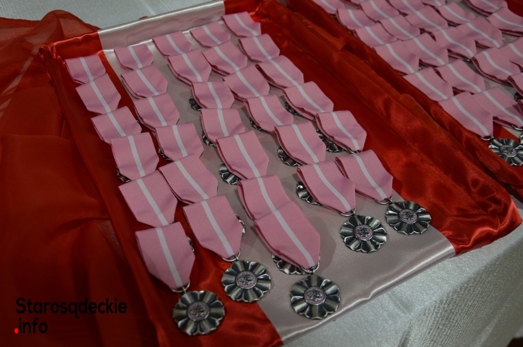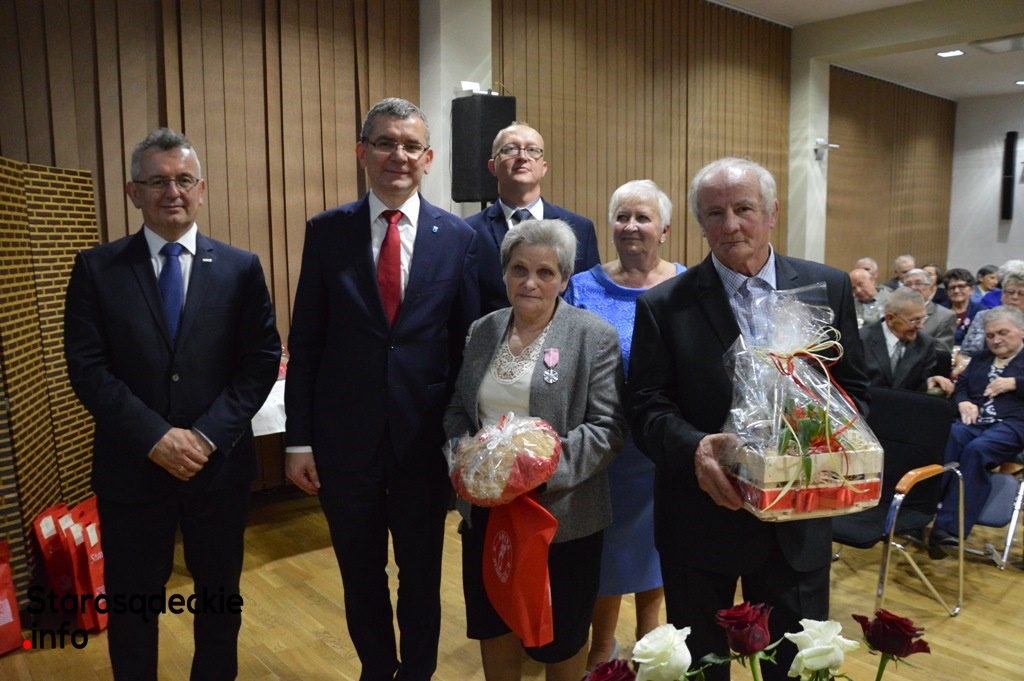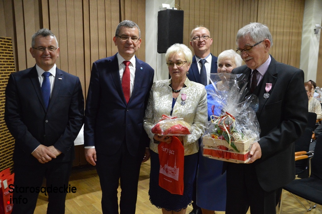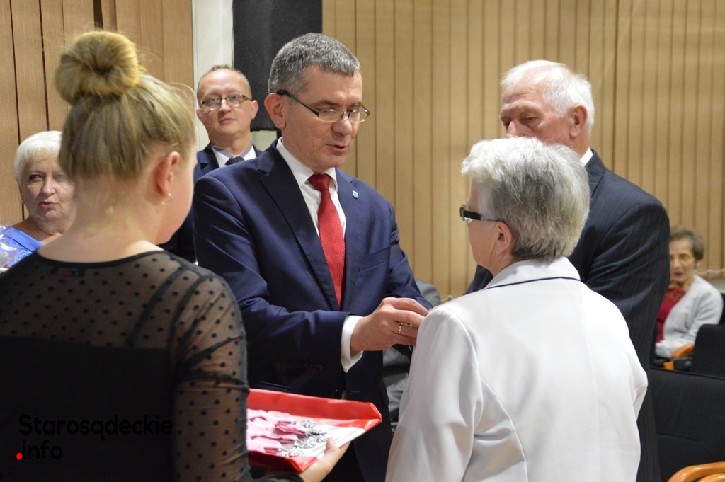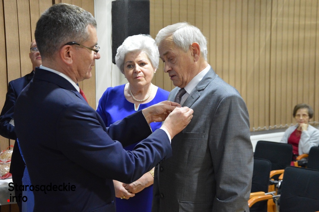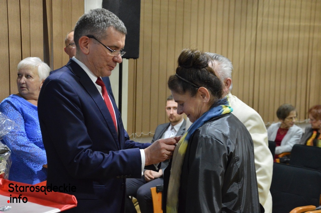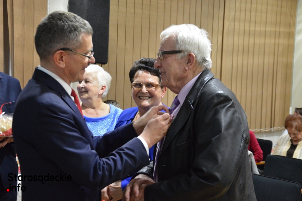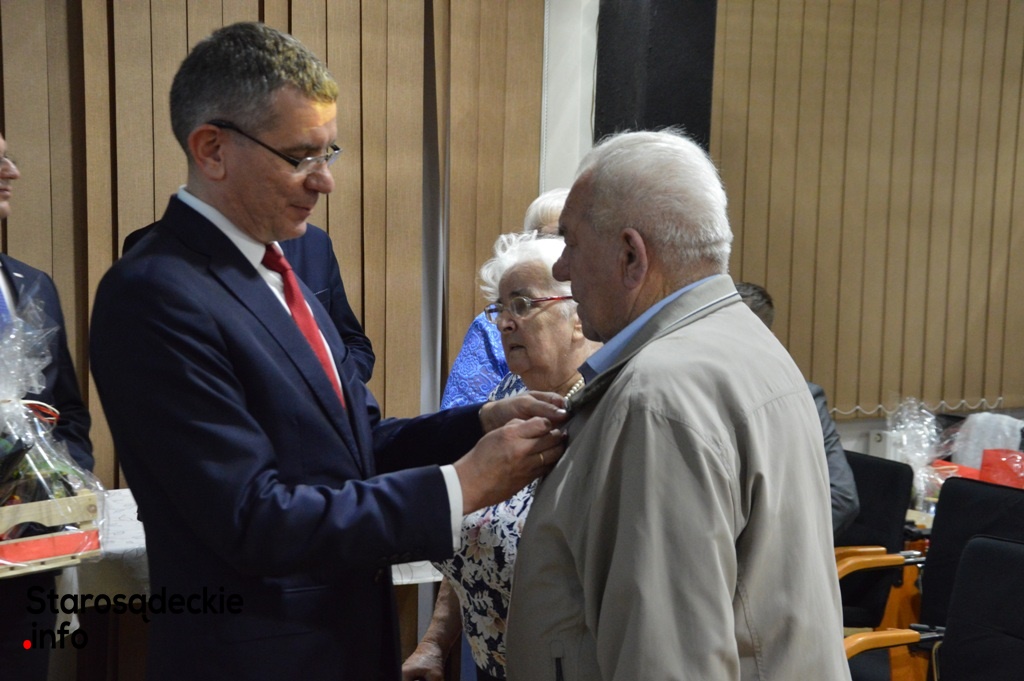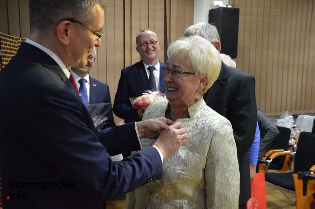 Medale Prezydenta Rzeczypospolitej Polskiej oraz kosze z upominkami wręczył burmistrz Jacek Lelek razem z przewodniczącą Rady Miejskiej Ewą Zielińską, wiceburmistrzem Kazimierzem Gizickim i sekretarzem Gminy Danielem Śmierciakiem.