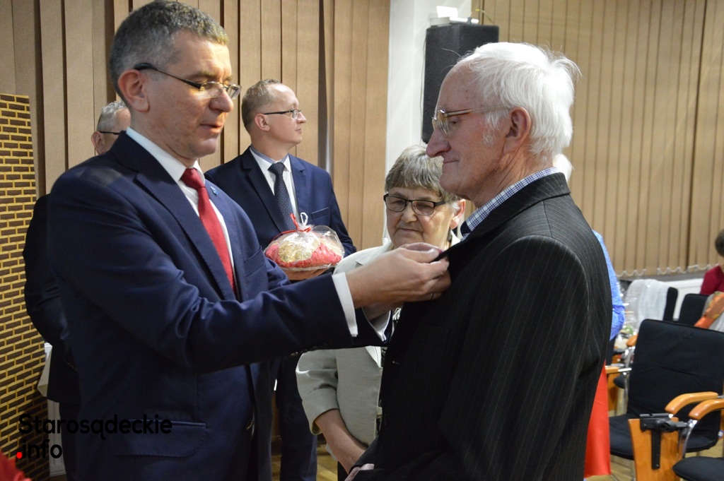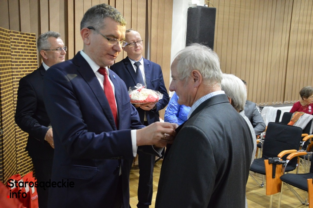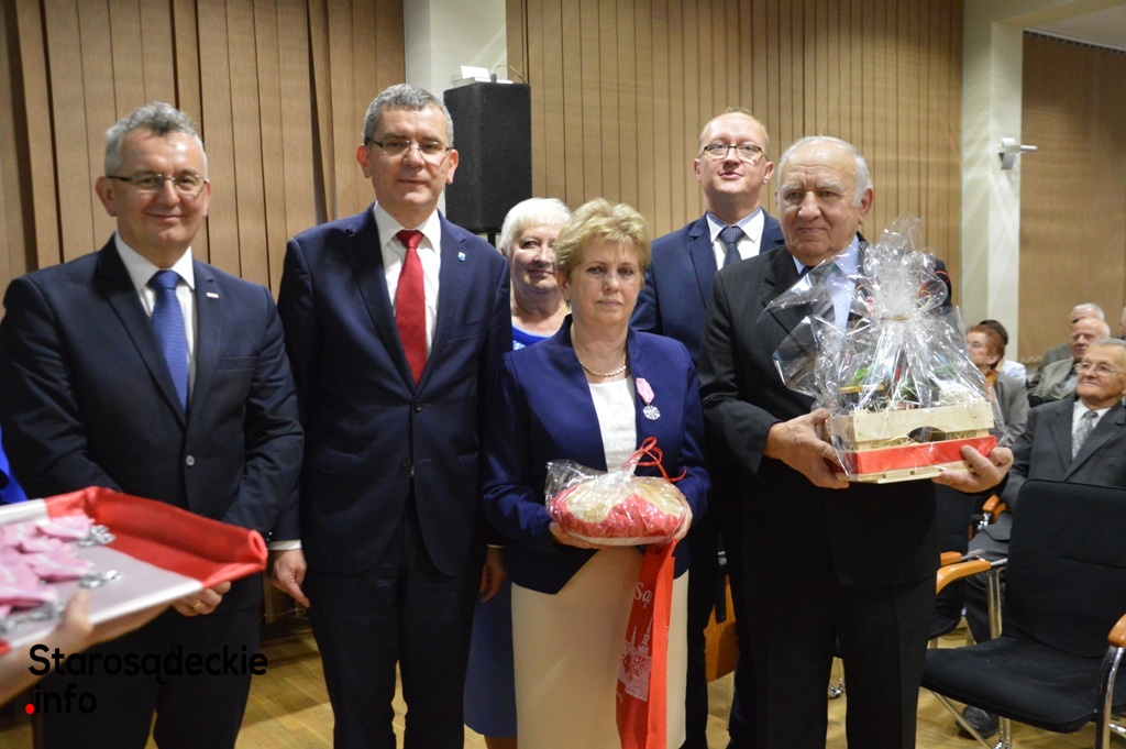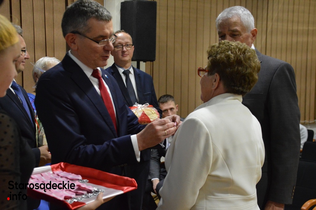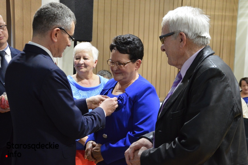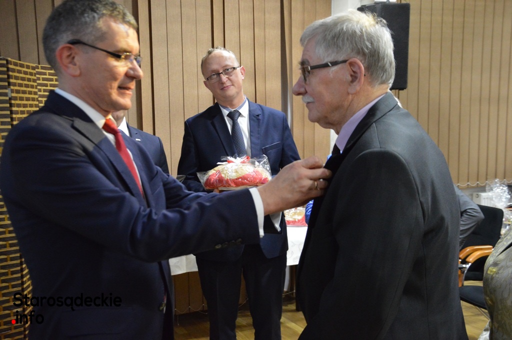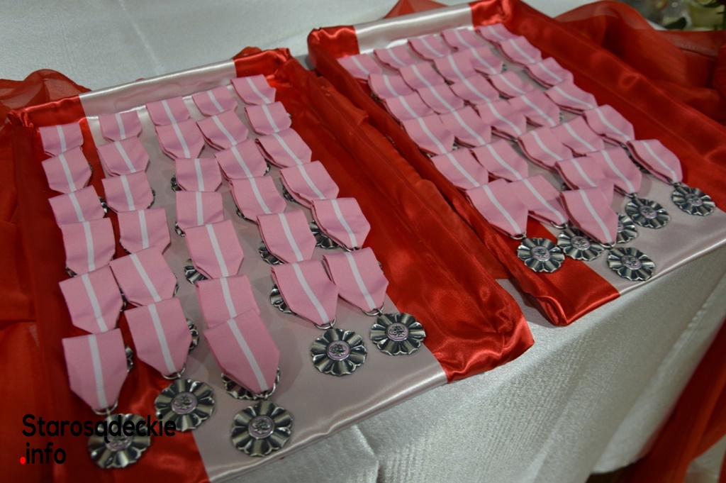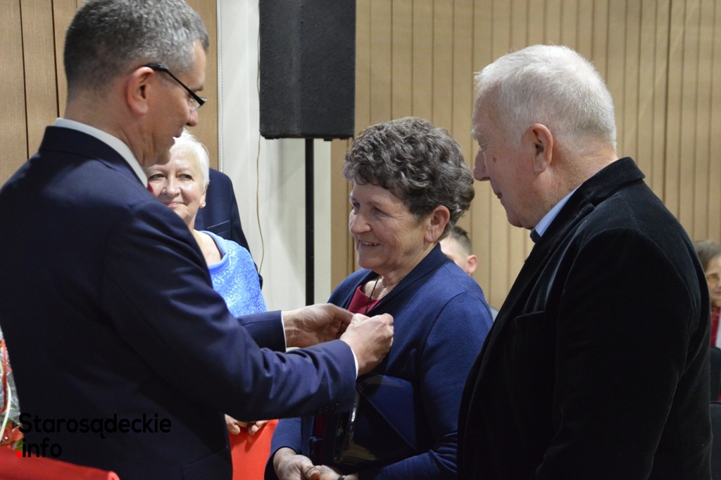 Medale Prezydenta Rzeczypospolitej Polskiej oraz kosze z upominkami wręczył burmistrz Jacek Lelek razem z przewodniczącą Rady Miejskiej Ewą Zielińską, wiceburmistrzem Kazimierzem Gizickim i sekretarzem Gminy Danielem Śmierciakiem.