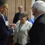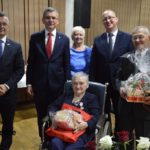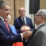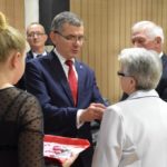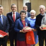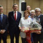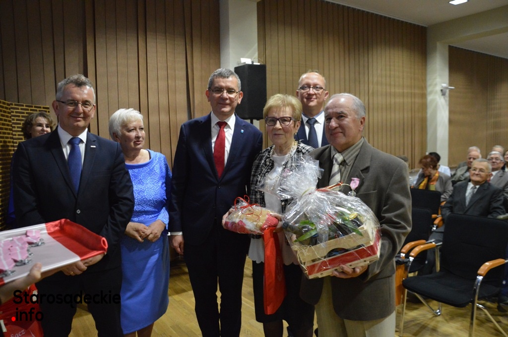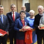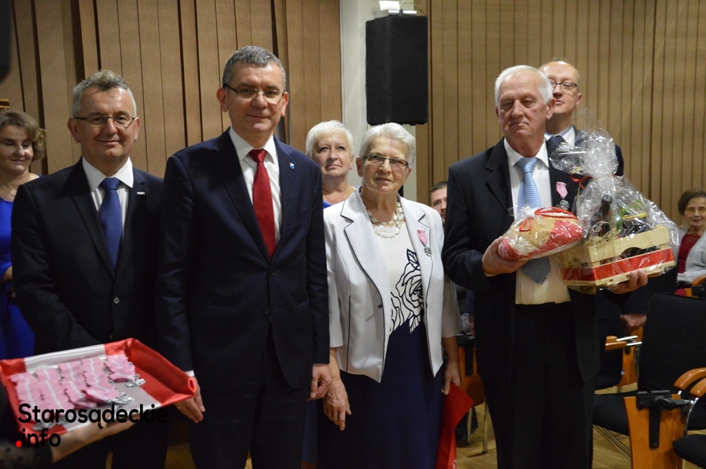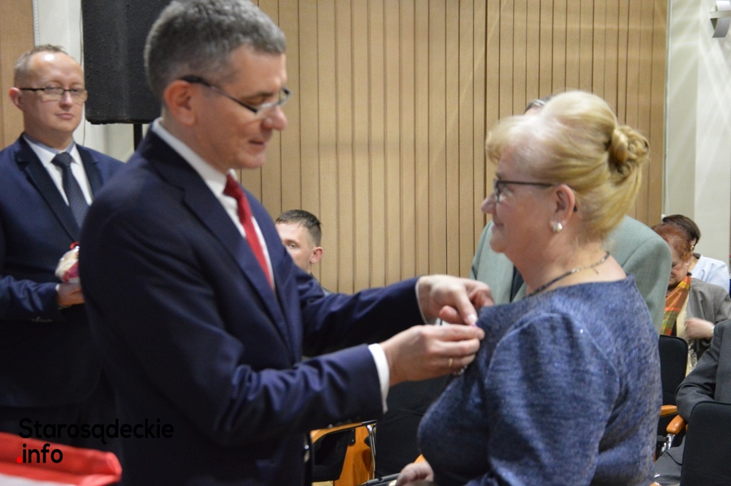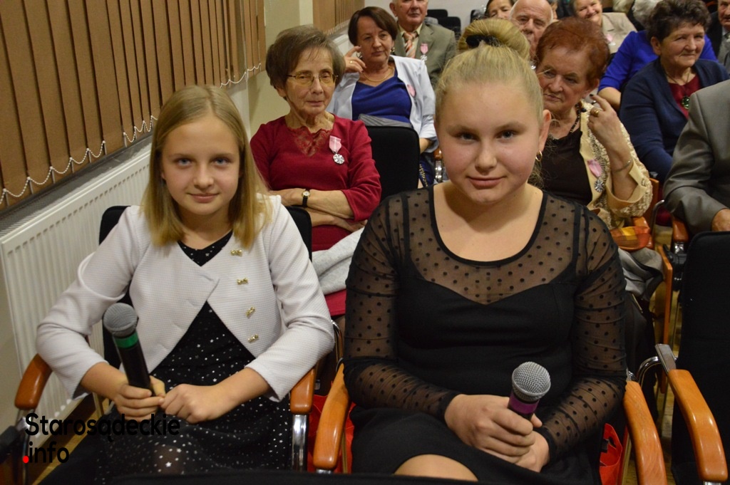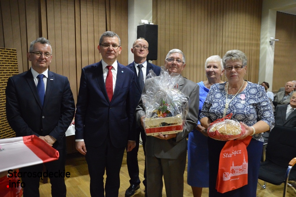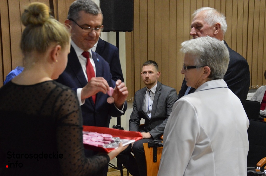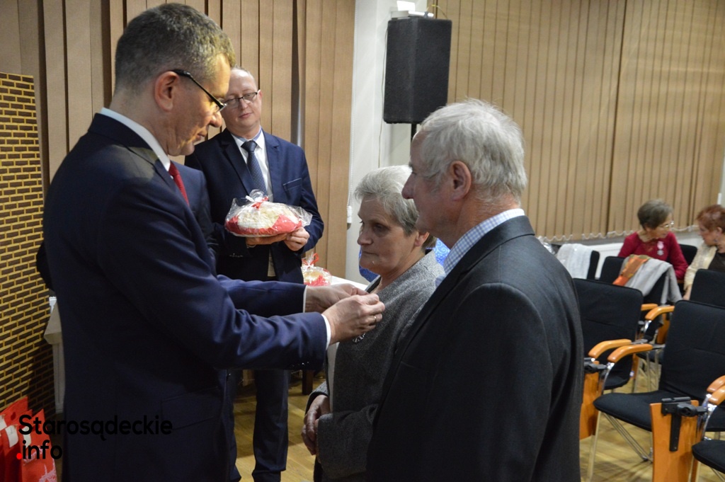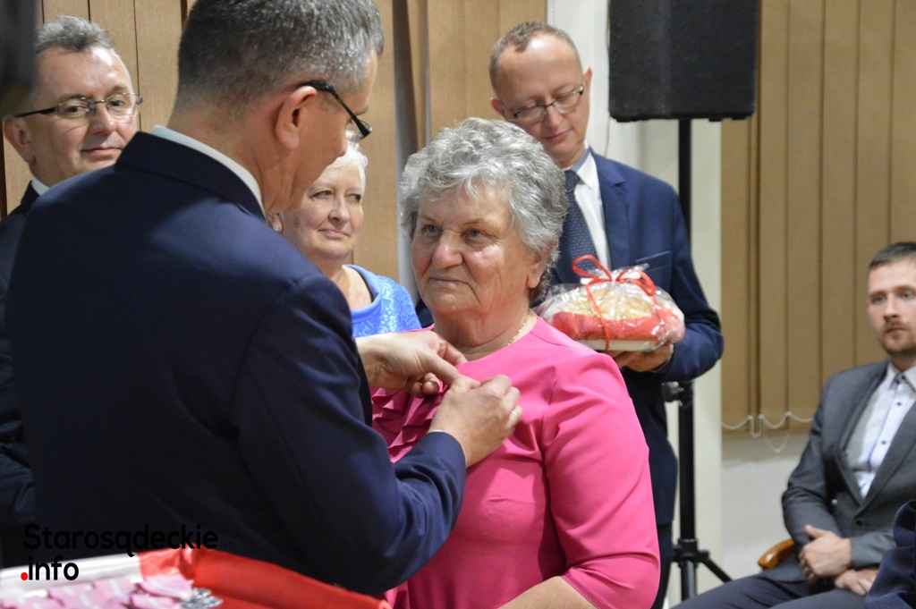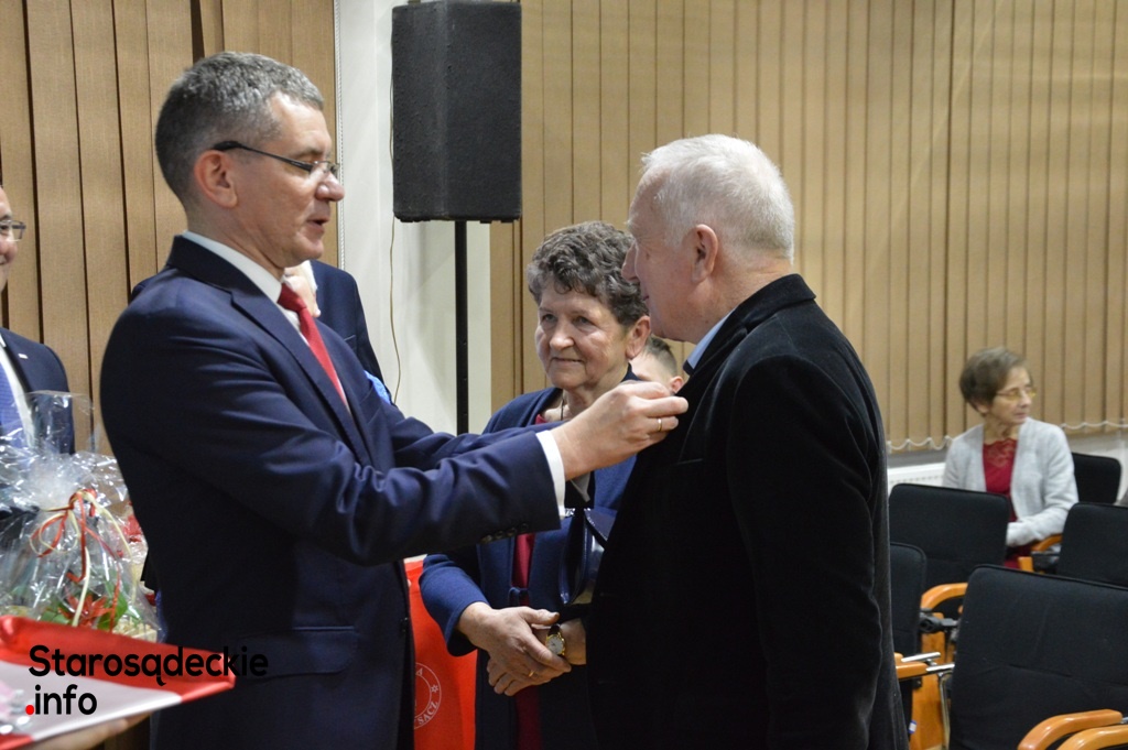 Medale Prezydenta Rzeczypospolitej Polskiej oraz kosze z upominkami wręczył burmistrz Jacek Lelek razem z przewodniczącą Rady Miejskiej Ewą Zielińską, wiceburmistrzem Kazimierzem Gizickim i sekretarzem Gminy Danielem Śmierciakiem.