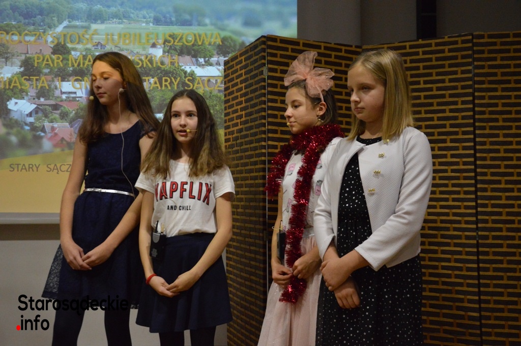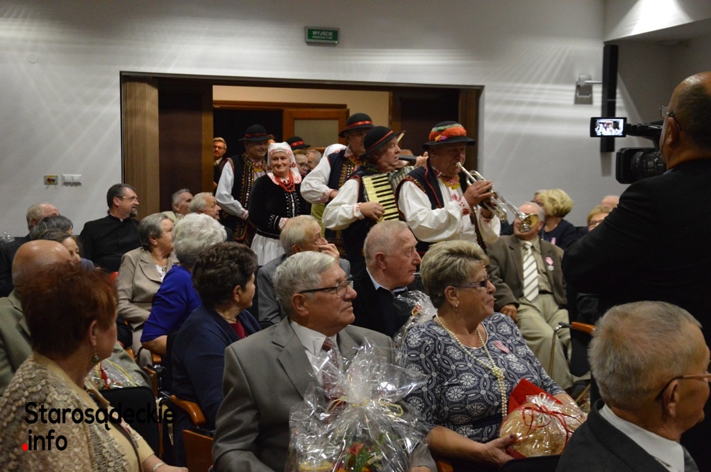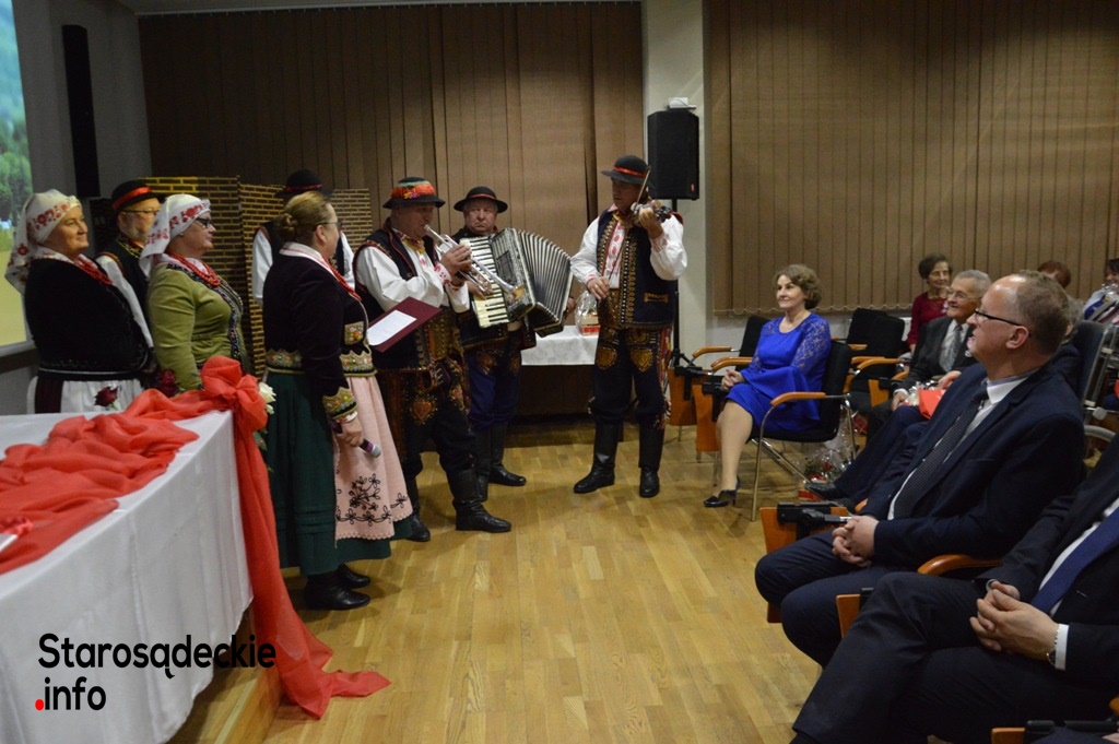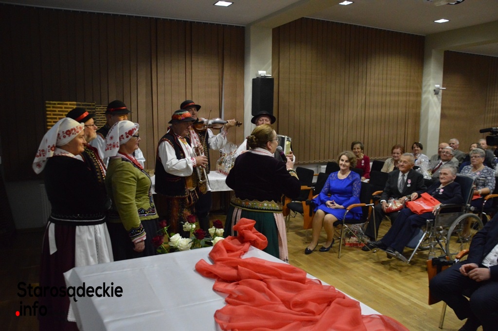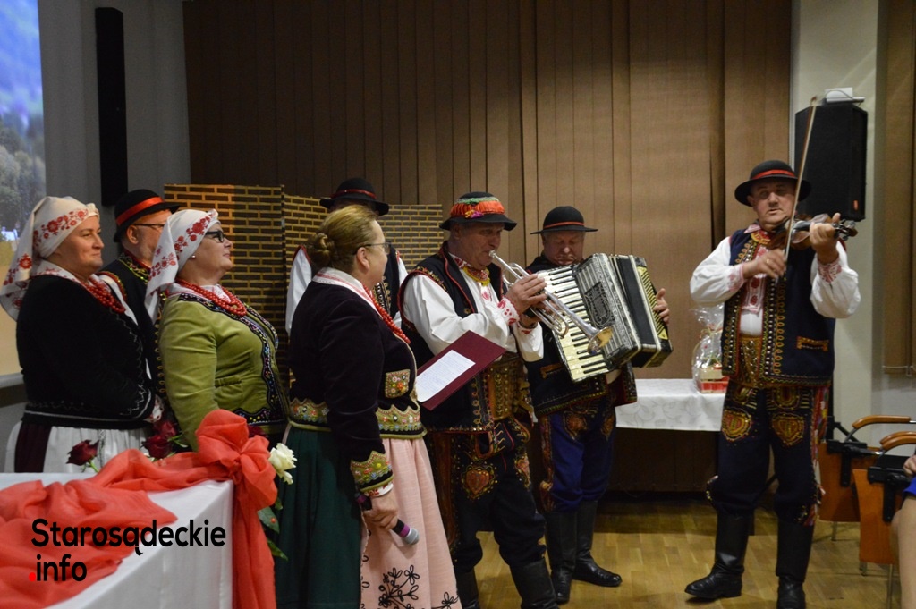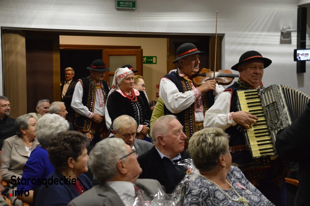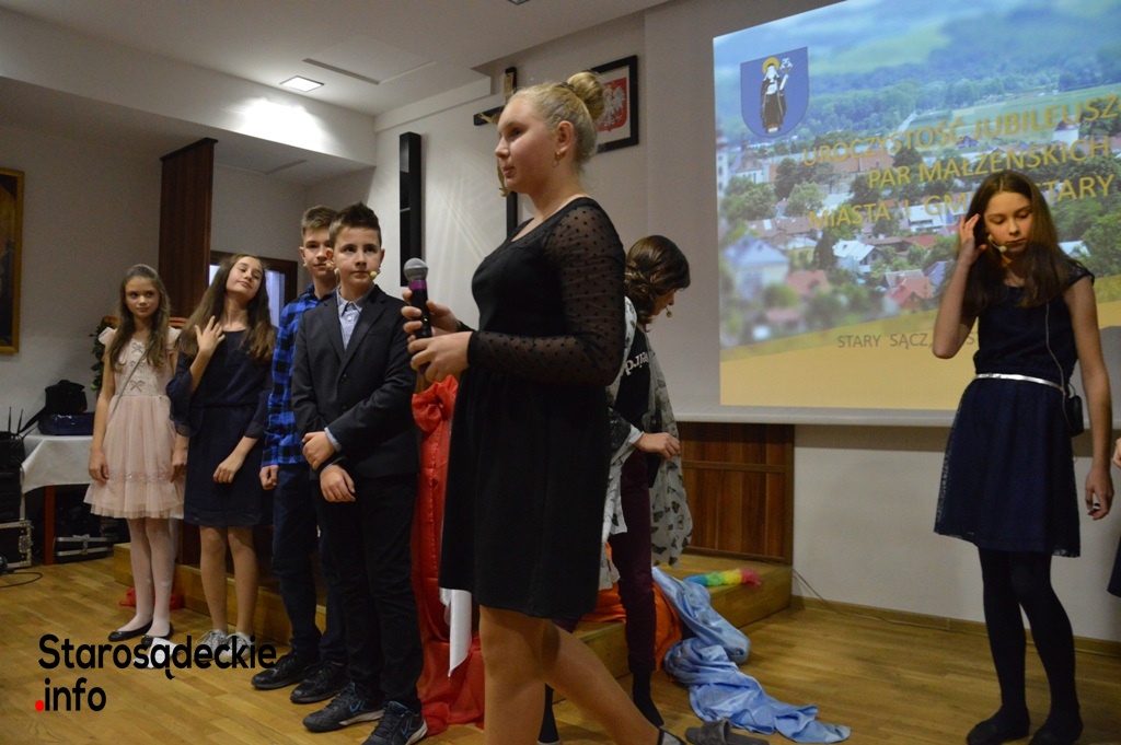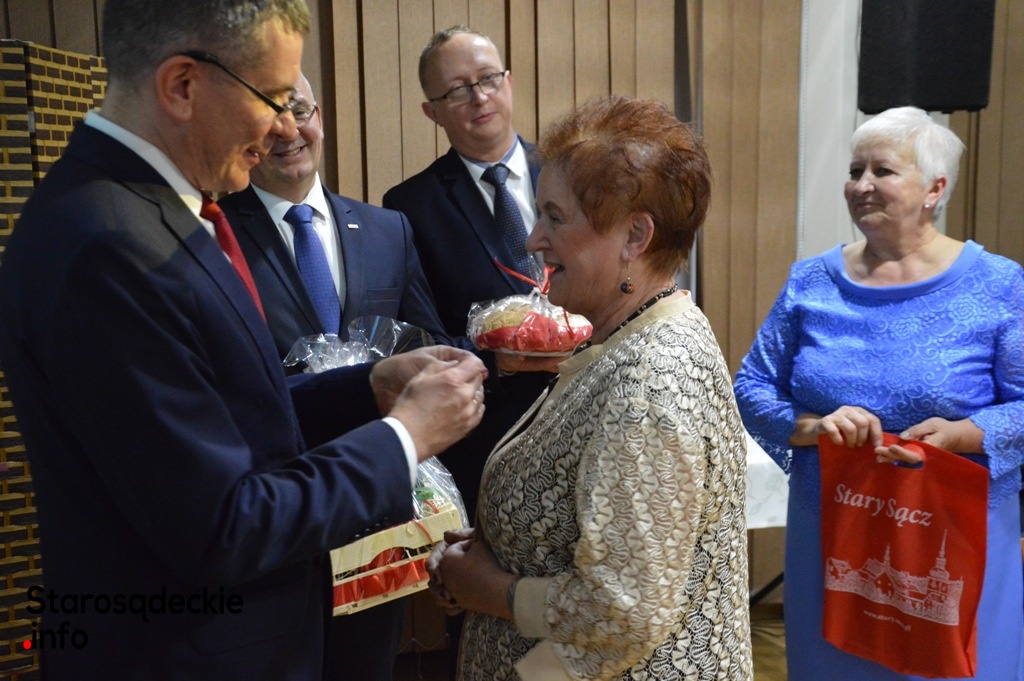 Uroczystość zakończył obiad i poczęstunek dla jubilatów i ich gości oraz wspólny śpiew z Zespołem Regionalnym Starosądeczanie. Dla czcigodnych Jubilatów wystąpiła grupa teatralna Szkoły Podstawowe nr 1 w Starym Sączu wraz z opiekunem Barbarą Trzop.