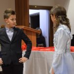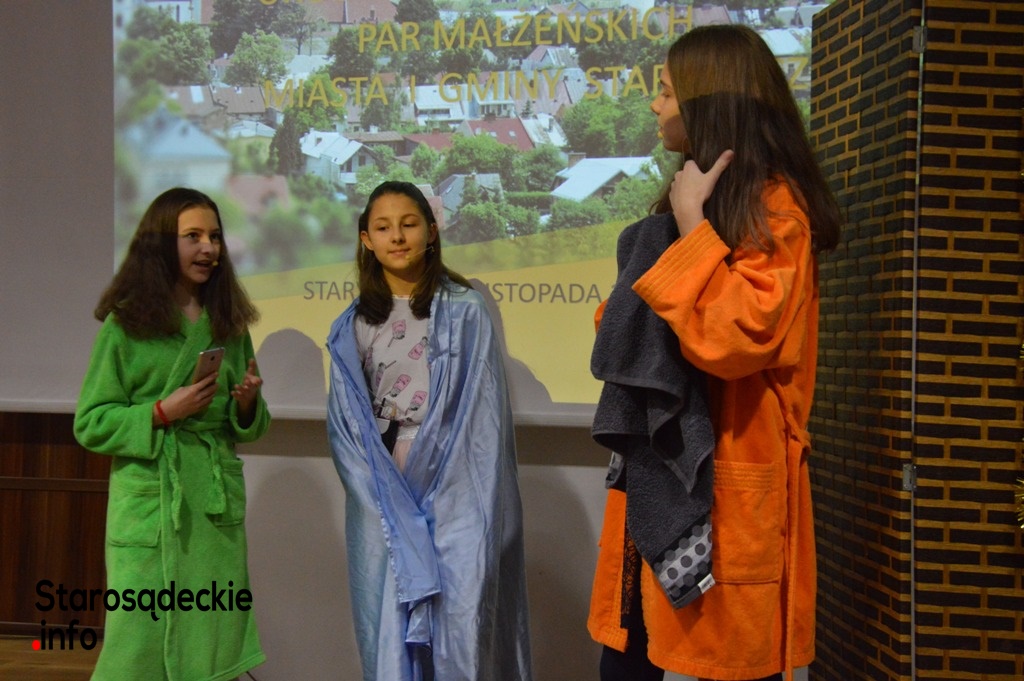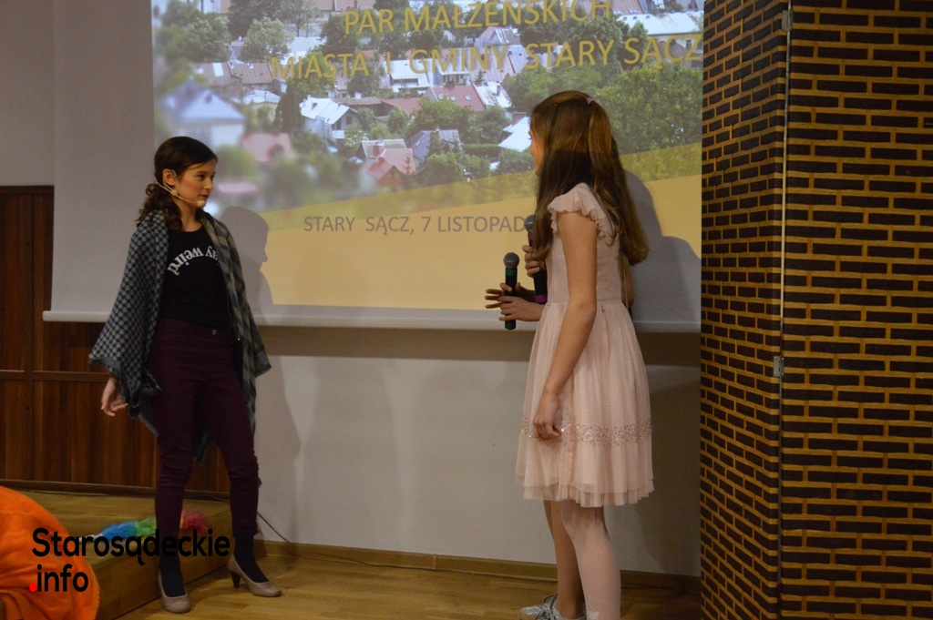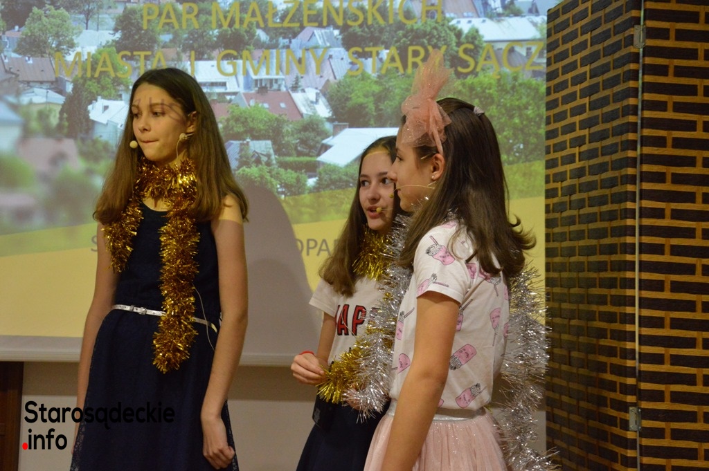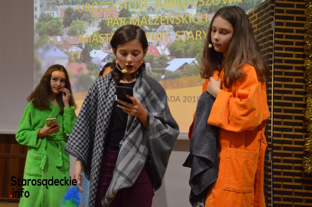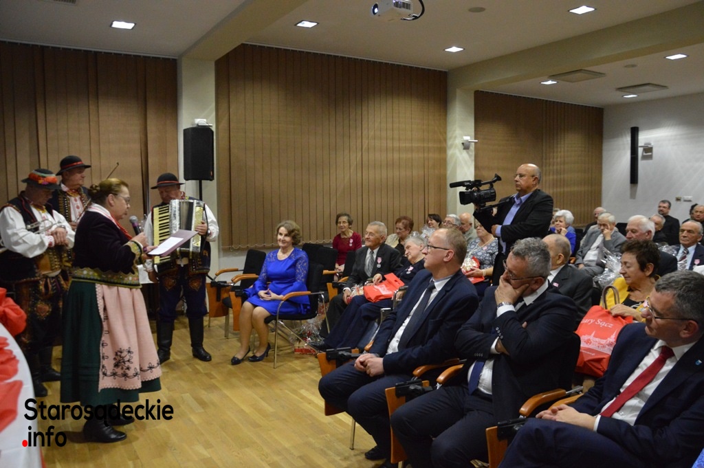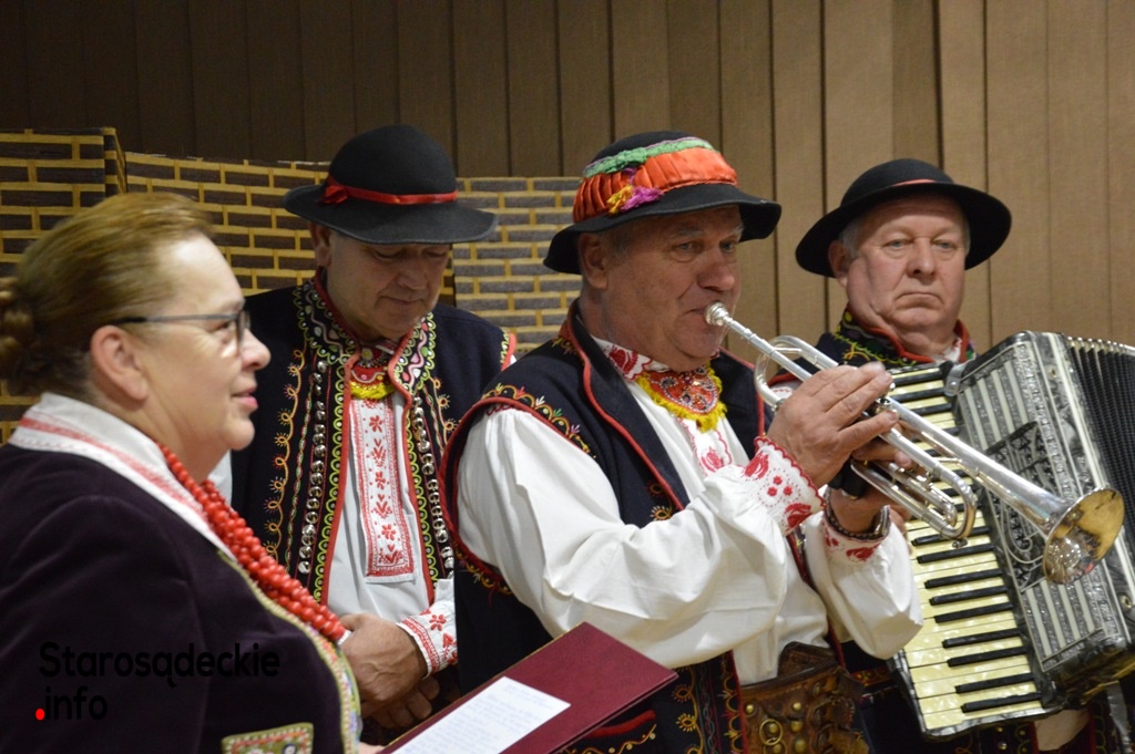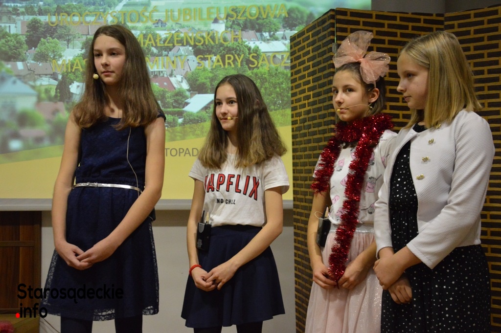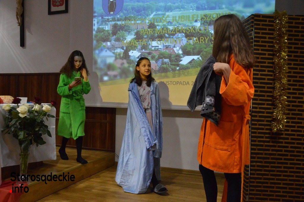 Uroczystość zakończył obiad i poczęstunek dla jubilatów i ich gości oraz wspólny śpiew z Zespołem Regionalnym Starosądeczanie. Dla czcigodnych Jubilatów wystąpiła grupa teatralna Szkoły Podstawowe nr 1 w Starym Sączu wraz z opiekunem Barbarą Trzop.