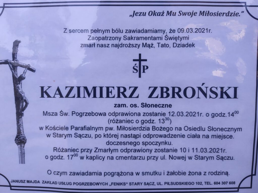 Pogrzeb śp. Kazimierza odbędzie się w piątek 12 marca o godzinie 14:00 w Kościele pw. Miłosierdzia Bożego na Osiedlu Słonecznym.
