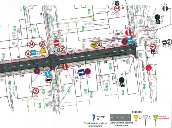 – zdemontowane zostaną i zamontowane nowe znaki drogowe (przy skrzyżowaniach z ul. Stefana Batorego oraz ul. Krakowską i ul. Czecha dodatkowo będą wykonane oznakowania poziome),