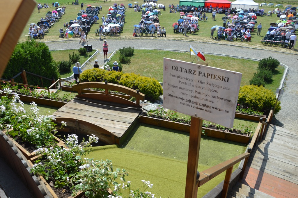 Wielkie poruszenie jakie wywołała wizyta Jana Pawła II w Starym Sączu,a także dokonanie kanonizacji bł Kingi przez samego papieża, tuż pod klasztorem, który stworzyła i w którym umarła, było zaczynem do kilku interesujących inicjatyw. Pierwszą z nich była decyzja o pozostawieniu na stałe pięknego, drewnianego ołtarza polowego, wybudowanego specjalnie z okazji przybycia papieża. Ołtarz ten, autorstwa Zenona Andrzeja Remi, architekta mieszkającego w Zakopanem, ale pochodzącego ze znanej, nowosądeckiej rodziny Remi nawiązuje do góralskiej architektury pasterskiej. Dzisiaj wszystkie drogi prowadziły, do Starego Sącza gdzie Mszy św -upamiętniającej to historyczne wydarzenie -przewodniczył biskup tarnowski Andrzej Jeż.
