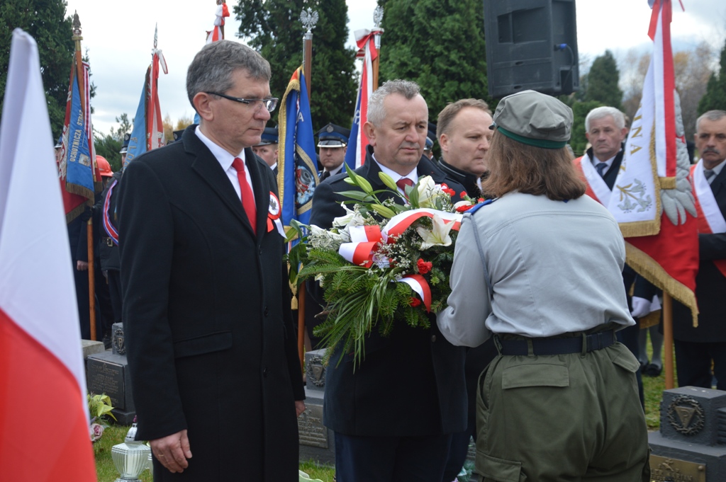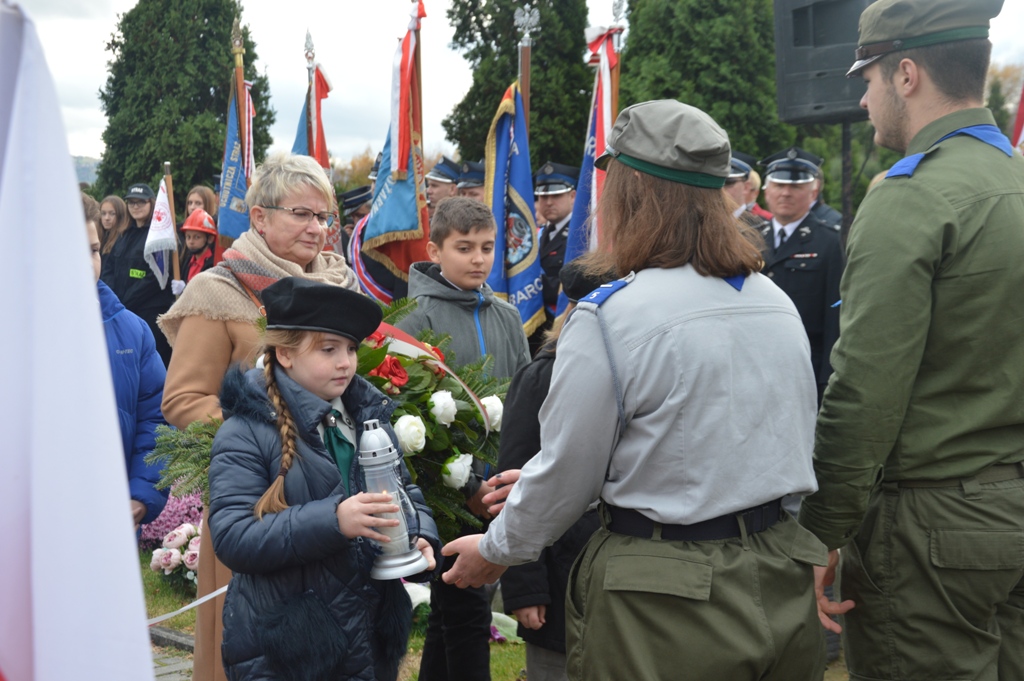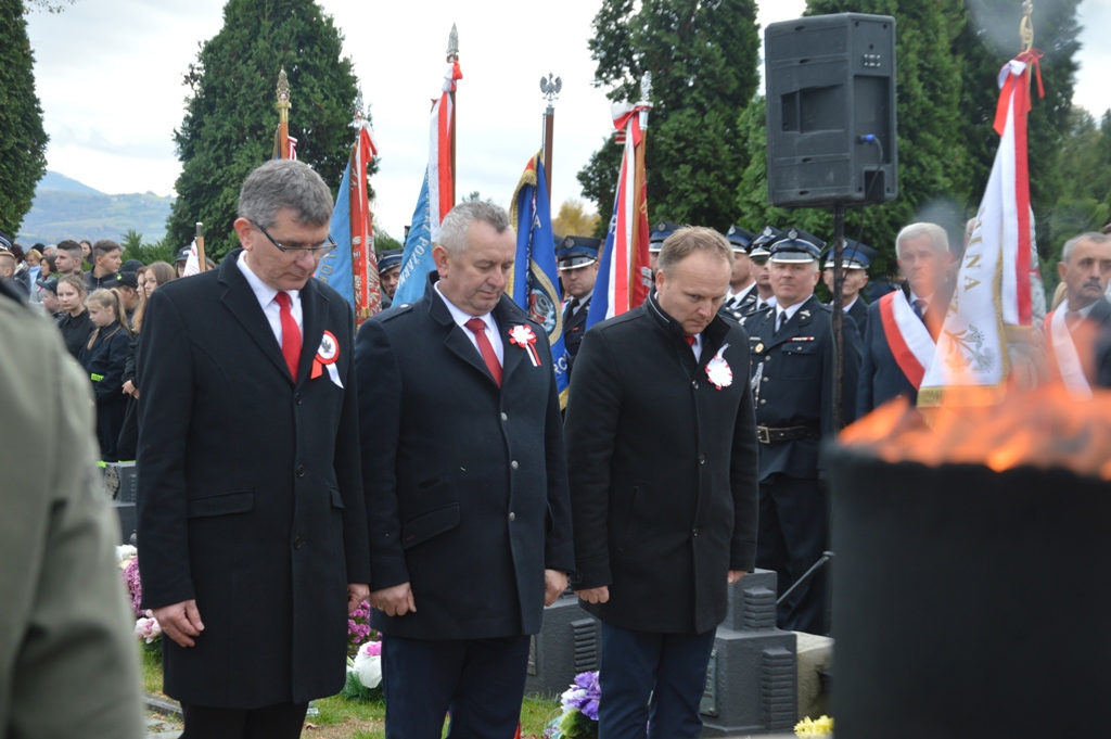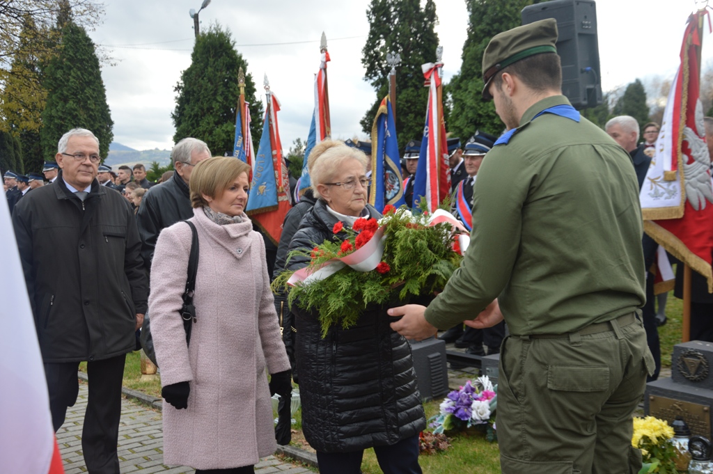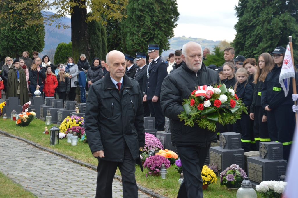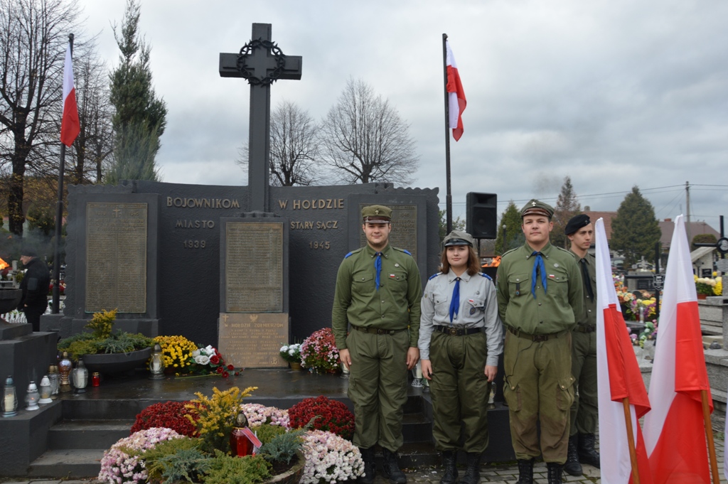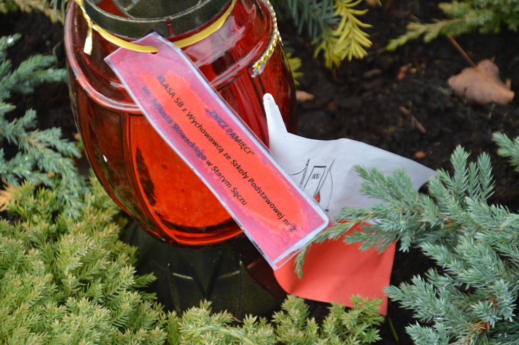 Pod obeliskami na nowym cmentarzu wieńce i wiązanki kwiatów złożyli: Burmistrz Jacek Lelek , zastępca Kazimierz Gizicki i wiceprzewodniczący Rady Miejskiej Sławomir Szczepaniak a także delegacje:Karpacki Oddział Straży Granicznej, Zarząd Związku Ochotniczych Straży Pożarnych w Starym Sączu, Stowarzyszenie na Rzecz Osób Niepełnosprawnych Gniazdo, Powiatowa i Miejsko-Gminna Biblioteka Publiczna w Starym Saczum, Zarząd Miejsko-Gminnego PSL, Ochotnicze Hufce Pracy Oddział Stary Sącz, Liceum Ogólnokształcące im. Marii Skłodowskiej-Curie w Starym Sączu, Zespół Szkół Ponadgimnazjalnych im ks prof Józefa Tischnera w Starym Sączu, Szkoła Podstawowa nr 1 im. ks prof. Józefa Tischnera w Starym Sączu i harcerze, Szkoła Podstawowa nr 2 im. Juliusza Słowackiego w Starym Sączu, Niepubliczna Szkoła Podstawowa w Starym Sączu, Szkoła Podstawowa im. Franciszka Świebockiego w Barcicach, Szkoła Podstawowa im. św Kingi w Popowicach, Szkoła Podstawowa im. I Pułku Strzelców Podhalańskich Armii Krajowej w Gaboniu, Fundacja Będzie Dobrze, Towarzystwo Miłośników Starego Sącza, Uniwersytet Trzeciego Wieku w Starym Sączu.