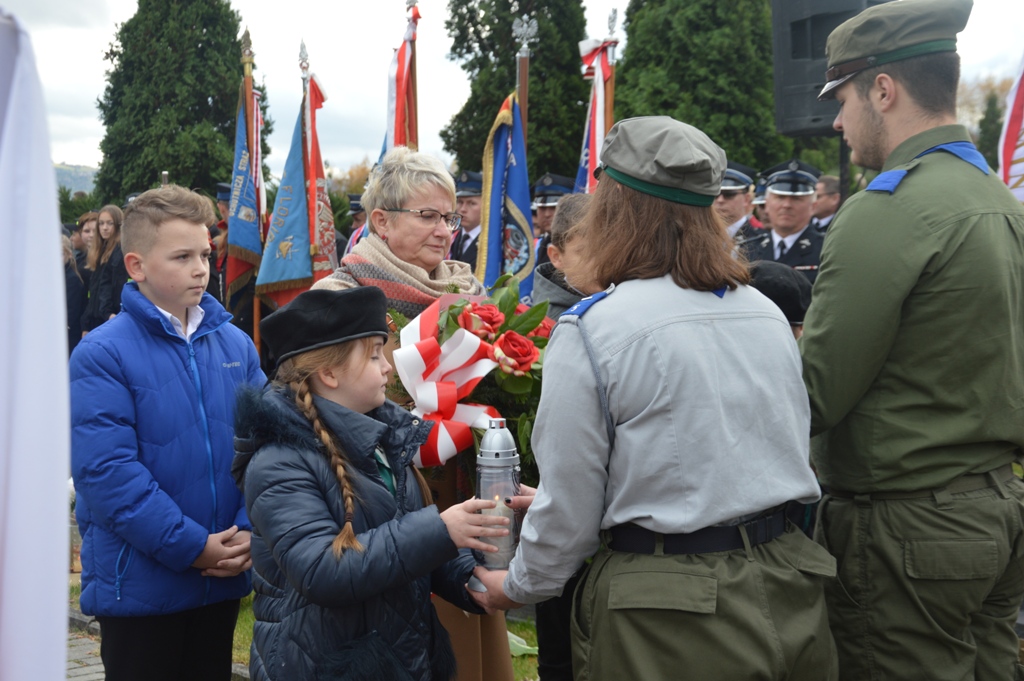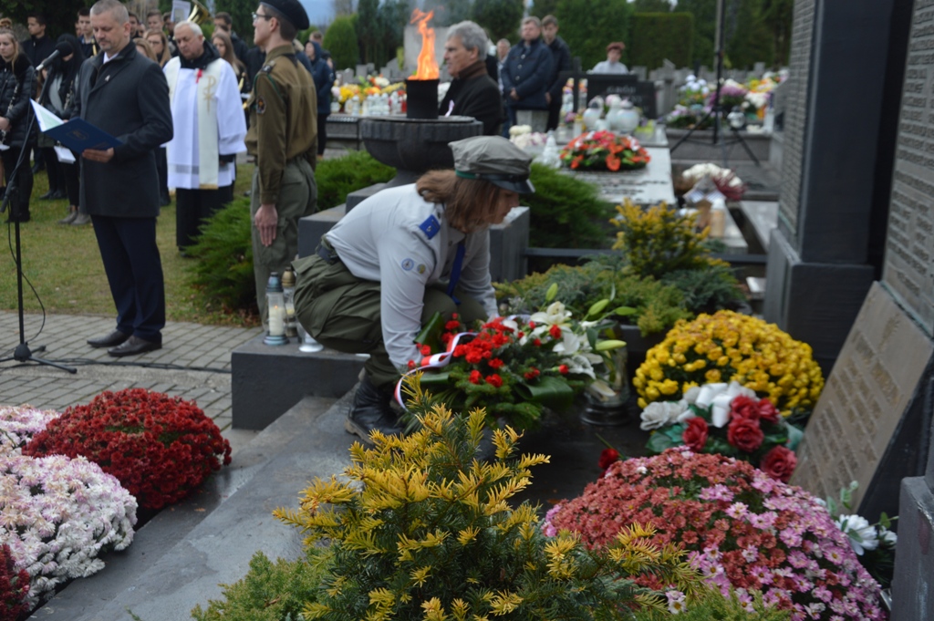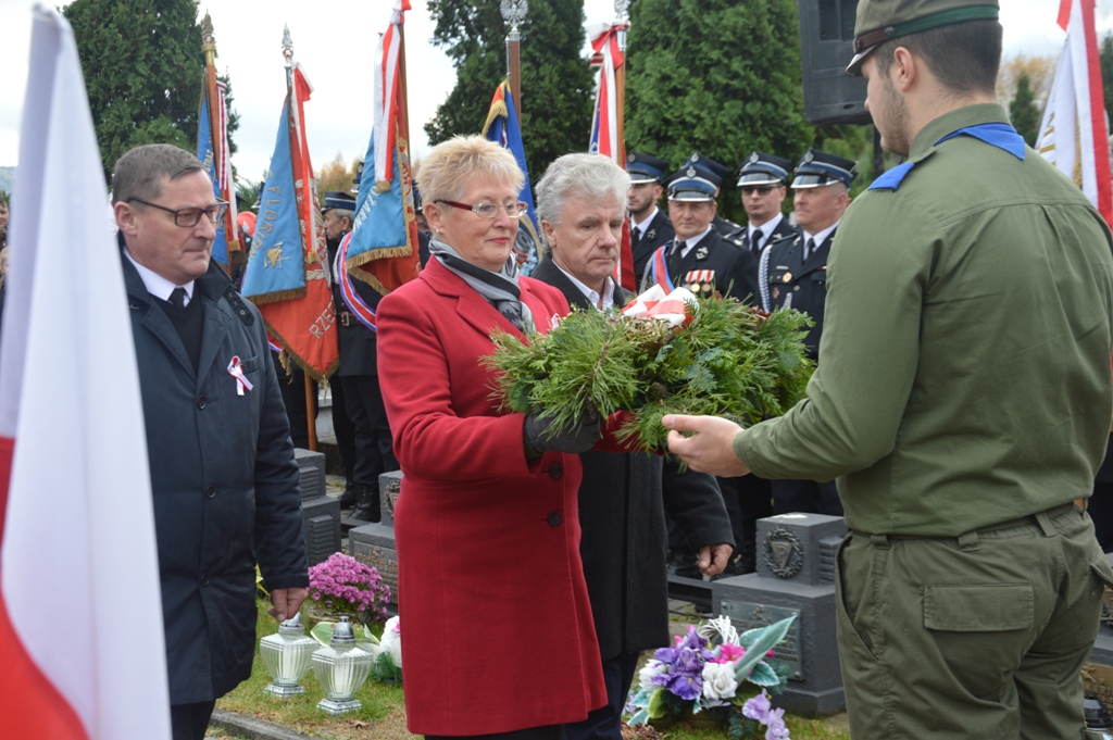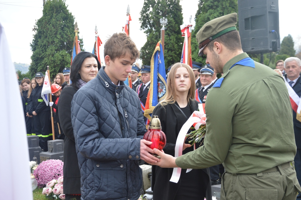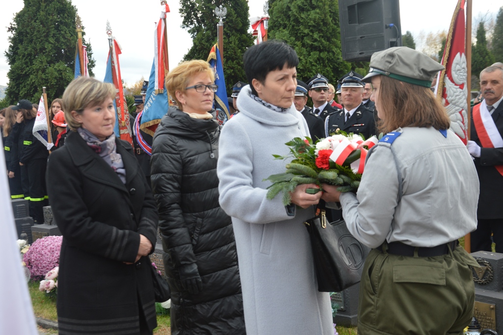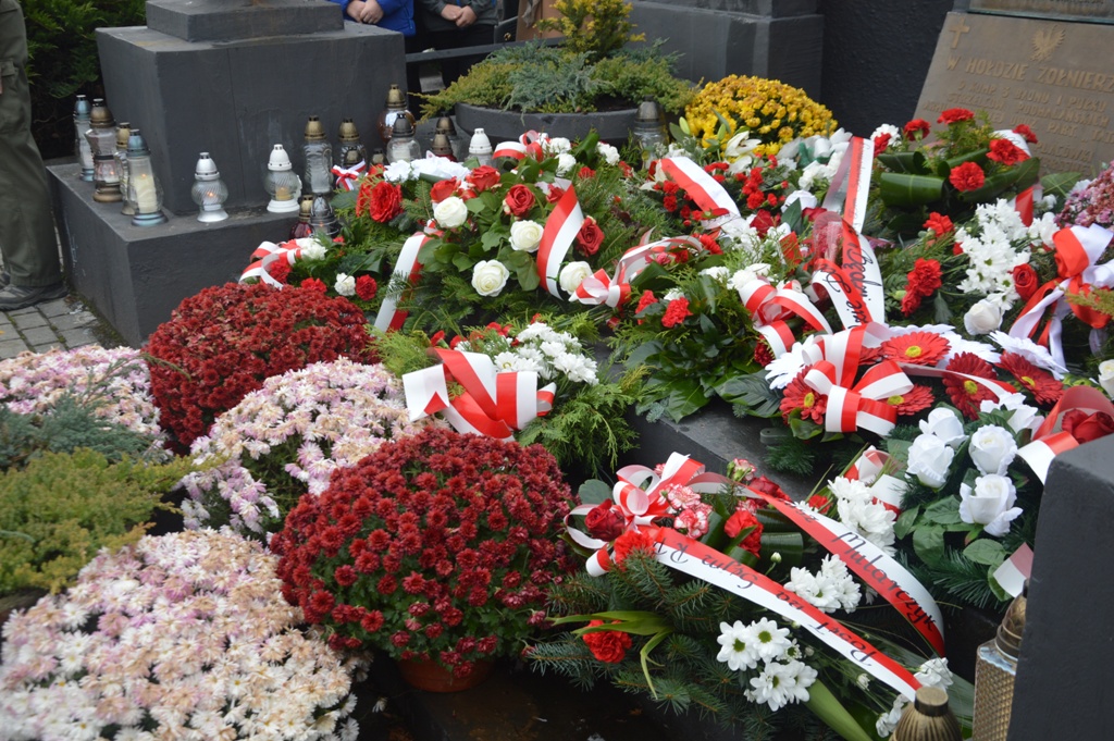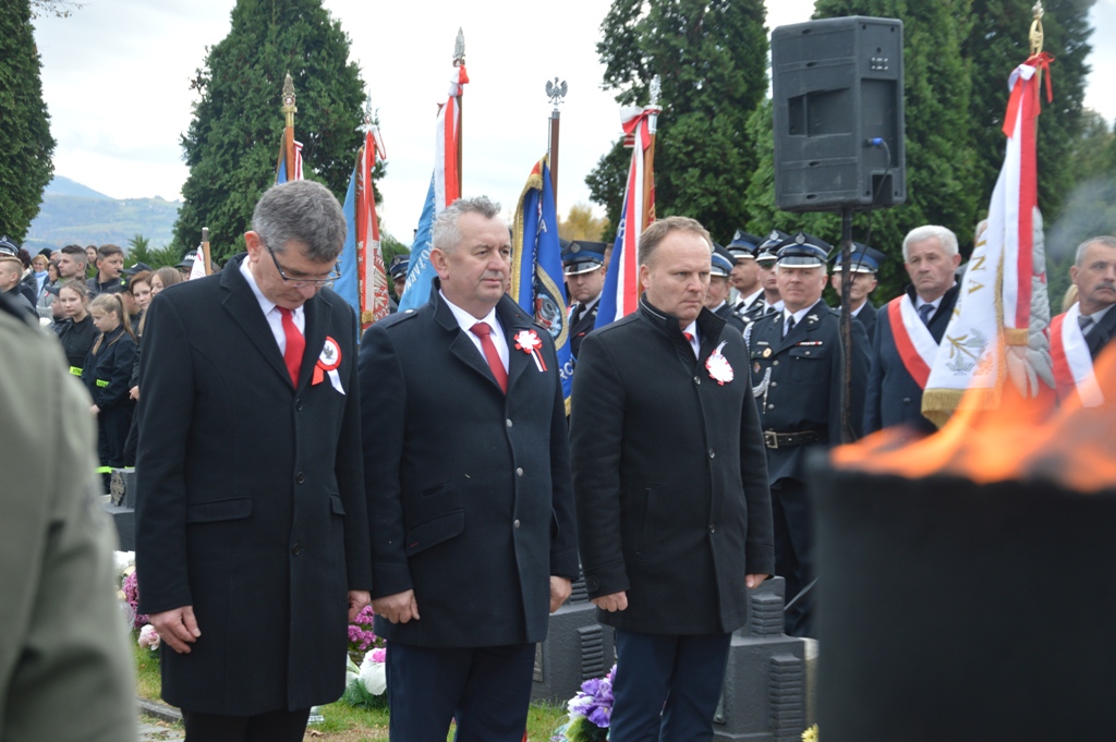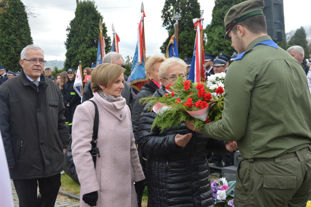 Pod obeliskami na nowym cmentarzu wieńce i wiązanki kwiatów złożyli: Burmistrz Jacek Lelek , zastępca Kazimierz Gizicki i wiceprzewodniczący Rady Miejskiej Sławomir Szczepaniak a także delegacje:Karpacki Oddział Straży Granicznej, Zarząd Związku Ochotniczych Straży Pożarnych w Starym Sączu, Stowarzyszenie na Rzecz Osób Niepełnosprawnych Gniazdo, Powiatowa i Miejsko-Gminna Biblioteka Publiczna w Starym Saczum, Zarząd Miejsko-Gminnego PSL, Ochotnicze Hufce Pracy Oddział Stary Sącz, Liceum Ogólnokształcące im. Marii Skłodowskiej-Curie w Starym Sączu, Zespół Szkół Ponadgimnazjalnych im ks prof Józefa Tischnera w Starym Sączu, Szkoła Podstawowa nr 1 im. ks prof. Józefa Tischnera w Starym Sączu i harcerze, Szkoła Podstawowa nr 2 im. Juliusza Słowackiego w Starym Sączu, Niepubliczna Szkoła Podstawowa w Starym Sączu, Szkoła Podstawowa im. Franciszka Świebockiego w Barcicach, Szkoła Podstawowa im. św Kingi w Popowicach, Szkoła Podstawowa im. I Pułku Strzelców Podhalańskich Armii Krajowej w Gaboniu, Fundacja Będzie Dobrze, Towarzystwo Miłośników Starego Sącza, Uniwersytet Trzeciego Wieku w Starym Sączu.