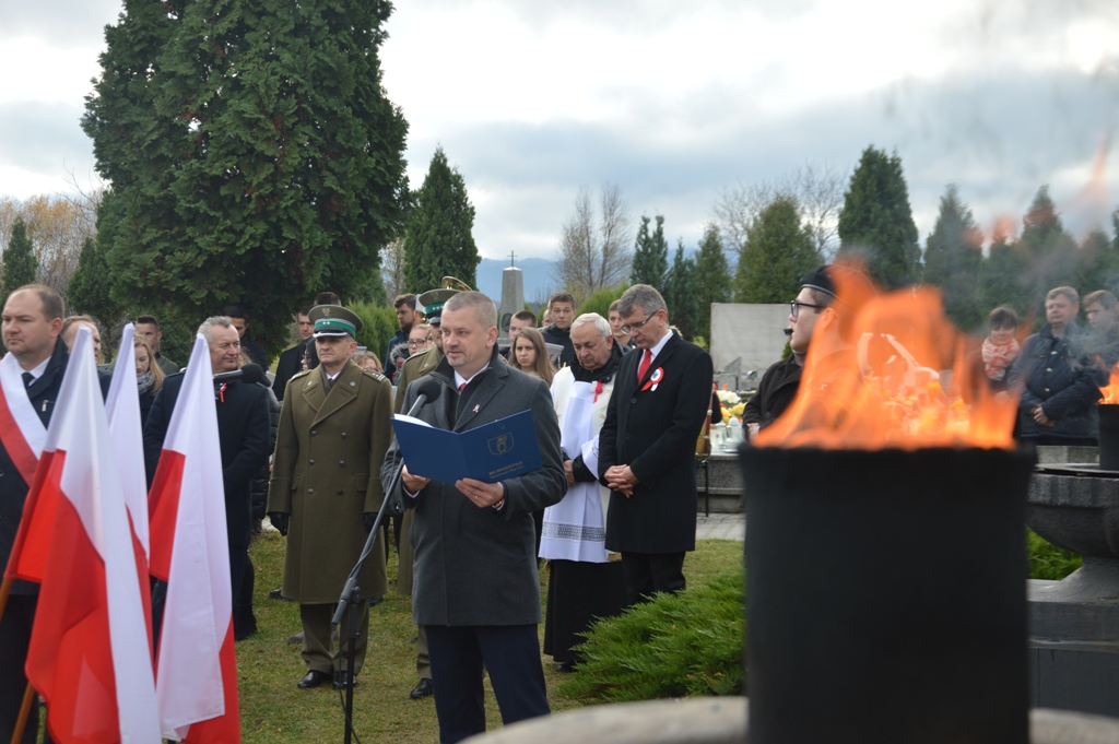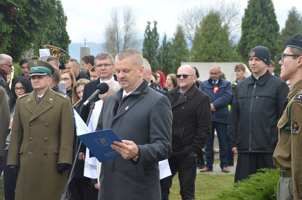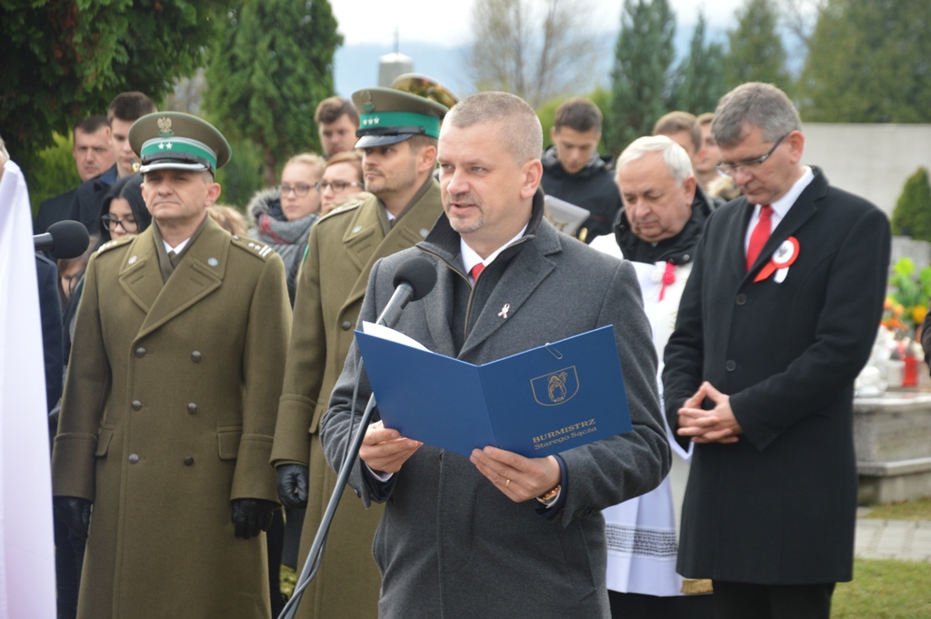-Ojczyzna jest wielką wartością, dla której warto poświęcić życie, cierpieć -chociaż jest to niezwykle trudne i dla której warto pracować –mówił na cmentarzu burmistrz Jacek Lelek –Dzisiaj zgromadziliśmy się na starosądeckim cmentarzu, żeby oddać hołd tym którzy oddali za nią życie. Jesteśmy po to aby z ich ofiary i życia czerpać siłę do naszej codziennej pracy dla Ojczyzny. Niezwykle ważne jest, abyśmy wszyscy razem służyli naszej Ojczyźnie. (…) Życzmy sobie abyśmy mieli tą mądrość, rozwagę, serce, szczodrą miłość, zaangażowanie i gest, żeby dla naszej Ojczyzny tego nie szczędzić. Niech Bóg błogosławi wolnej Polce.