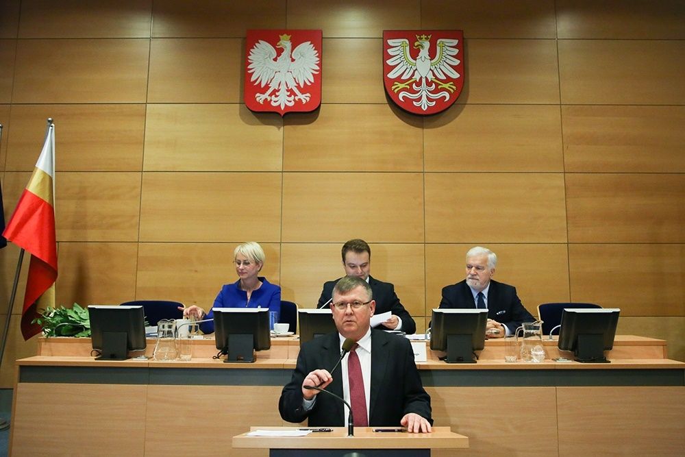 Pierwsza sesja rozpoczęła się minutą ciszy – 17 listopada 2018 r. po ciężkiej chorobie zmarł bowiem dr Andrzej Bulzak, wieloletni samorządowiec i radny województwa w latach 2010-2014.