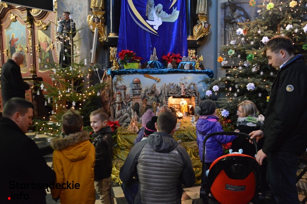 Tradycja budowania szopek bożonarodzeniowych pochodzi z czasów św. Franciszka z Asyżu, kiedy to po raz pierwszy we Włoszech urządzono stajenkę betlejemską z postaciami biblijnymi. Dzisiaj szopki są nieodzownym elementem obchodów bożonarodzeniowych i wystawia się je w katolickich świątyniach na całym świecie. Poniżej prezentujemy zdjęcia szopek znajdujących się w starosądeckich kościołach. Oprócz Świętej Rodziny w każdej z nich znajdują się zwierzątka, m. in. wół, osiołek czy baranek. Z postaci biblijnych można zauważyć również Trzech Królów i pasterzy, i aniołów.