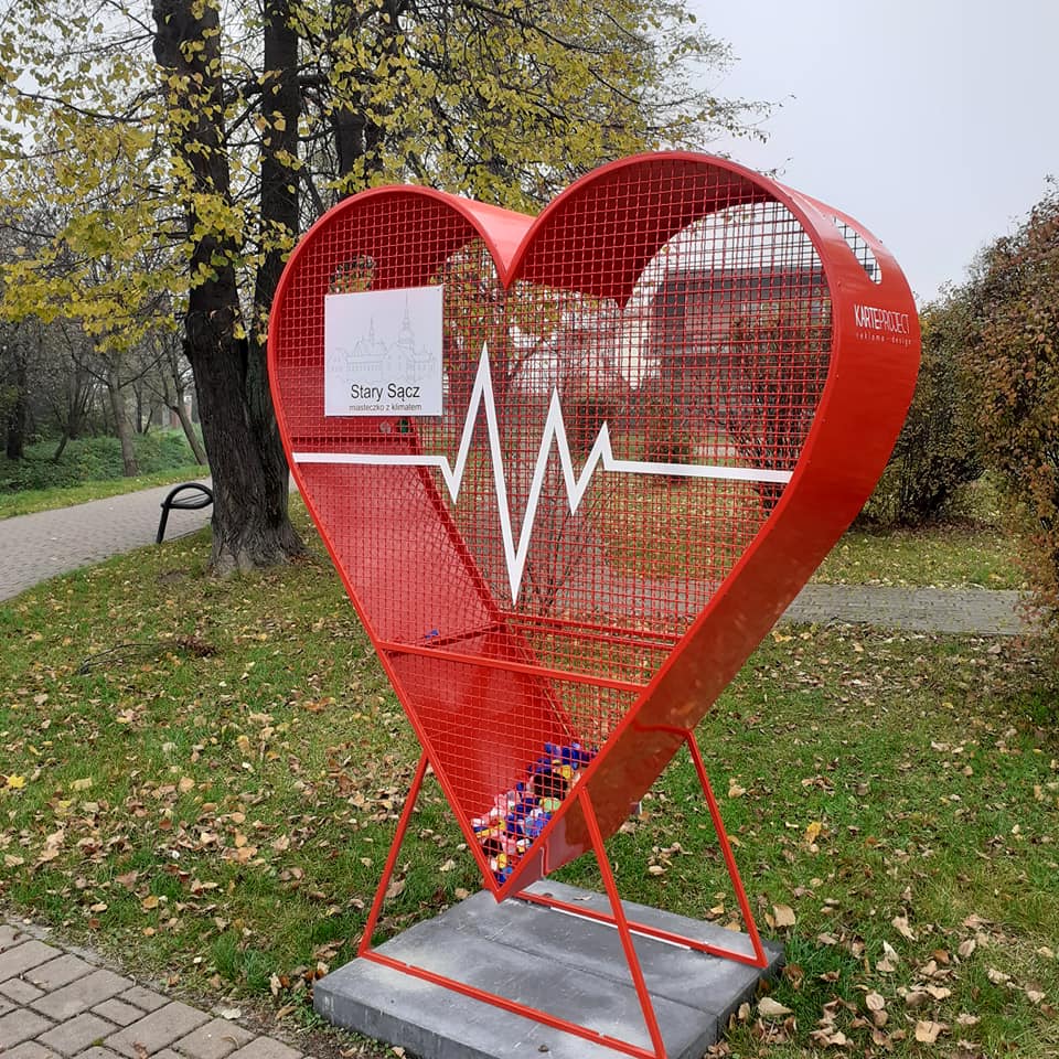 Tuż przy Placu Teresy Nowinskiej-Plata w Starym Sączu obok Osiedla Słonecznego pojawił się dzisiaj czerwony pojemnik w kształcie serca. Będzie on służył do zbierania plastikowych nakrętek, które następnie przekazywane będą osobom potrzebującym. To inicjatywa Urzędu Miejskiego w Starym Sączu.