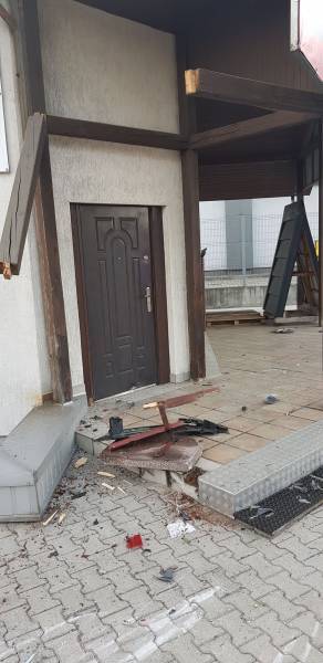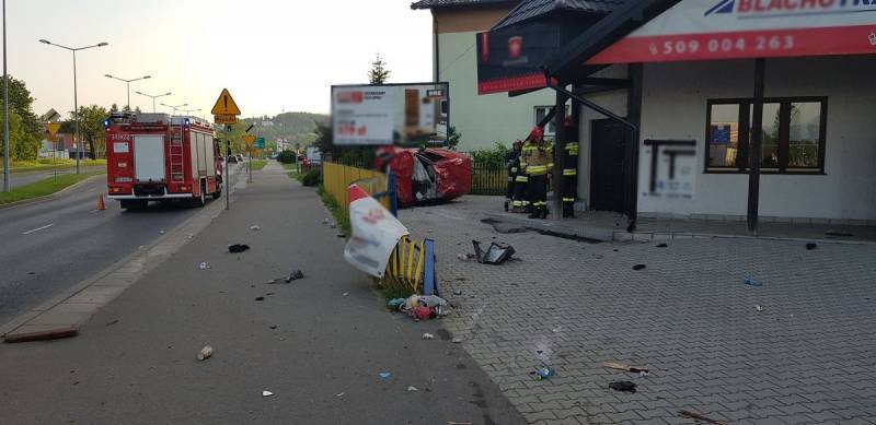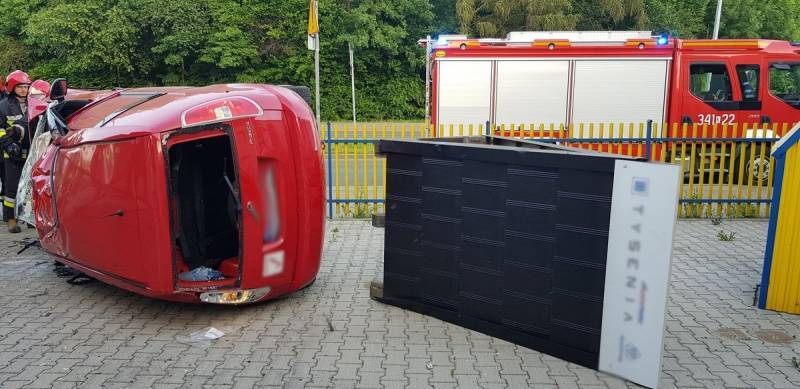 – Po przybyciu na miejsce zdarzenia ustalono, że samochód osobowy marki Skoda wypadł z drogi i dachował na terenie firmy z materiałami budowlanymi –relacjonują strażacy –Pojazdem podróżował kierowca, który był pod opieką załogi karetki Pogotowia ratunkowego. W wyniku zdarzenia uszkodzone zostały m.in. elementy budynku firmy, ogrodzenie oraz wystawa reklamowa. Z pojazdu wyciekały płyny eksploatacyjne. Działania zastępów PSP polegały na zabezpieczeniu miejsca zdarzenia,postawieniu samochodu na koła w celu uniknięcia dalszego wycieku płynów eksploatacyjnych, odłączeniu klem od akumulatora, zakręceniu instalacji gazowej w pojeździe oraz sorpcji rozlanych płynów eksploatacyjnych. Osoba poszkodowana zabrana została do szpitala, na miejscu zdarzenia pozostał patrol Policji.