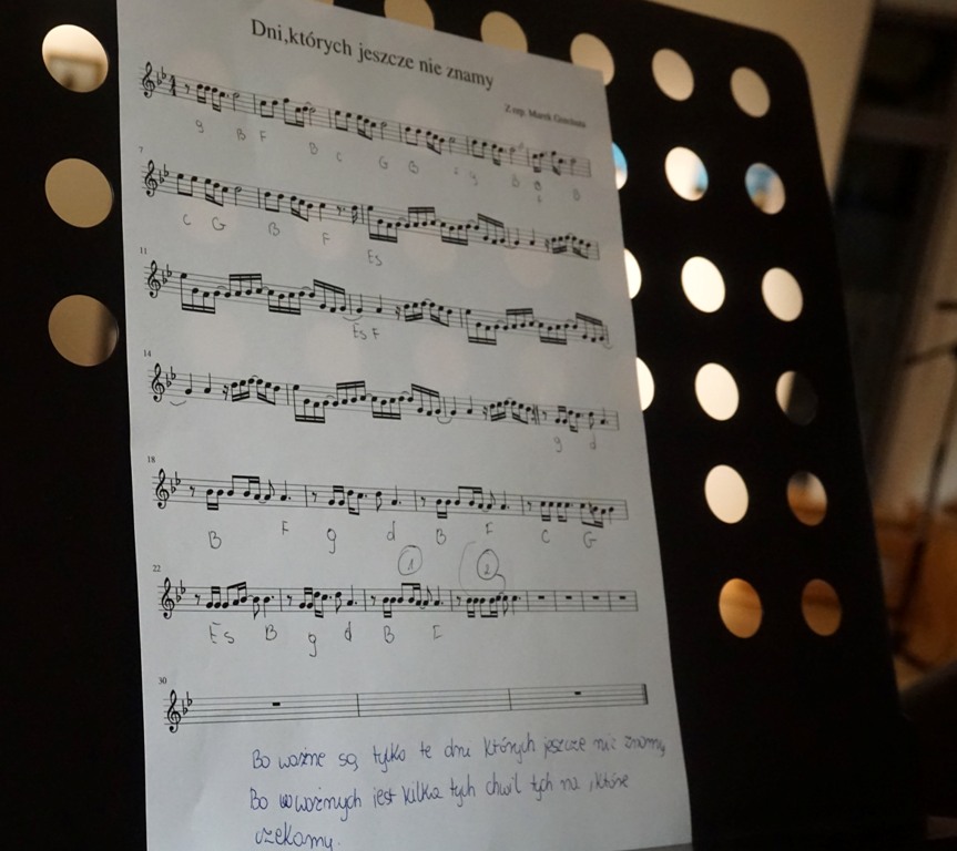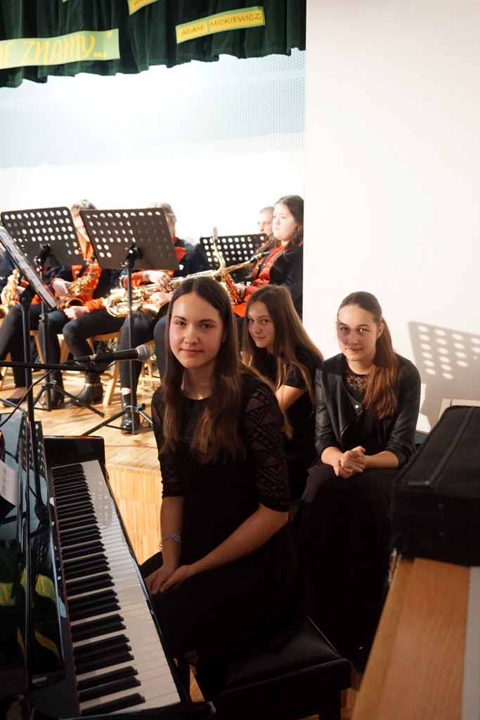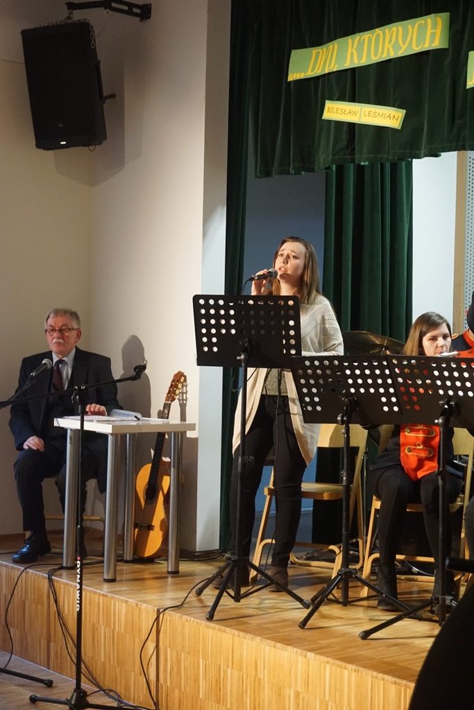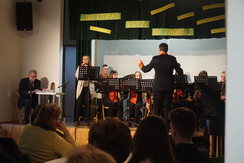 Na spotkaniu nie zabrakło też muzyki, śpiewu i tańca. Młodzieżowa Orkiestra Dęta z Barcic wykonała trzy utwory, które zachwyciły wszystkich obecnych. Pięknie zaprezentowali się uczniowie ze szkolnego koła bibliotecznego „Czyta się”. Utwór Marka Grechuty „Dni, których nie znamy” zagrały na fortepianie, flecie poprzecznym i skrzypcach oraz zaśpiewały trzy siostry Klimeckie: Kinga, Martyna i Gabrysia. Do muzyki zatańczyła Wiktoria Zięcina – szkolna primabalerina. Nie zabrakło też odwołań do współczesności. Nasze gimnazjalistki: Patrycja Golonka, Julita Janik, Joanna Godoń, Aleksandra Bodziony i Aleksandra Jodłowska wykonały taniec współczesny do utworu Rihanny „Birthday Cake”. Pan Włodzimierz Pustułka interesująco prowadził spotkanie i również prezentował własne fraszki.