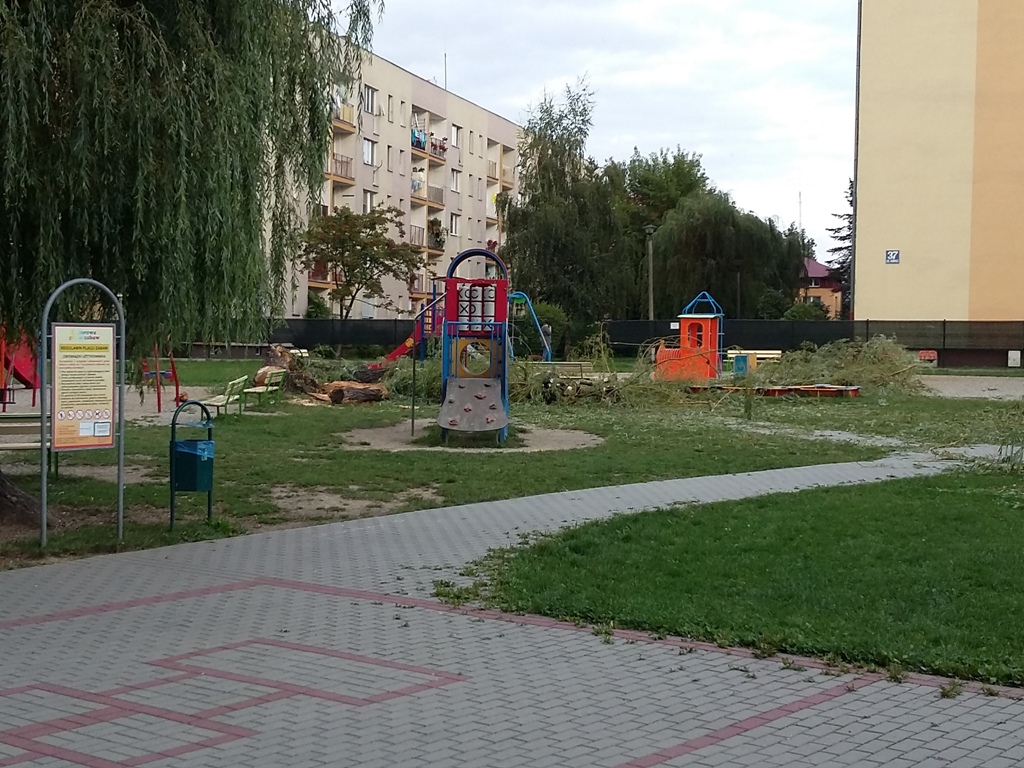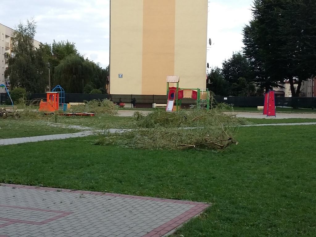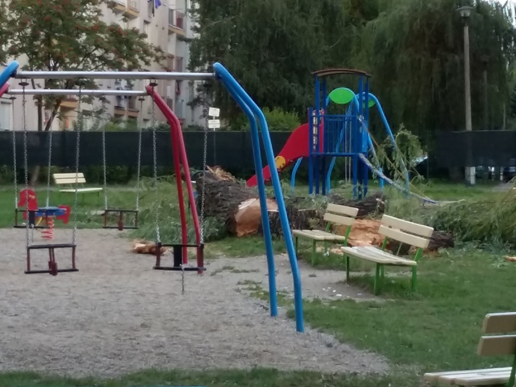 Potężne drzewo złamało się wpół i runęło na dzieci na jednym z placów zabaw na Osiedlu Millenium w Nowym Sączu. Ranna została 5-letnia dziewczynka, która została przygnieciona przez konary, oraz jej mama. Urządzenia do zabawy na placu zostały zniszczone.