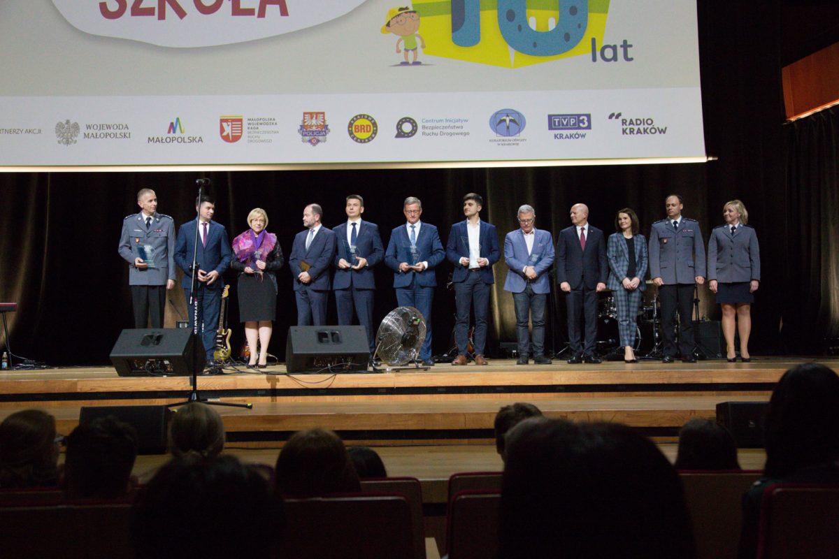 Nagrody wręczali zaproszeni goście: Pan Łukasz Smółka – Wicemarszałek Województwa Małopolskiego, Barbara Nowak – Małopolski Kurator Oświaty, Marek Dworak – Sekretarz Małopolskiej Wojewódzkiej Rady Bezpieczeństwa Ruchu Drogowego, Jacek Zalewski Prezes Krajowego Centrum Bezpieczeństwa Ruchu Drogowego, mł. insp. Jacek Górecki – Zastępca Komendanta Miejskiego Policji w Krakowie, mł. insp. Maciej Rymar – Naczelnik Wydziału Ruchu Drogowego KWP w Krakowie, mł. insp. Krzysztof Dymura – Naczelnik Wydziału Prewencji KWP w Krakowie, podinsp. Ewa Dębowska – przedstawicielka Biura Ruchu Drogowego KGP, podinsp. Robert Michalik – Zastępca Naczelnika Wydziału Ruchu Drogowego KWP w Krakowie, Andrzej Witek – Zastępca Dyrektora Małopolskiego Ośrodka Ruchu Drogowego w Nowym Sączu, Sławomir Turek – Zastępca Dyrektora Małopolskiego Ośrodka Ruchu Drogowego w Tarnowie, Artur Czernecki – Zastępca Dyrektora Małopolskiego Ośrodka Ruchu Drogowego w Nowym Sączu, Wanda Brześcińska – Dyrektor Wydziału organizacyjnego Kuratorium Oświaty w Krakowie, Dorota Skwarek – Dyrektor Wydziału Nadzoru Pedagogicznego Małopolskiego Kuratorium Oświaty, Łukasz Kmita – Dyrektor Departamentu Generalnego Urzędu Marszałkowskiego Województwa Małopolskiego, Michał Pierzchała – Zastępca Departamentu Infrastruktury Drogowej i Transportu Urzędu Marszałkowskiego Województwa Małopolskiego, Marcin Koczyba – Redaktor Radia Kraków, Jarosław Wilczak – Kierownik Wydziału Marketingu, Reklamy i Promocji TVP Oddział w Krakowie, Robert Gabryś – Prezes Powiatowego Parku Rozwoju w Wieliczce.