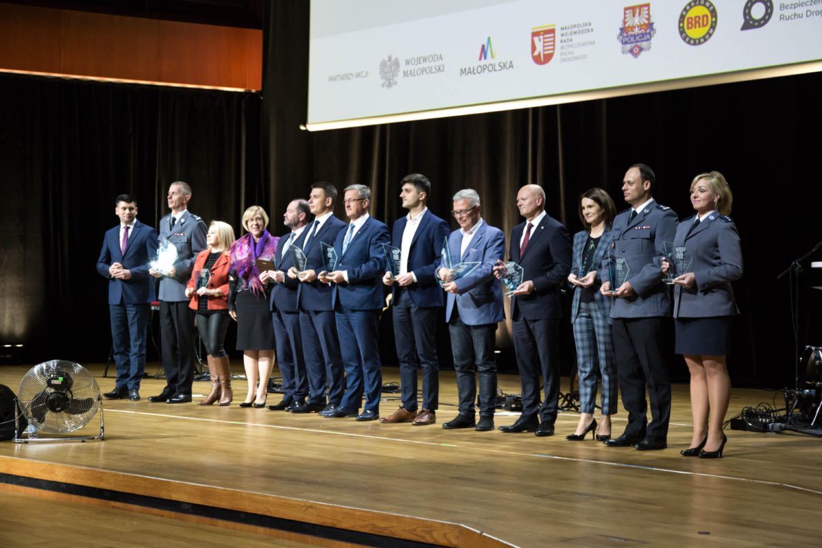 Komenda Wojewódzka Policji w Krakowie statuetkę odebrał mł. insp. Maciej Rymar – Naczelnik Wydziału Ruchu Drogowego KWP w Krakowie;