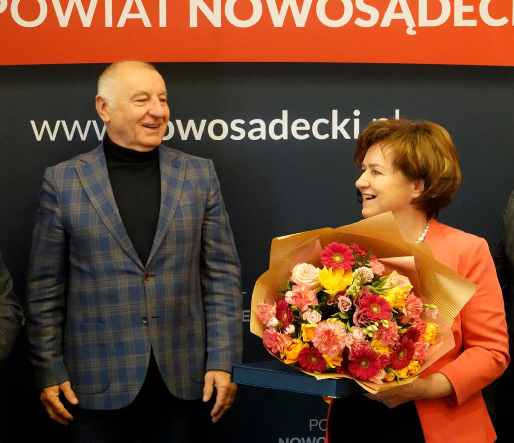 Starosta nowosądecki Marek Kwiatkowski podziękował za wieloletnią pracę Teresie Klimek – dyrektor Powiatowego Urzędu Pracy dla Powiatu Nowosądeckiego. Pani Teresa przepracowała w sumie 45 lat i podjęła decyzję o przejściu na emeryturę.