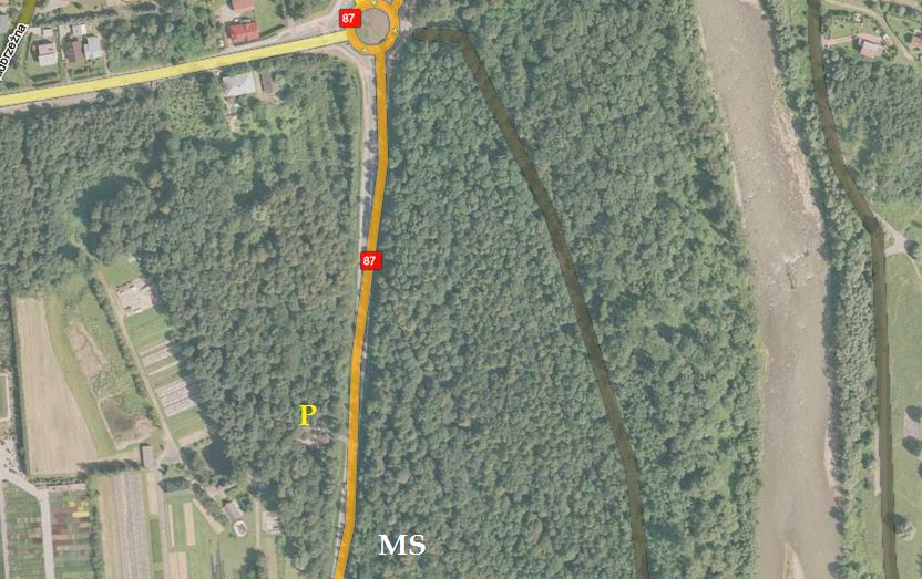 Mapka pokazuje, jak dotrzeć do pomniku, gdzie się spotkamy środę – droga od ronda w Starym Sączu, w stronę Piwnicznej. Po prawej stronie „P” – Parking, zaś po lewej „MS”-Miejsce Straceń – tutaj jest pomnik. Dlatego najlepiej zostawić auto na Parkingu, ostrożnie przejść na drugą stronę jezdni i wejść ścieżką do lasu.