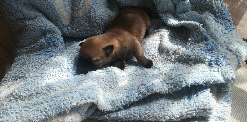 W czwartek, 1 marca około godziny 21.00, kobieta, która przechodziła obok jednego z bloków usłyszała jakieś popiskiwanie dobiegające z kontenera na śmieci. Gdy wraz z sąsiadem otworzyła pojemnik, wśród innych śmieci znalazła foliową reklamówkę, a w niej dwa foliowe worki. Jak się okazało, w jednym z nich był maleńki szczeniak. Natychmiast wzięła go pod opiekę do domu, a następnego dnia skontaktowała się z weterynarzem oraz sądeckim Towarzystwem Opieki nad Zwierzętami. Wspólnie znaleźli kobietę, która zgodziła się, by jej karmiąca suczka, została matką zastępczą szczenięcia.