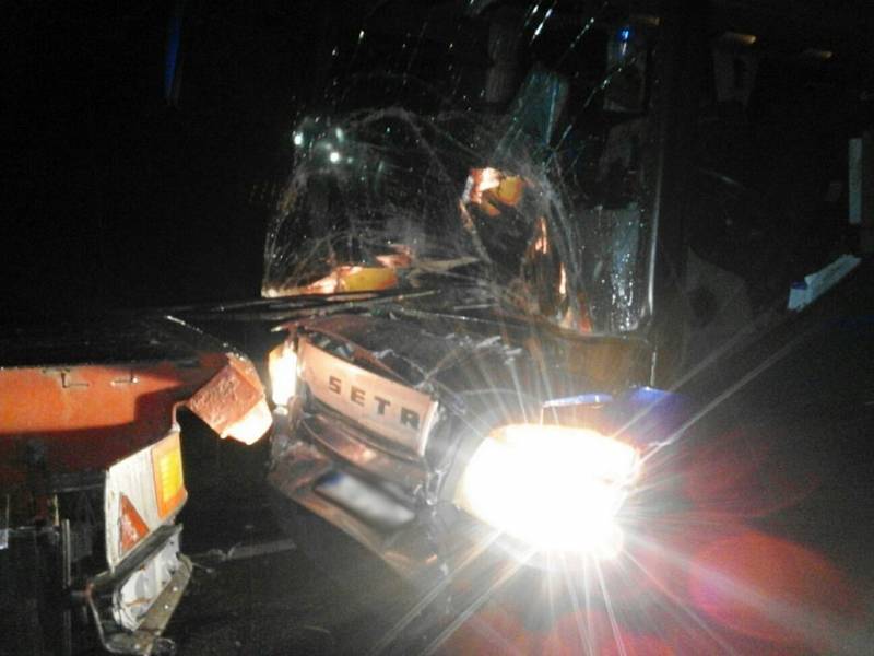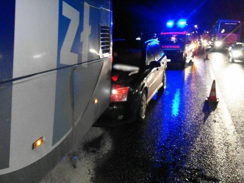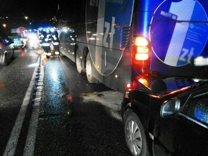–Prawdopodobnie doszło do awarii silnika samochodu ciężarowego MAN przewożącego drewno. Na jezdnie wylały się duże ilości oleju silnikowego -mówi rzecznik PSP Nowy Sącz –Samochód ten zatrzymał się na pasie jezdni po przejechaniu kilkudziesięciu metrów. Jadący autokar SETRA -z uwagi na śliską nawierzchnię drogi -uderzył w tył samochodu MAN. Następnie samochód osobowy Opel uderzył w tył autokaru.