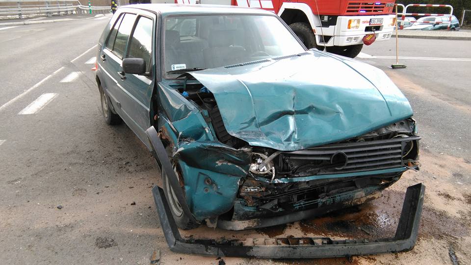 Na skrzyżowaniu drogi wojewódzkiej z drogą gminną doszło do czołowo-bocznego zderzenia dwóch samochodów osobowych marki  Daihatsu Feroza i Volkswagen Golf.