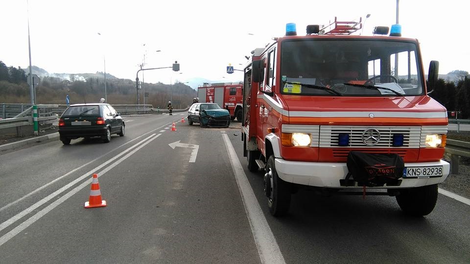 Kadcza. Stłuczka na drodze wojewódzkiej. 2 osoby w szpitalu