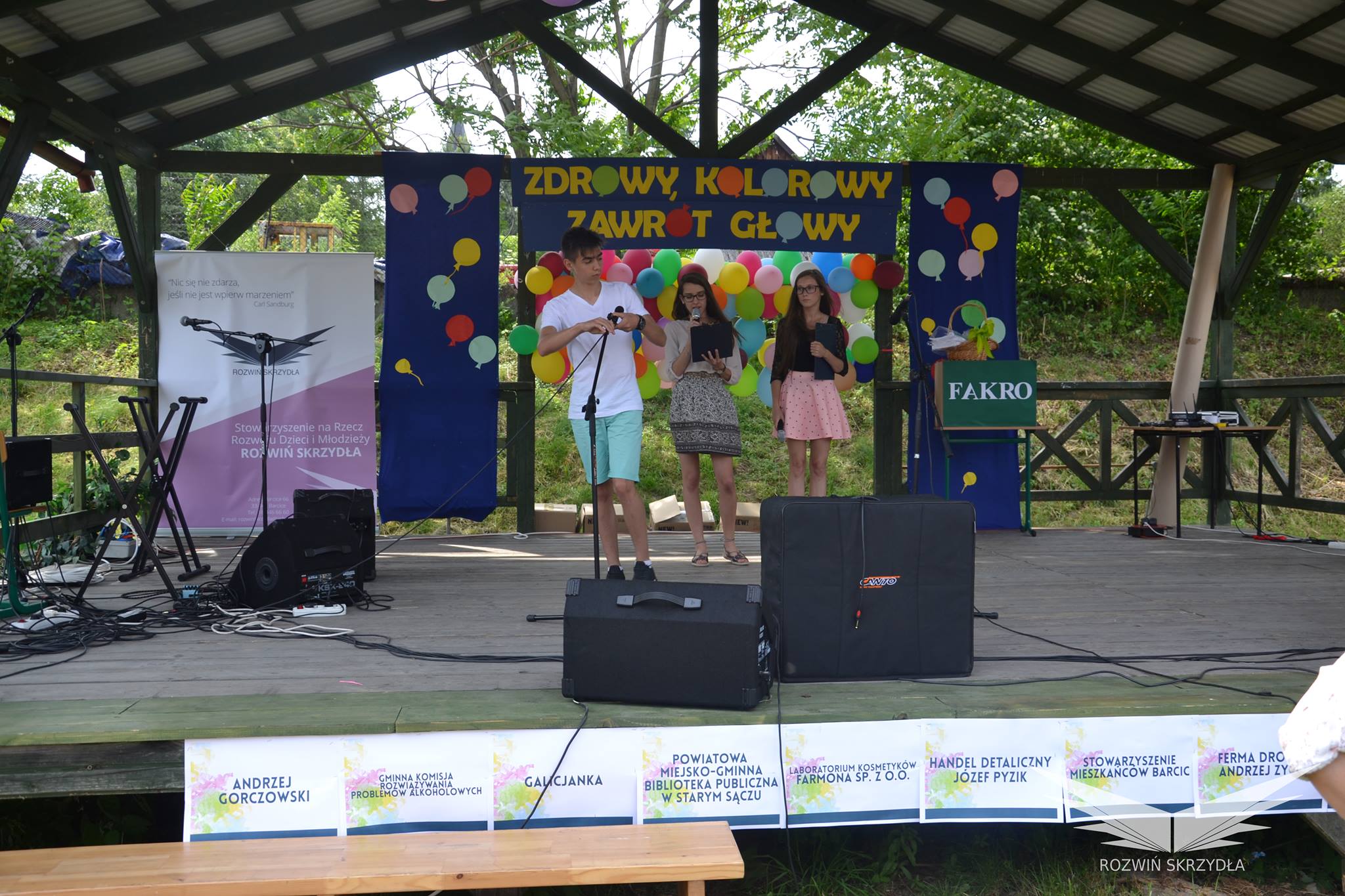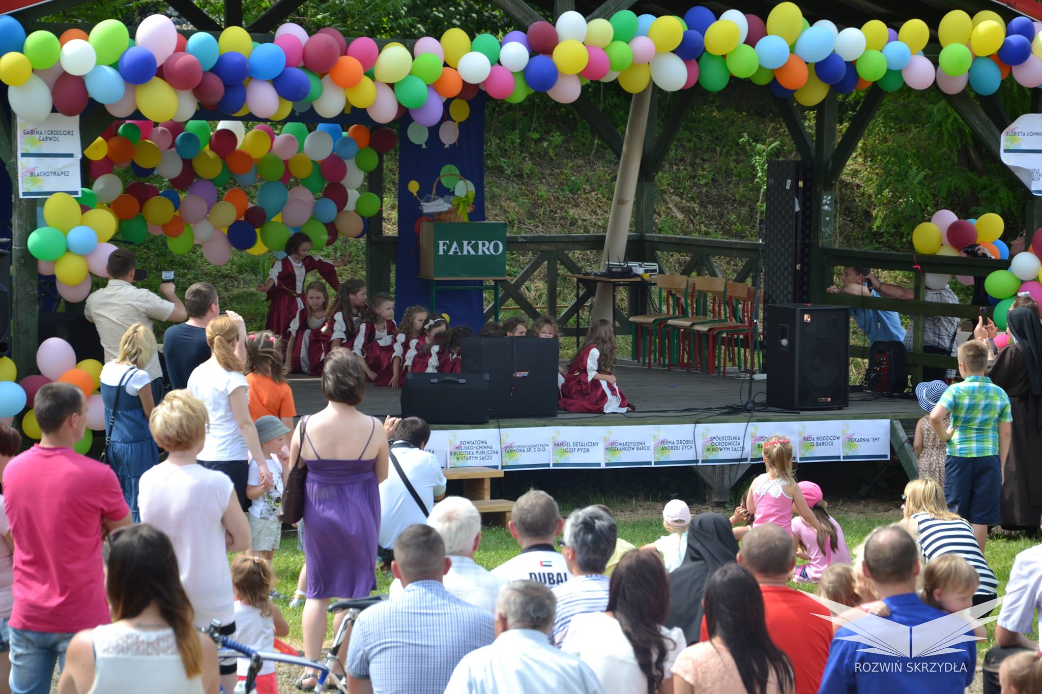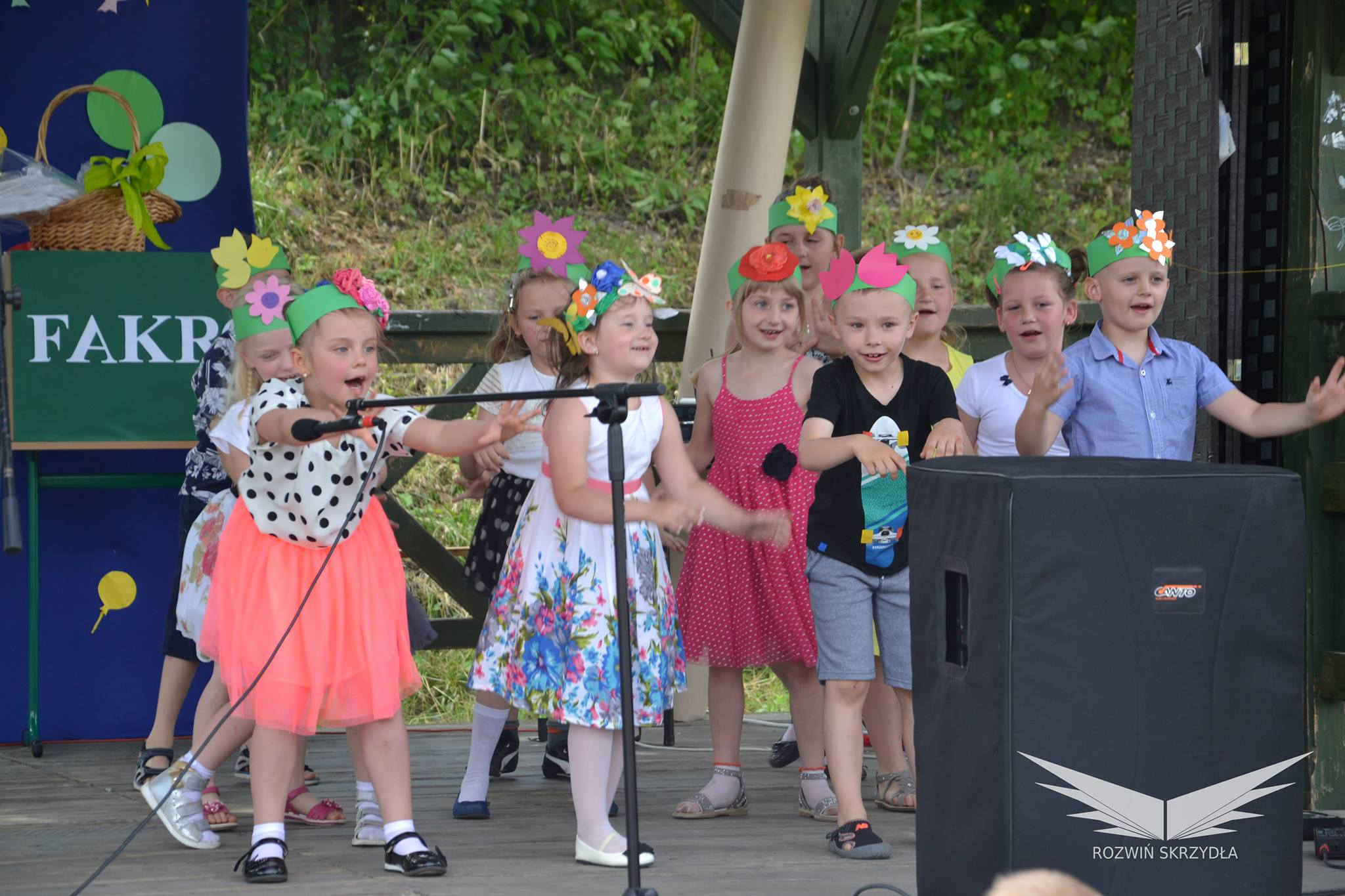 a także w piosenkach, które wykonywały dzieci z młodszych klas. Do najmłodszych wykonawców należeli przedstawiciele Niepublicznego Przedszkola Sióstr Karmelitanek oraz Przedszkola „Słoneczko”. W solowym występie tańca nowoczesnego zaprezentowała się też Emilka Dubiel. Po raz kolejny mogliśmy podziwiać również występy laureatów gminnego „Dnia Zdrowia” z Zespołu Szkół w Barcicach, Szkoły Podstawowej w Popowicach i w Moszczenicy. Wiele emocji wzbudziło przedstawienie teatralne pt. „Zielony Kapturek” przygotowane przez rodziców dzieci w Przedszkola Sióstr Karmelitanek, a także pokaz akrobatyczno – taneczny grupy „Screamo Trickz”.