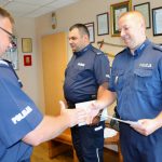 Komendant Miejski Policji w Nowym Sączu wraz ze swoim zastępcą pogratulował dzisiaj (19 lipca) starszemu posterunkowemu Jackowi Łukasikowi, który został Policjantem Roku 2017 w Małopolsce oraz młodszemu aspirantowi Józefowi Zarabskiemu – wyróżnionemu w tym plebiscycie.