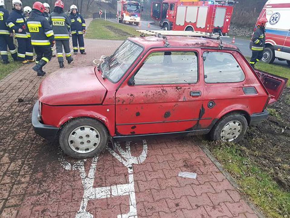 Dziś rano kłopot z panowaniem nad pojazdem miał kierowca fiata 126p. Auto dachowało. Na miejsce przyjechała straż pożarna (OSP Stary Sącz i PSP Nowy Sącz) i pogotowie.