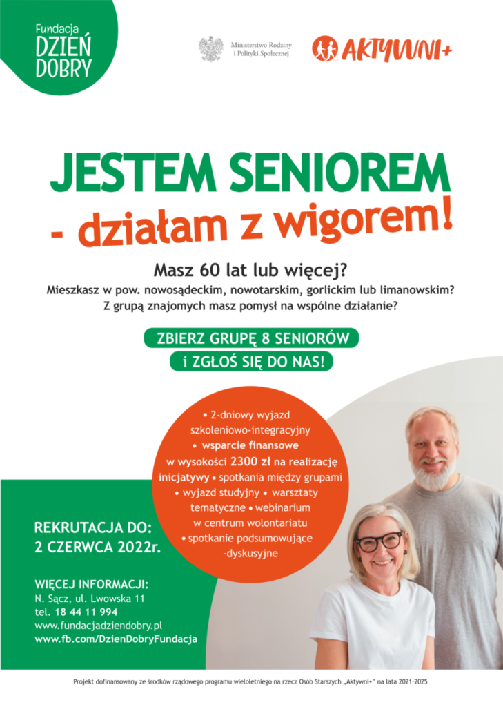 - zebrać 8-osobową grupę w wieku 60+ zamieszkującą teren powiatu nowosądeckiego, nowotarskiego, gorlickiego lub limanowskiego,