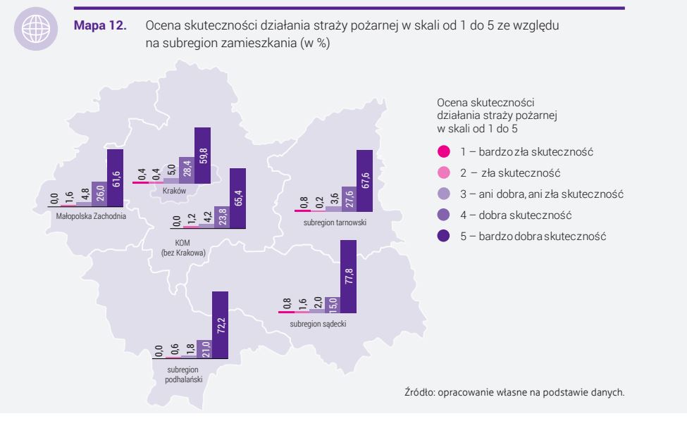W 6. edycji badania opinii mieszkańców Małopolanie oceniali także skuteczność działania służb publicznych odpowiedzialnych za bezpieczeństwo, przyznając im punkty w skali od 1 do 5 (gdzie 1 oznaczało: bardzo złą skuteczność, a 5: bardzo dobrą).