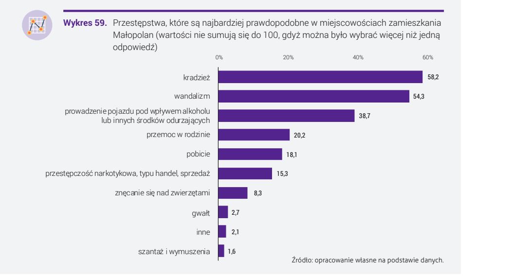 Duży odsetek mieszkańców województwa przyznał, że częste jest prowadzenie pojazdu pod wpływem alkoholu lub innych środków odurzających. „Przemoc w rodzinie” oraz „pobicie” również nie są czymś rzadko spotykanym.
