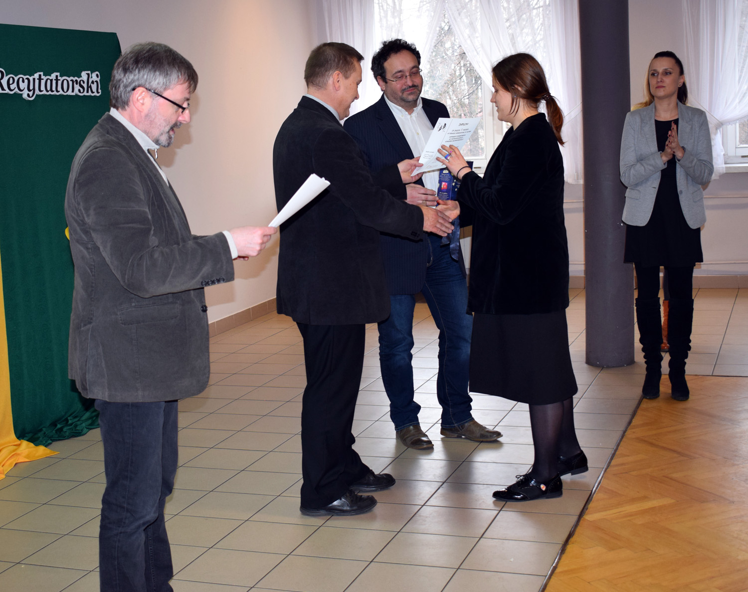 W kategorii „Turniej recytatorski” – I miejsce Mateusz Nowak z Liceum Ogólnokształcącego w Grybowie; II – Maria Morańda z Zespołu Szkół Zawodowych w Grybowie; III – Katarzyna Gruca i Jakub Lachur z Liceum Ogólnokształcącego w Grybowie. Wyróżnienie – Antoni Lorek z Powiatowego Zespołu Szkół w Muszynie.