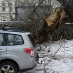 –Złamaniu uległo jedno z drzew. W pobliżu zaparkowanych było kilka pojazdów -relacjonują strażacy – Gałęzie spadającego drzewa oparły się o jedno z aut zaparkowanych między jednym z budynków a pobliskim sklepem spożywczym. W chwili powstania zdarzenia w samochodzie nikogo nie było. W wyniku zdarzenia uszkodzeniu prócz samochodu uległ dach sklepu spożywczego oraz wyrwany został fragment przewodu instalacji elektrycznej ze ściany budynku. Na miejscu obecny był właściciel pojazdu oraz inne osoby. Żadna z osób nie odniosła obrażeń i nie uskarżała się na żadne dolegliwości. Działania strażaków trwały godzinę.